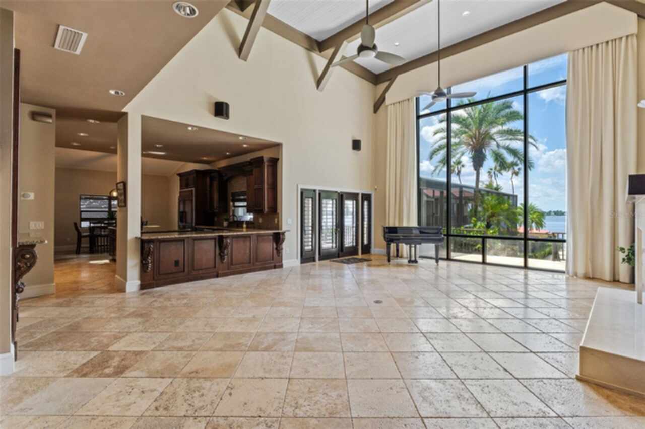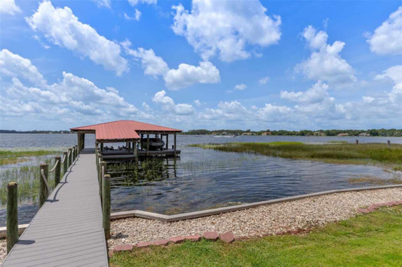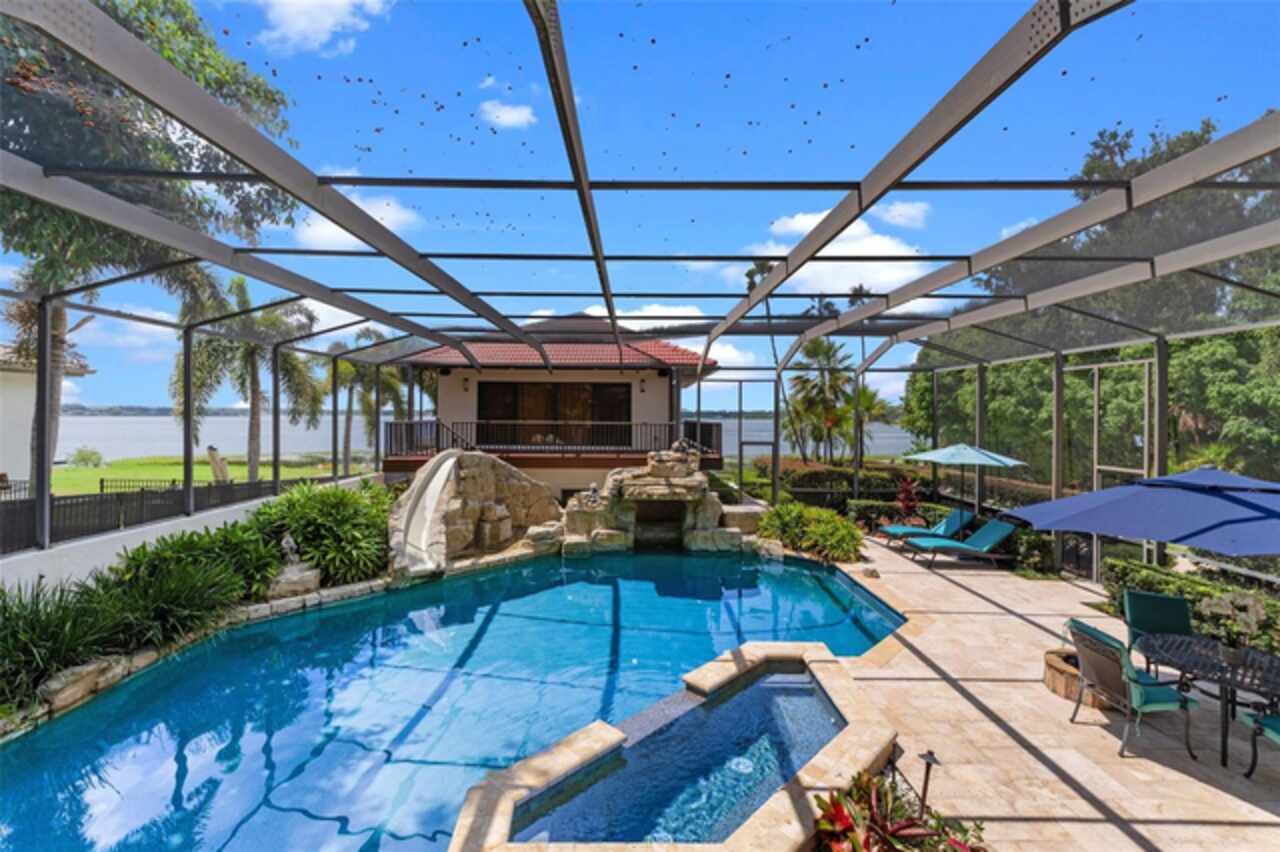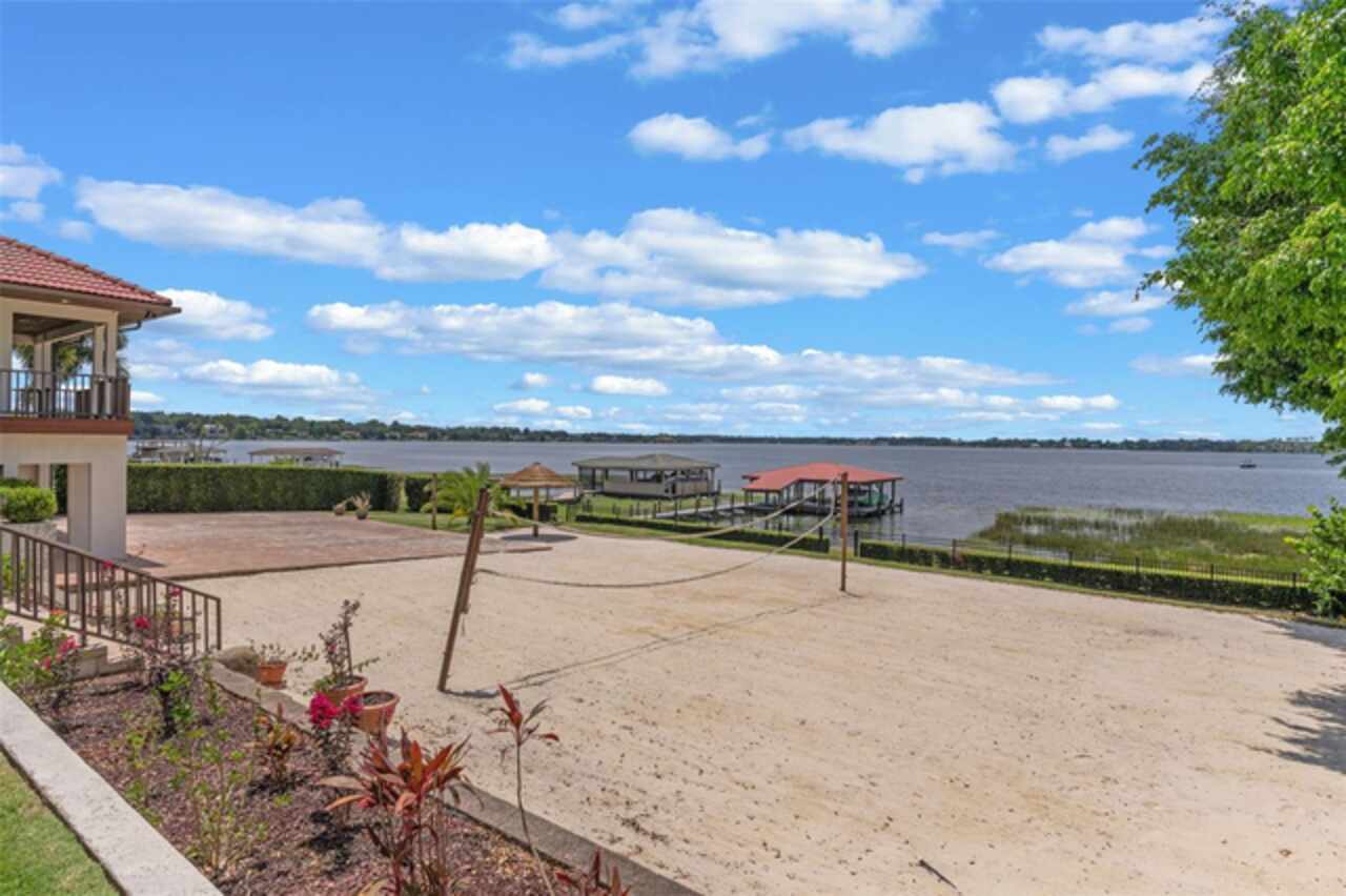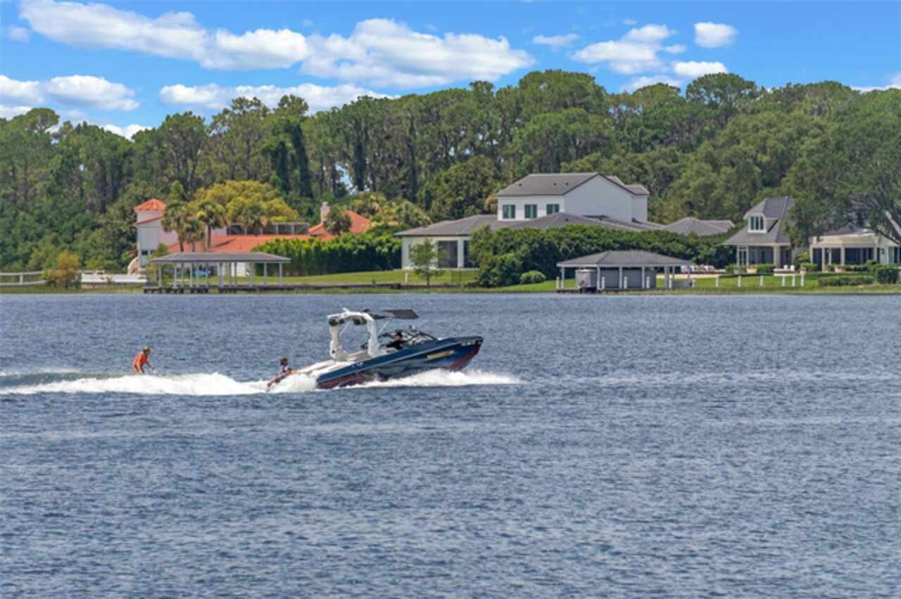 Enjoy stunning sunsets from your private estate with expansive views, located on Lake Down, the prestigious Butler Chain of Lakes in Windermere. This well-appointed property features 2.78 acres with fully fenced terraced grounds, electric security gates, brick pavers, mature landscaping for privacy, and 130 feet of water frontage with a seawall, enclosed boat house, dock, and lift. The heated 7, 363 square feet of living space includes the main home with 4 bedrooms and 5 bathrooms, as well as a lake guest house. Most rooms are graced with breathtaking views. Almost 10, 000 square feet under roof, with a porte cochere, extensive balconies, walkways, outdoor kitchen, and multiple patios. The screened pool area has an inviting resort feel, complete with a waterfall, slide, and hot tub, all connected to the outdoor entertainment areas. Many quality upgrades, expansive ceilings with craftsman woodwork, wood and marble floors, formal dining with a music room, and fireplaces in the living, family room, and primary bedroom. The living room features a floor-to-ceiling window with remote-control blind, taking full advantage of the priceless view. The main staircase gives a dramatic vantage point to appreciate the open floor plan, ideal for entertaining. The well-appointed kitchen features a chef's prep kitchen, electric and Wolf gas double oven, two Sub-Zeros, double dishwashers, and a built-in espresso machine. All kitchen elements are set within rich wood custom cabinetry and granite countertops, with a breakfast room that leads to the pool area. The guest bathroom, laundry & family room are all conveniently located near the pool. The primary suite is downstairs and includes a private screened porch, remote-control blackout blind, custom cabinet with washer & dryer, and a large master bath with a soaking tub, walk-in shower all with elegant stonework. The suite is adjoined by a generous custom closet, safe for valuables, private gym with mirror, rubber floor, bonus storage, and a private staircase to the upstairs. Upstairs features large bedrooms with lots of closet space, balconies overlooking the water with Ipe decks and a secondary family room or playroom for the family. The lake cottage spells fun with balconies all around and views of the water and pool on three sides. Open beam ceilings, bamboo and new luxury vinyl wood floors, full kitchen & living room upstairs with a full bedroom and bath downstairs complete with a wet bar. The property has rear yard access down to the lake, great for boat parking or extra parking when you rally the team for a volleyball match on the court. You can also utilize the tennis courts & private boat ramp just a short walk down the street. There are too many low maintenance, cost saving features to list, but a few include; energy efficient solar power, metal roof, and three on demand propane powered gas water heaters. There are over $55, 000 in solar panels that will save countless dollars over the years and is good for the environment. The electric bills are minimal. As I mentioned earlier Ipe hardwood is the best exotic hardwood the industry has to offer and it was used on the extensive decks for low maintenance. A new two horse sprinkler pump was recently installed that draws from the lake to maintain the exotic landscape. The durable easy to clean composite dock has two lifts & two boat slips. The owner will even throw in the $50, 000 ski boat (approx Value) with an acceptable offer.
