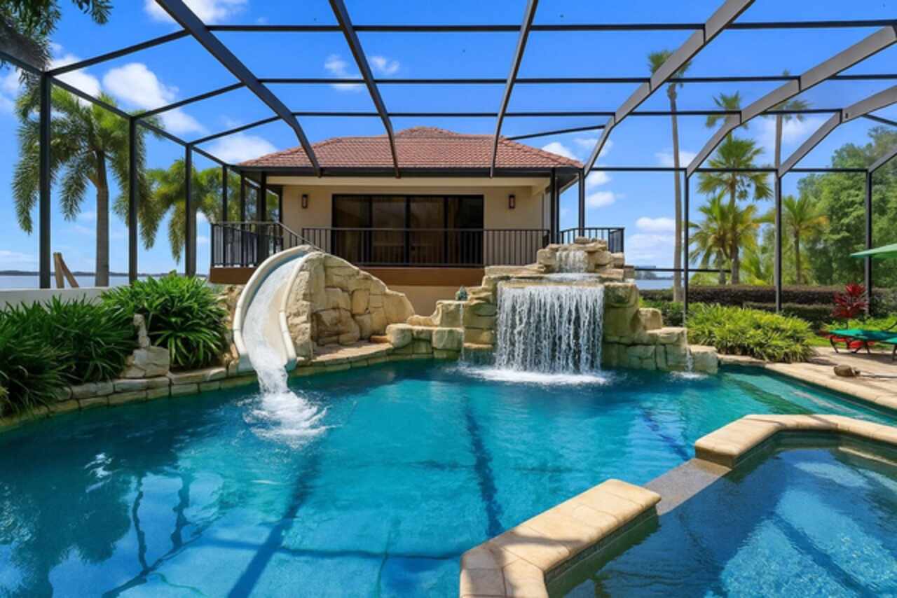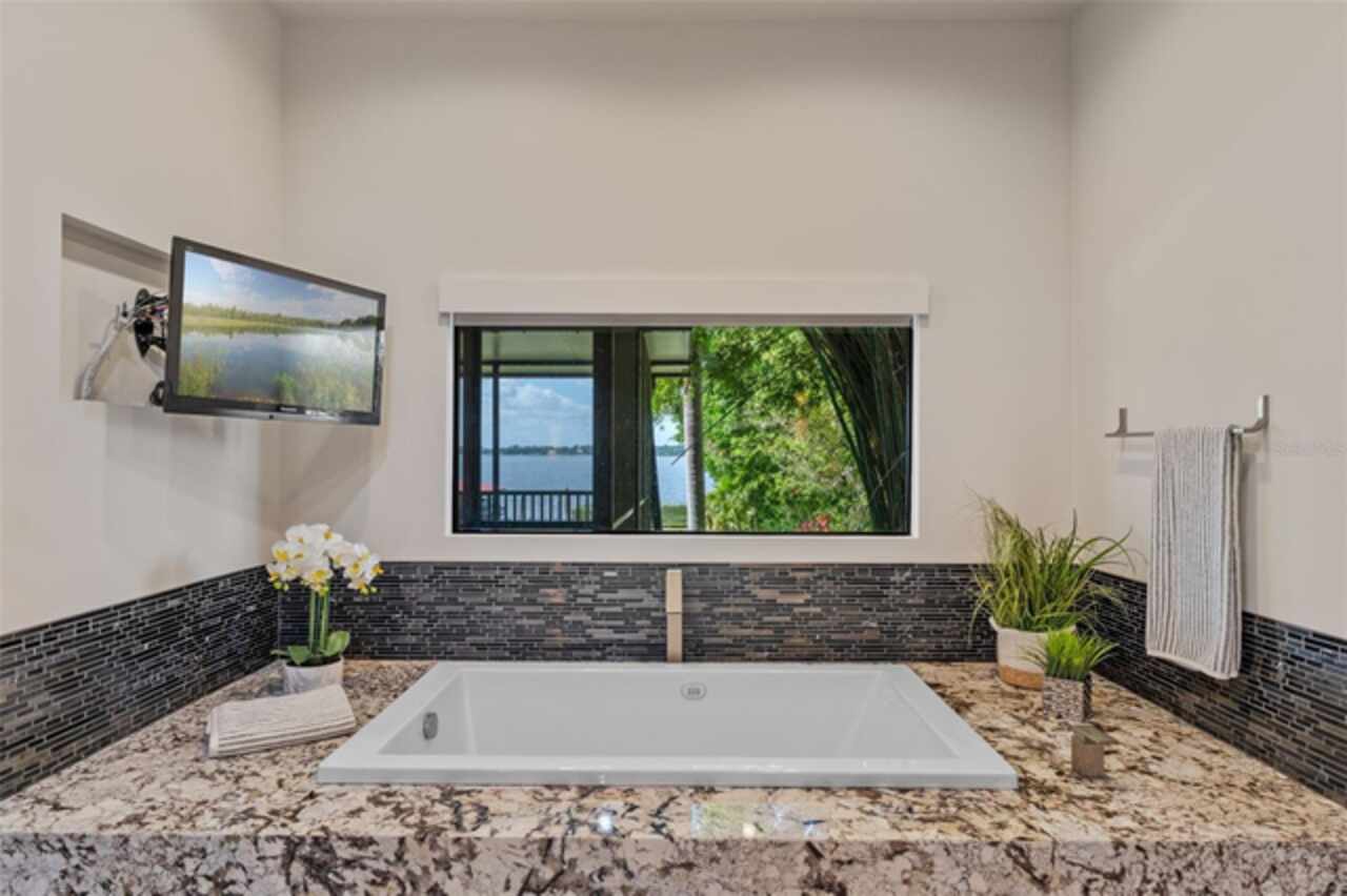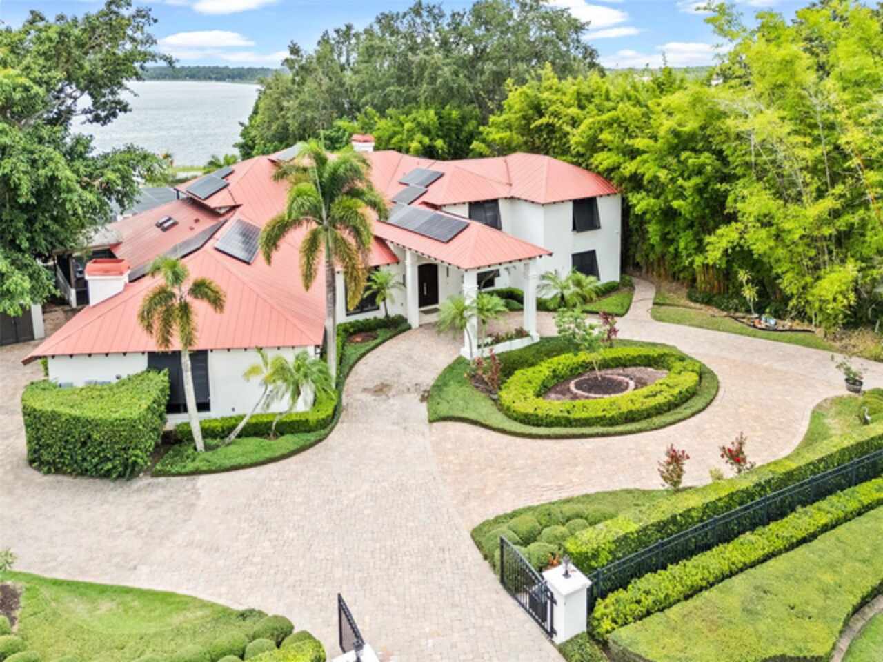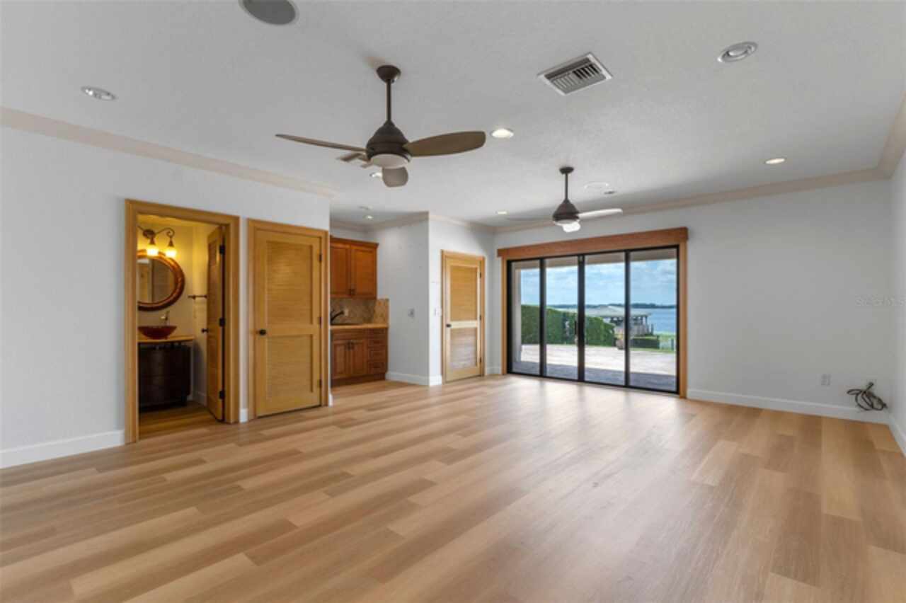 Enjoy stunning sunsets from your private estate with expansive views, located on Lake Down, the prestigious Butler Chain of Lakes in Windermere. This well-appointed property features 2.78 acres with fully fenced terraced grounds, electric security gates, brick pavers, mature landscaping for privacy, and 130 feet of water frontage with a seawall, enclosed boat house, dock, and lift. The heated 7, 363 square feet of living space includes the main home with 4 bedrooms and 5 bathrooms, as well as a lake guest house. Most rooms are graced with breathtaking views. Almost 10, 000 square feet under roof, with a porte cochere, extensive balconies, walkways, outdoor kitchen, and multiple patios. The screened pool area has an inviting resort feel, complete with a waterfall, slide, and hot tub, all connected to the outdoor entertainment areas. Many quality upgrades, expansive ceilings with craftsman woodwork, wood and marble floors, formal dining with a music room, and fireplaces in the living, family room, and primary bedroom. The living room features a floor-to-ceiling window with remote-control blind, taking full advantage of the priceless view. The main staircase gives a dramatic vantage point to appreciate the open floor plan, ideal for entertaining. The well-appointed kitchen features a chef's prep kitchen, electric and Wolf gas double oven, two Sub-Zeros, double dishwashers, and a built-in espresso machine. All kitchen elements are set within rich wood custom cabinetry and granite countertops, with a breakfast room that leads to the pool area. The guest bathroom, laundry & family room are all conveniently located near the pool. The primary suite is downstairs and includes a private screened porch, remote-control blackout blind, custom cabinet with washer & dryer, and a large master bath with a soaking tub, walk-in shower all with elegant stonework. The suite is adjoined by a generous custom closet, safe for valuables, private gym with mirror, rubber floor, bonus storage, and a private staircase to the upstairs. Upstairs features large bedrooms with lots of closet space, balconies overlooking the water with Ipe decks and a secondary family room or playroom for the family. The lake cottage spells fun with balconies all around and views of the water and pool on three sides. Open beam ceilings, bamboo and new luxury vinyl wood floors, full kitchen & living room upstairs with a full bedroom and bath downstairs complete with a wet bar. The property has rear yard access down to the lake, great for boat parking or extra parking when you rally the team for a volleyball match on the court. You can also utilize the tennis courts & private boat ramp just a short walk down the street. There are too many low maintenance, cost saving features to list, but a few include; energy efficient solar power, metal roof, and three on demand propane powered gas water heaters. There are over $55, 000 in solar panels that will save countless dollars over the years and is good for the environment. The electric bills are minimal. As I mentioned earlier Ipe hardwood is the best exotic hardwood the industry has to offer and it was used on the extensive decks for low maintenance. A new two horse sprinkler pump was recently installed that draws from the lake to maintain the exotic landscape. The durable easy to clean composite dock has two lifts & two boat slips. The owner will even throw in the $50, 000 ski boat (approx Value) with an acceptable offer.