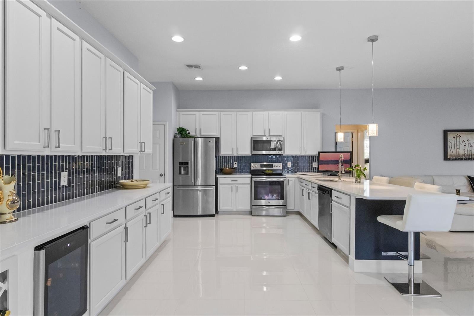 *The seller is offering $10, 000 in seller concessions.* Welcome to 11025 Ledgement Lane, a beautifully upgraded residence located in the gated community of Glenmuir in Windermere. Built by Pulte Homes, this thoughtfully designed one-story home offers 4 bedrooms, 3.5 bathrooms, a den, a 3-car garage, an oversized driveway that can accommodate up to 9 vehicles and elegant living space on an expansive 0.33-acre pond-view lot with no rear neighbors. Step inside and be greeted by soaring ceilings, crown molding, and glossy porcelain tile floors that elevate the open-concept design. The formal living and dining rooms are perfect for entertaining, while a spacious family room flows seamlessly into the completely renovated kitchen, featuring quartz countertops, 42” shaker cabinets, wine fridge, stainless steel appliances, and a striking glass tile backsplash. The private den with double doors provides a flexible space for a home office, gym, or playroom. The primary suite is a true retreat with direct lanai access, walk-in closet, and a spa-like bathroom with a freestanding soaking tub, frameless glass shower, and a vanity with a built-in makeup area. Enjoy indoor-outdoor living on the covered lanai, ideal for gatherings and overlooking the lush backyard with a tranquil pond. There’s ample space to add a pool if desired. Additional features include: Updated guest bathrooms with designer vanities and tile Oversized laundry with cabinetry Butler’s pantry or coffee station Split-bedroom floor plan for privacy Rain gutters for added convenience Located within the zone of top-rated public schools and just minutes from Windermere Preparatory School, Disney, Winter Garden Village, shopping, dining, and more. The gated Glenmuir community also features a private park, playground, sports field, and is just minutes from the Lake Butler public boat ramp. Conveniently located 30 minutes to Orlando International Airport. Schedule your private tour today!