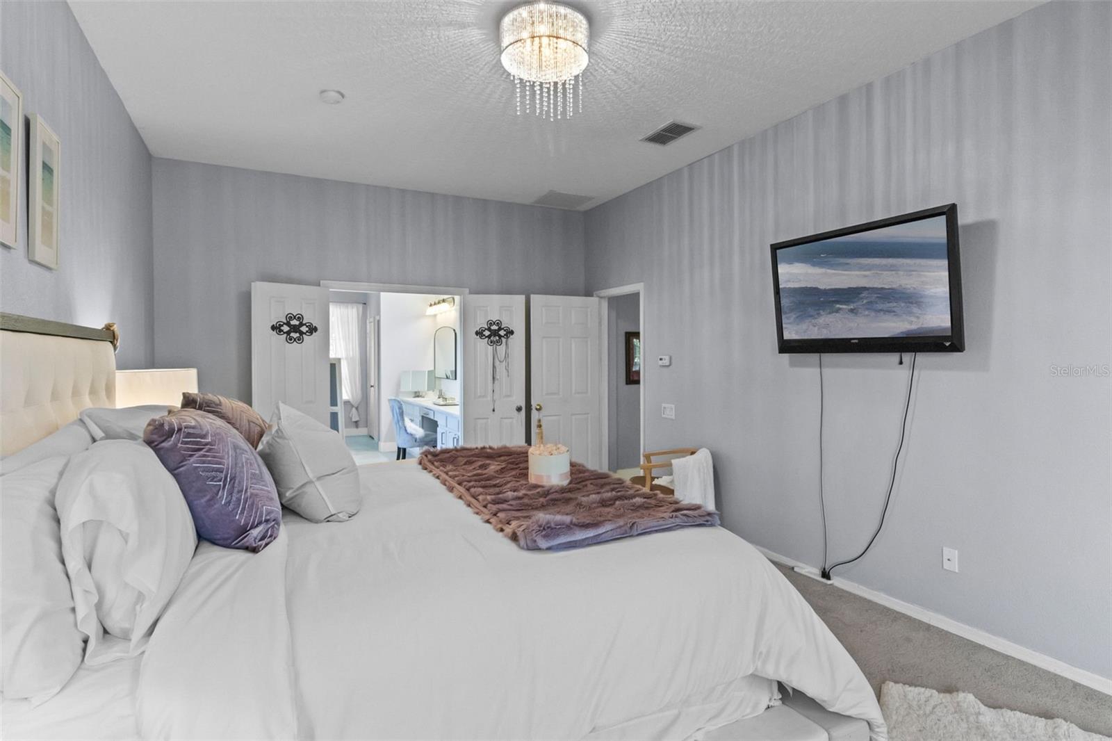 Ceiling Fans(s), Crown Molding, High Ceilings, Primary Bedroom Main Floor, Solid Surface Counters, Solid Wood Cabinets, Split Bedroom, Walk-In Closet(s)