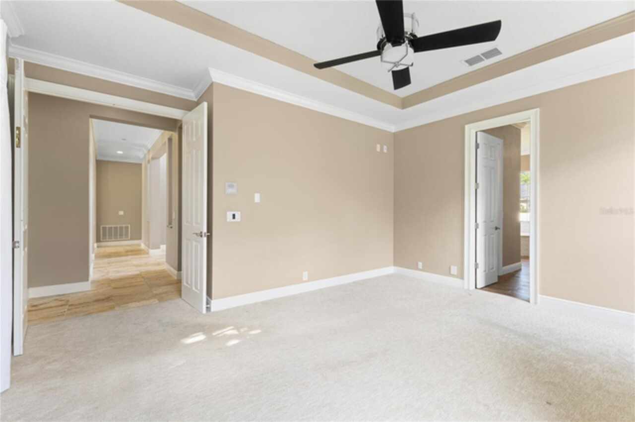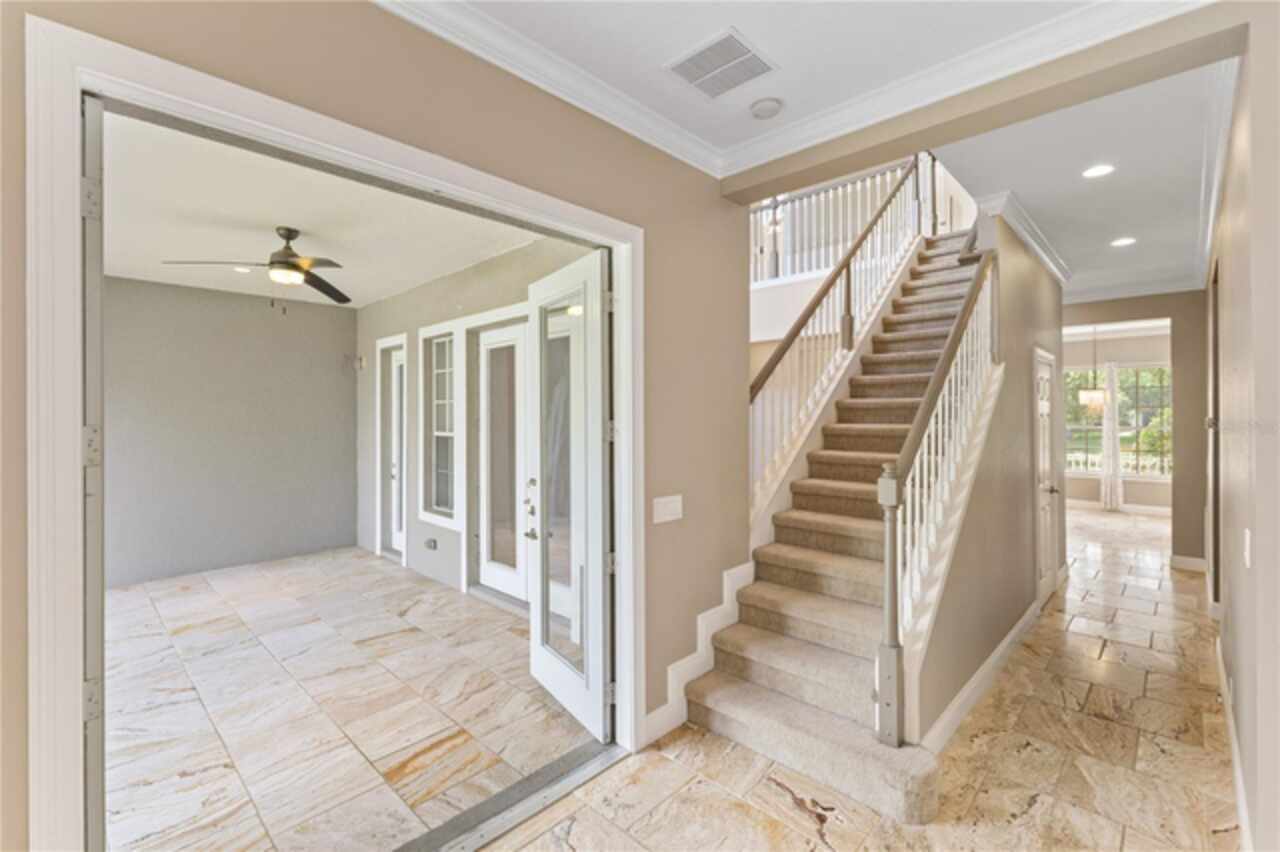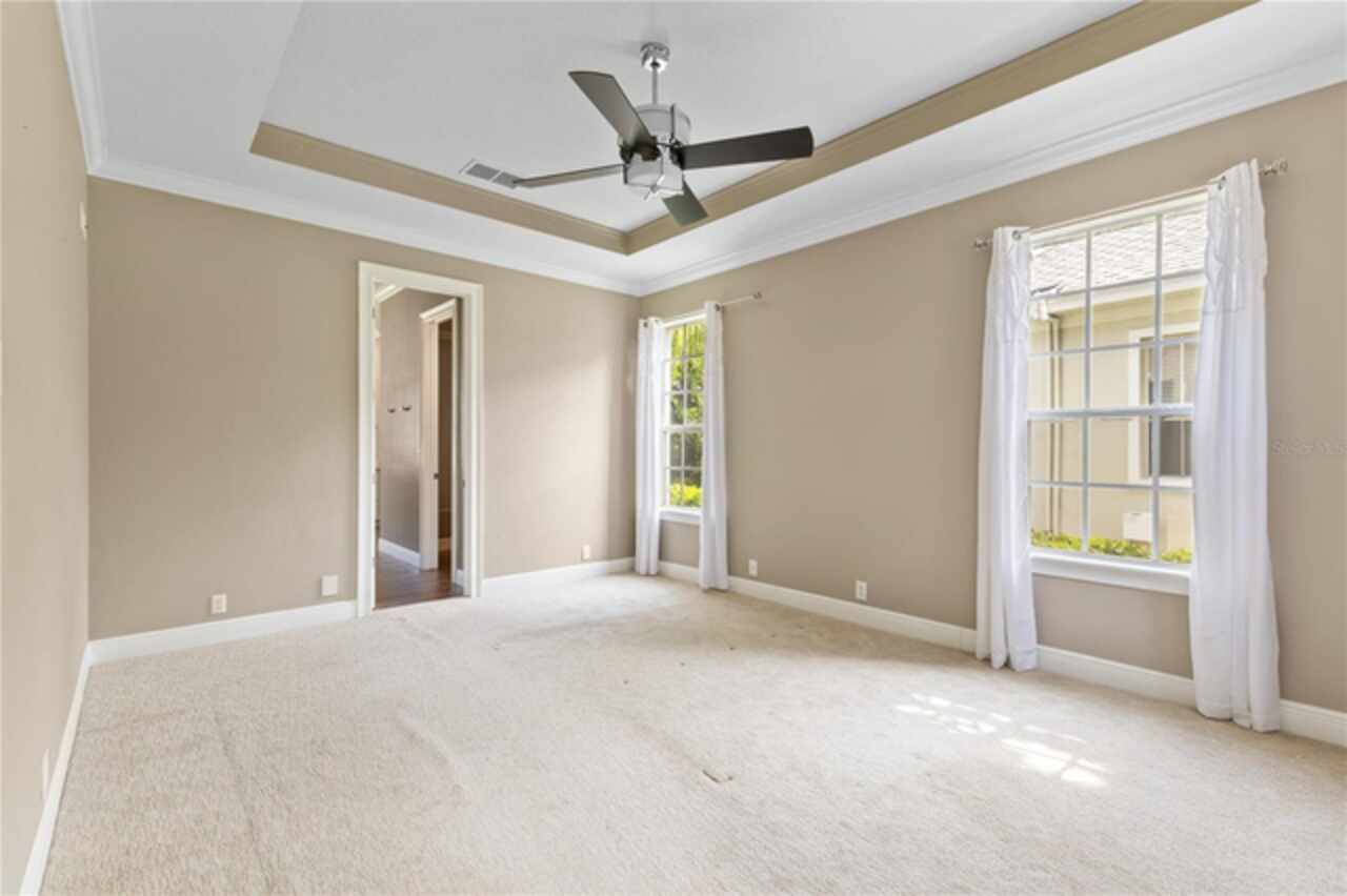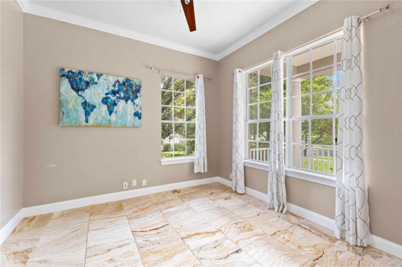 One or more photo(s) has been virtually staged. Nestled within highly sought after guard gated community, this exceptionally maintained two-story residence combines timeless elegance offering the ideal blend of style, comfort, and functionality. The home features 5 spacious bedrooms, 4.5 bathrooms, dinning room, separate living room from family room and a generously sized loft—ideal for a secondary living area, media room, or playroom. The owner’s suite is conveniently located on the first floor, providing privacy and easy access, one bedroom can be used as an office located in the first floor, while the remaining three bedrooms are upstairs, offering ample space for family or guests.Step inside to soaring high ceilings and luxurious travertine tile flooring that flows throughout the main living areas on the first floor, creating a seamless and elegant look. The master bedroom is carpeted for added warmth and comfort.The gourmet kitchen overlooks the open-concept living and dining spaces, making it perfect for entertaining. From the living area, step out onto the covered lanai, ideal for year-round outdoor enjoyment. The fenced backyard provides a secure and private retreat with room for pets, play, or future swimming pool or outdoor enhancements. New roof was just replaced (June 2025), new AC units replaced in 2023. Laundry room with cabinetry and utility sink. Residents of Keenes Pointe enjoy access to world-class amenities including The Golden Bear Club featuring a Jack Nicklaus-designed golf course, clubhouse, dining, fitness center, and lakeside parks. The community is zoned for top-rated schools and is conveniently located near Windermere, Winter Garden Village, major highways, and theme parks.