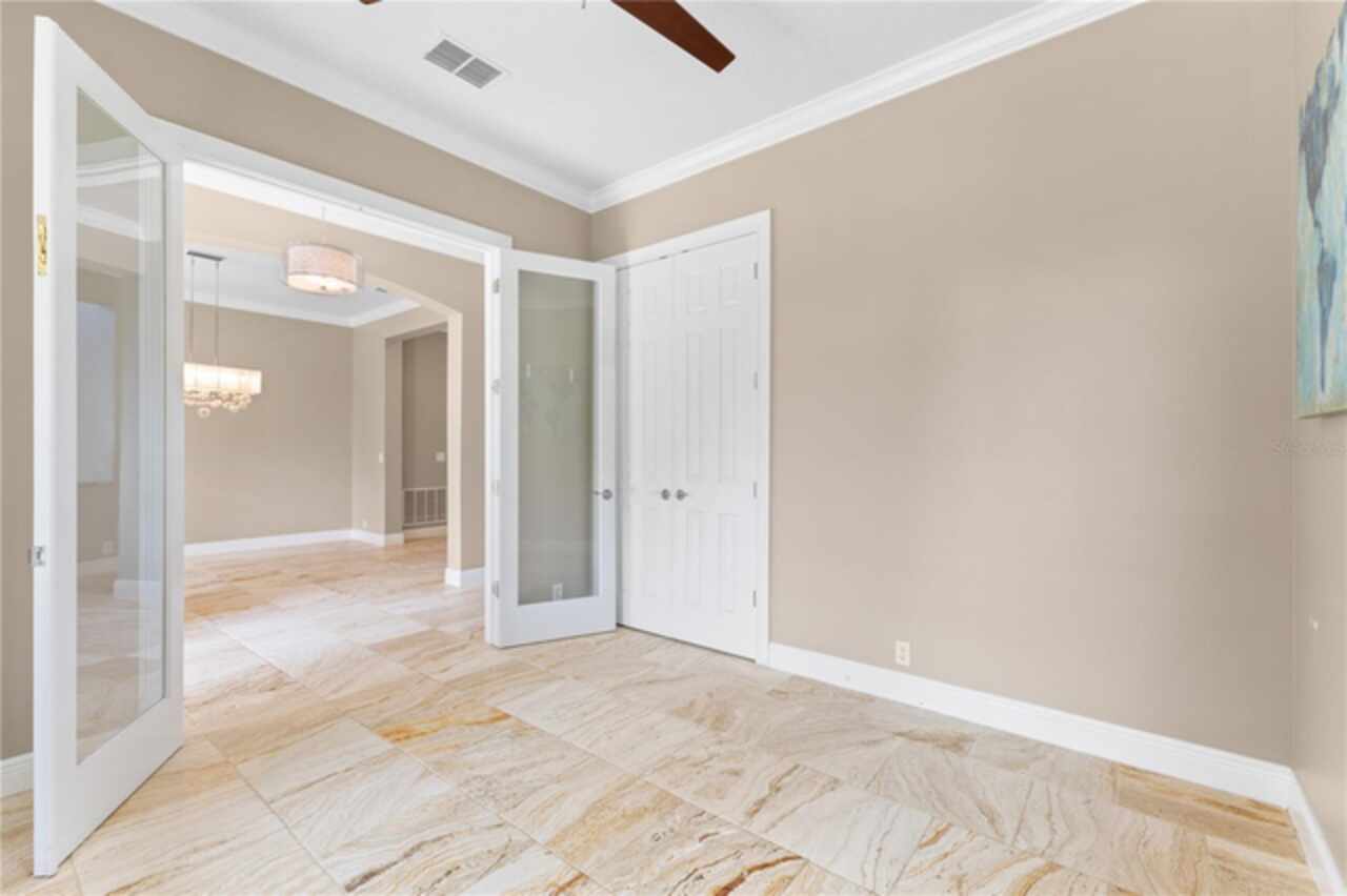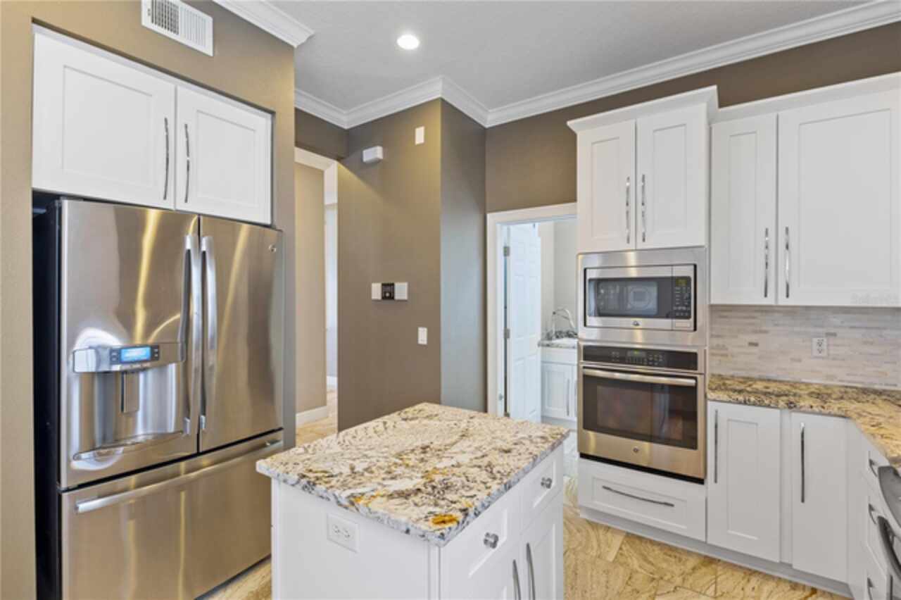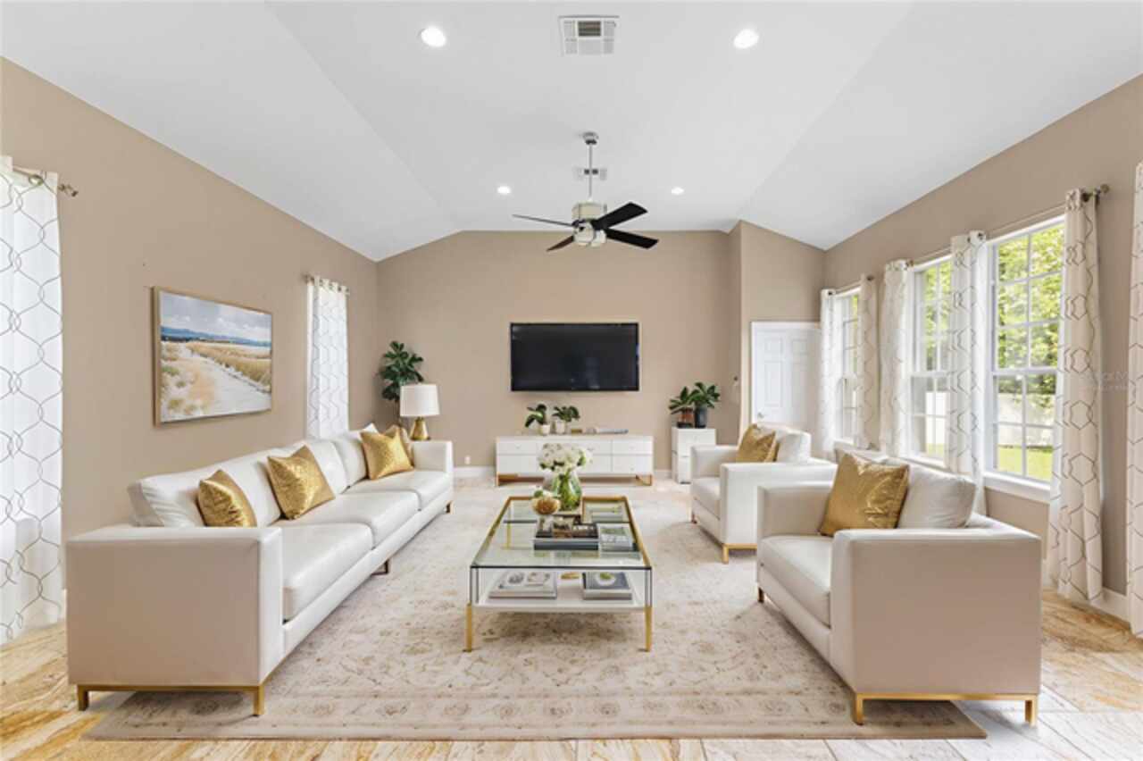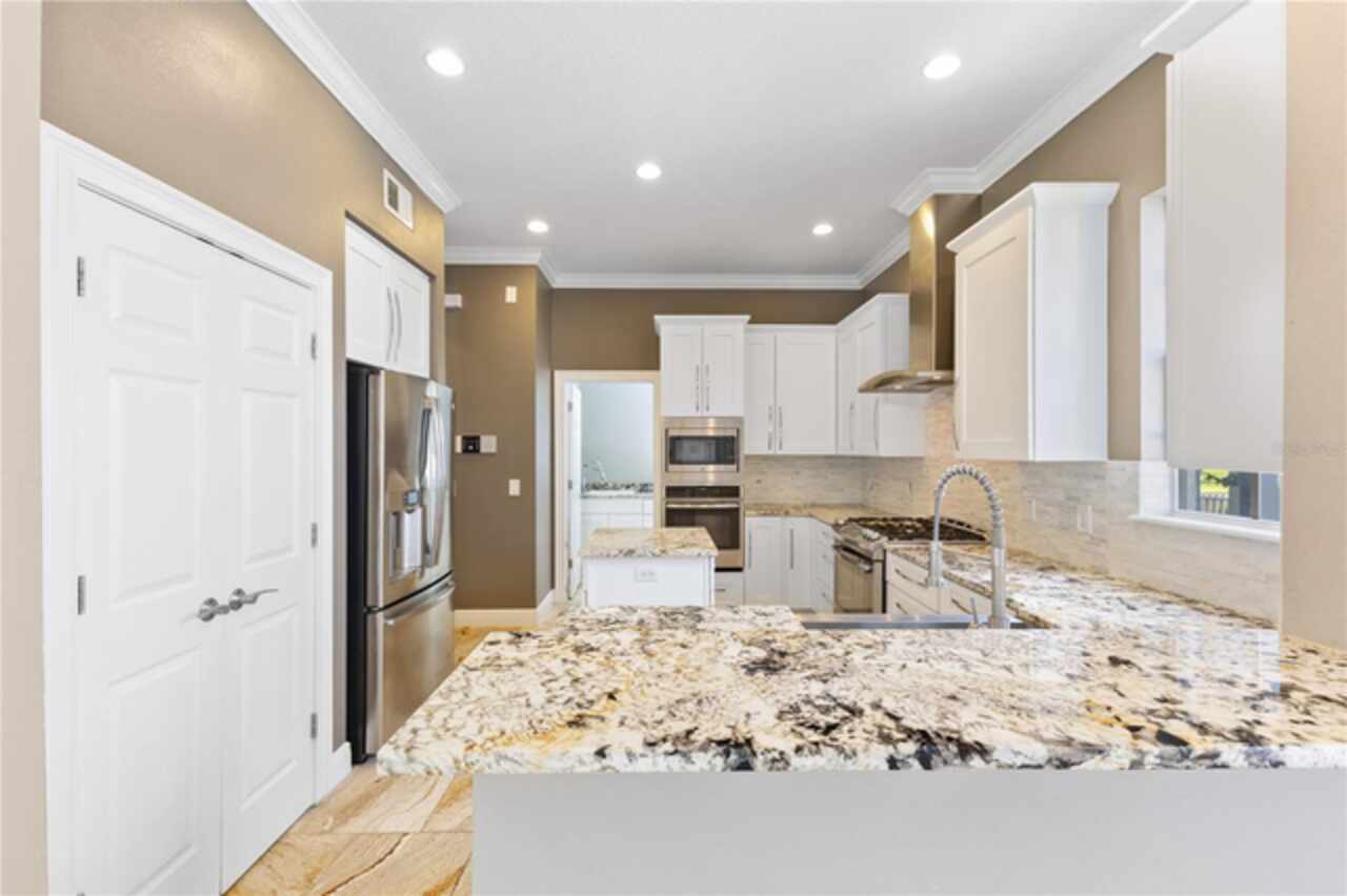 One or more photo(s) has been virtually staged. Nestled within highly sought after guard gated community, this exceptionally maintained two-story residence combines timeless elegance offering the ideal blend of style, comfort, and functionality. The home features 5 spacious bedrooms, 4.5 bathrooms, dinning room, separate living room from family room and a generously sized loft—ideal for a secondary living area, media room, or playroom. The owner’s suite is conveniently located on the first floor, providing privacy and easy access, one bedroom can be used as an office located in the first floor, while the remaining three bedrooms are upstairs, offering ample space for family or guests.Step inside to soaring high ceilings and luxurious travertine tile flooring that flows throughout the main living areas on the first floor, creating a seamless and elegant look. The master bedroom is carpeted for added warmth and comfort.The gourmet kitchen overlooks the open-concept living and dining spaces, making it perfect for entertaining. From the living area, step out onto the covered lanai, ideal for year-round outdoor enjoyment. The fenced backyard provides a secure and private retreat with room for pets, play, or future swimming pool or outdoor enhancements. New roof was just replaced (June 2025), new AC units replaced in 2023. Laundry room with cabinetry and utility sink. Residents of Keenes Pointe enjoy access to world-class amenities including The Golden Bear Club featuring a Jack Nicklaus-designed golf course, clubhouse, dining, fitness center, and lakeside parks. The community is zoned for top-rated schools and is conveniently located near Windermere, Winter Garden Village, major highways, and theme parks.
