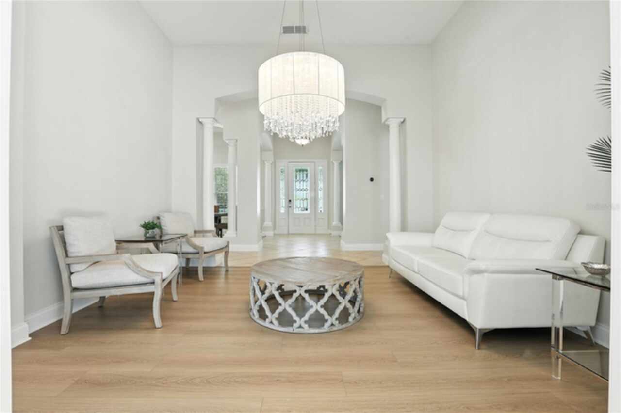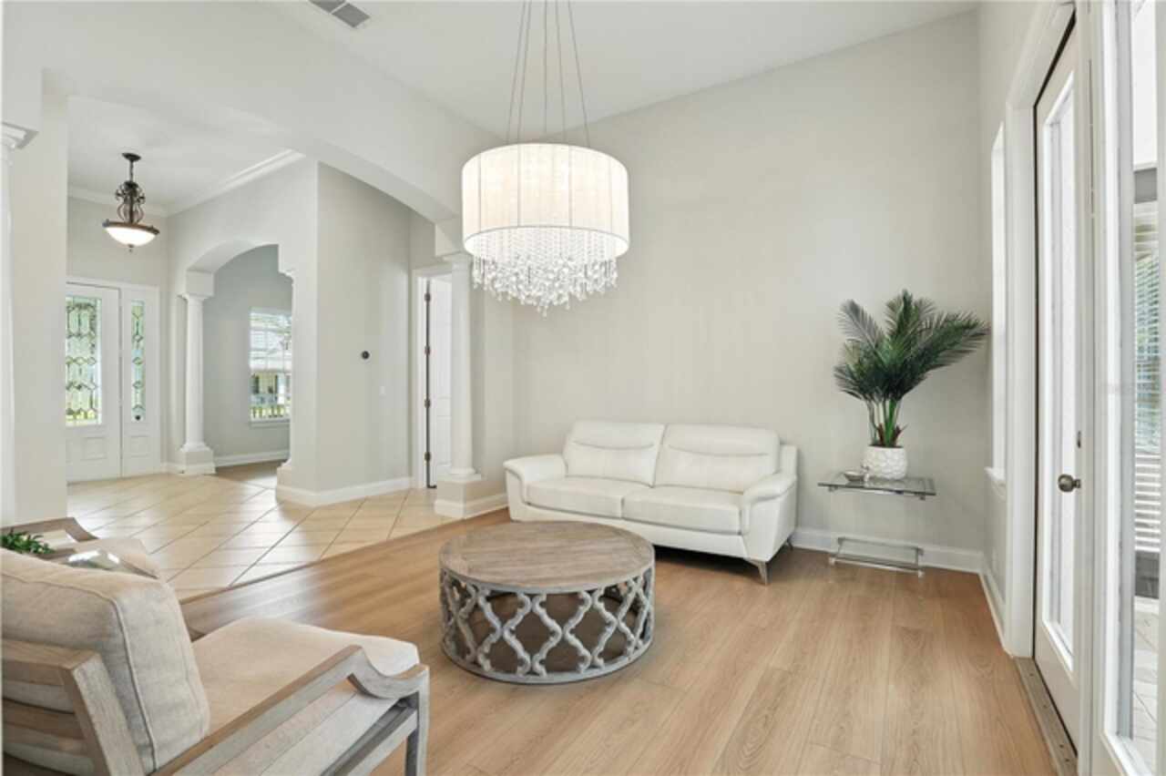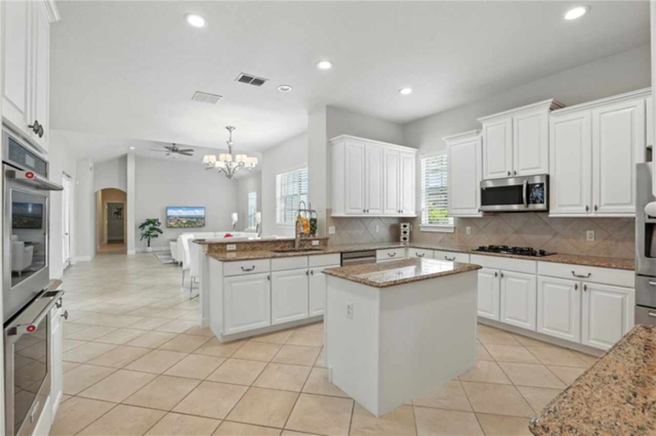 Welcome to this beautifully refreshed single-story ranch in the desirable guard-gated community of Keene’s Pointe! Move-in ready and thoughtfully updated, this home features new luxury vinyl flooring, modern light fixtures, fresh interior and exterior paint, and a brand-new roof (2024). The oversized 3-car garage, complete with newly painted floors, provides abundant storage. Inside, the sought-after split floor plan shines—highlighted by a spacious primary retreat with double closets and serene views of the pool. Three additional bedrooms and two FULL Bathrooms are tucked toward the rear of the home, offering privacy for family and guests. Designed for both comfort and entertaining, the open-concept kitchen and family room are filled with natural light and open seamlessly to the screened pool and covered patio through double French doors. The pool area, framed with stacked river stone and a soothing water feature, creates a resort-style backdrop perfect for relaxation. A conveniently located laundry room sits just off the kitchen for easy multitasking. Enjoy mornings on the welcoming front porch in the Village of Camden, is a place where friendly neighbors and mature oak trees set an idyllic tone for a relaxing lifestyle. Keene’s Pointe residents also have the option to join The Golden Bear Club, home to golf, tennis, dining, and the renowned Jack Nicklaus Signature Golf Course.