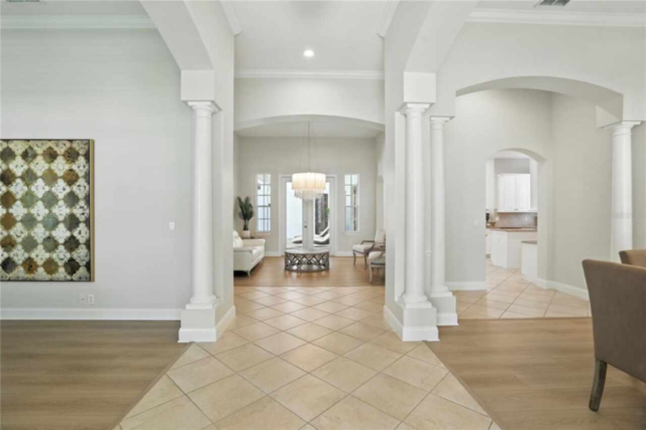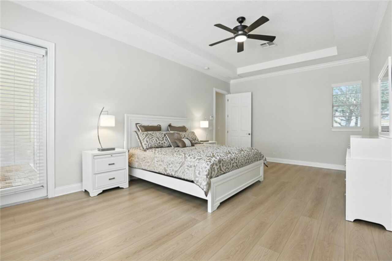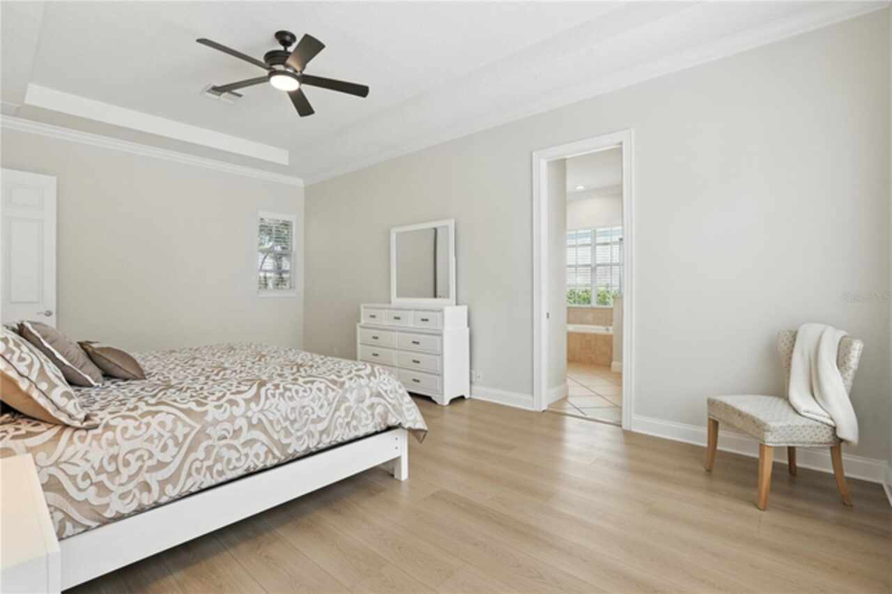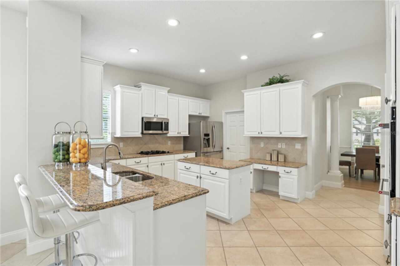 Welcome to this beautifully refreshed single-story ranch in the desirable guard-gated community of Keene’s Pointe! Move-in ready and thoughtfully updated, this home features new luxury vinyl flooring, modern light fixtures, fresh interior and exterior paint, and a brand-new roof (2024). The oversized 3-car garage, complete with newly painted floors, provides abundant storage. Inside, the sought-after split floor plan shines—highlighted by a spacious primary retreat with double closets and serene views of the pool. Three additional bedrooms and two FULL Bathrooms are tucked toward the rear of the home, offering privacy for family and guests. Designed for both comfort and entertaining, the open-concept kitchen and family room are filled with natural light and open seamlessly to the screened pool and covered patio through double French doors. The pool area, framed with stacked river stone and a soothing water feature, creates a resort-style backdrop perfect for relaxation. A conveniently located laundry room sits just off the kitchen for easy multitasking. Enjoy mornings on the welcoming front porch in the Village of Camden, is a place where friendly neighbors and mature oak trees set an idyllic tone for a relaxing lifestyle. Keene’s Pointe residents also have the option to join The Golden Bear Club, home to golf, tennis, dining, and the renowned Jack Nicklaus Signature Golf Course.
