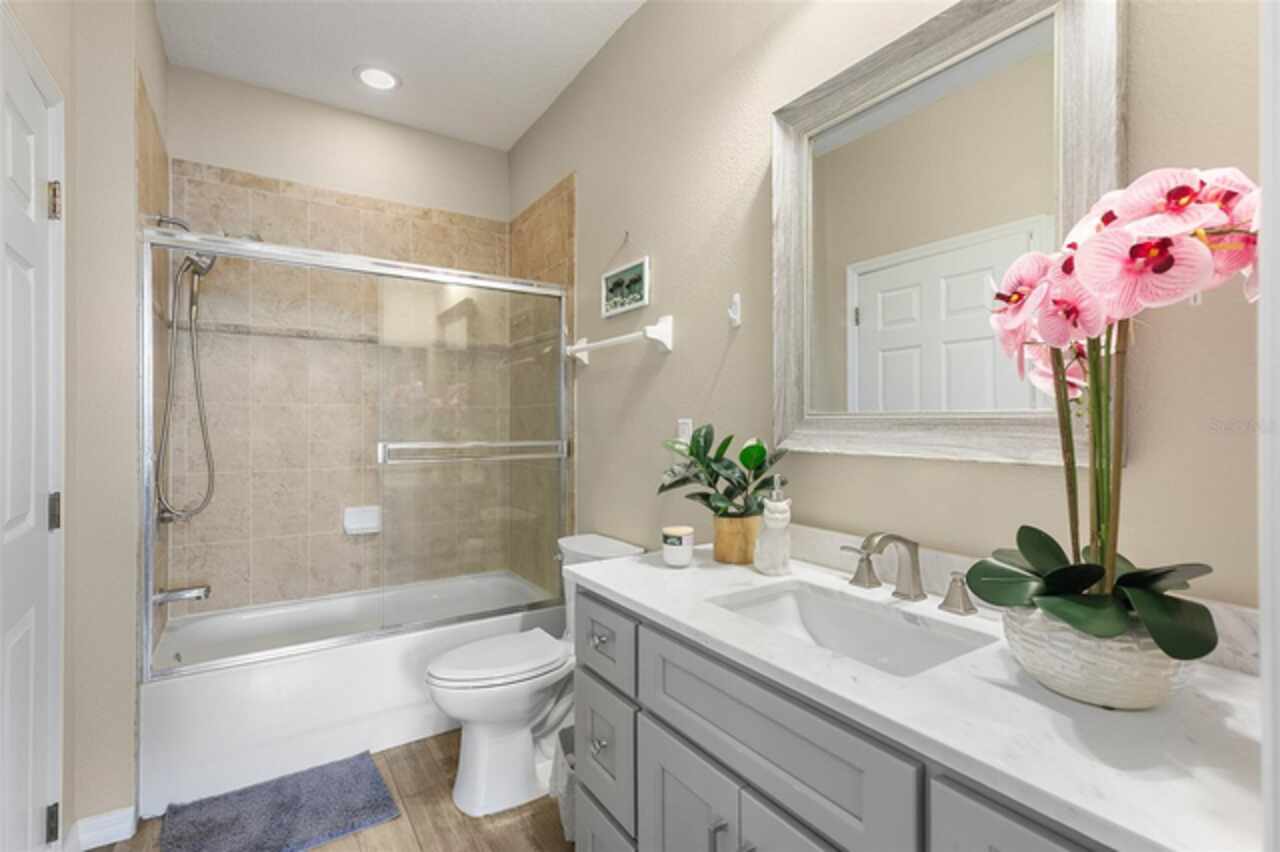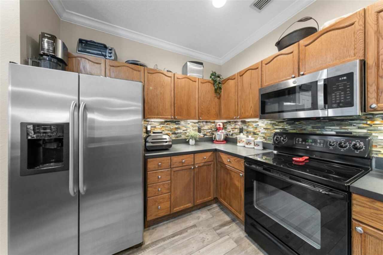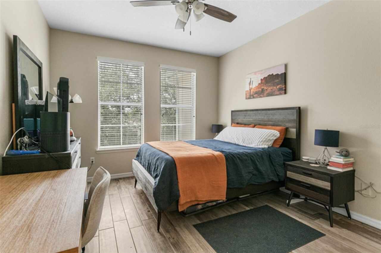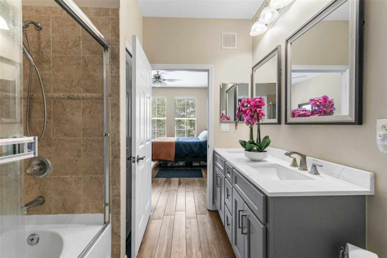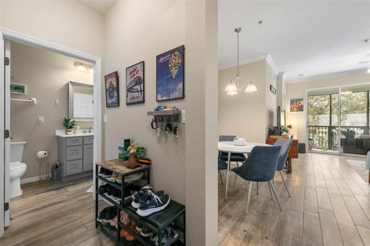 Welcome to Lakeside! This well maintained 2 bedroom/2 bath unit is located on the third floor with no upstairs neighbors! You'll be impressed by the size of the living area in this light and bright unit which includes a good size living room with separate dining area and a spacious kitchen with a breakfast bar and a tiled backsplash. All of the bedrooms are great sizes, the primary bedroom having its own bathroom and walk-in closet, and a spacious second bathroom off the other bedroom. There is also an enclosed outdoor space which is a great space for sitting and relaxing. Features include updated low maintenance wood-look tile, updated bathrooms, crown molding throughout living area, a Google Nest Thermostat, new A/C 2019. The resort like community offers on-site management as well as a Clubhouse with fitness center, swimming pool, grill area, volleyball and walking paths. The units dedicated parking space located at the entrance of the building and plenty of guest parking. The building offers the convenience of an elevator and daily "at your door" trash valet. Conveniently located near Disney, Universal, Downtown Winter Garden, Windemere, local shopping, restaurants and parks. Perfect for your permanent or vacation home.