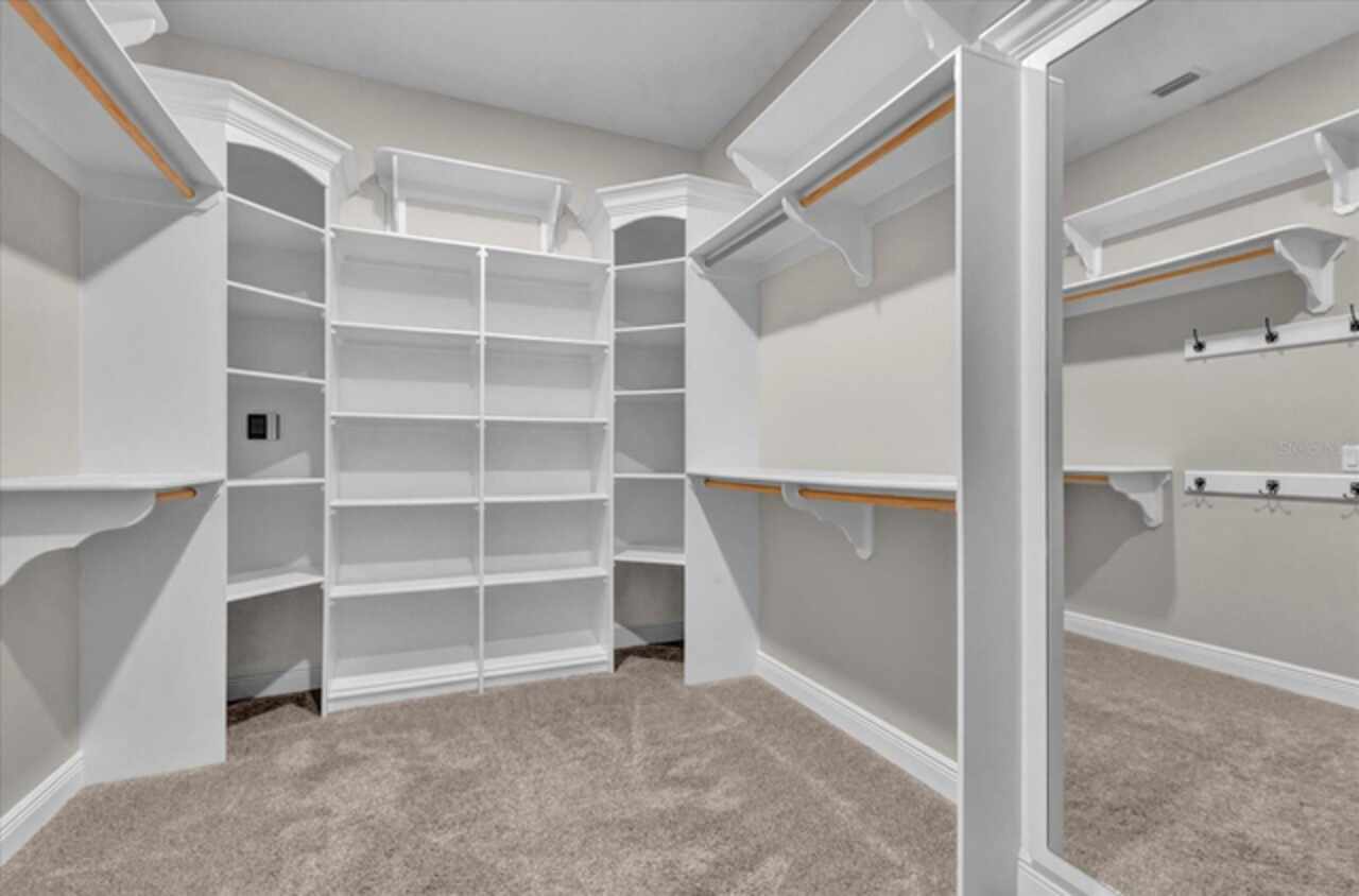Ceiling Fans(s), Central Vaccum, Chair Rail, Crown Molding, Eat-in Kitchen, High Ceilings, Primary Bedroom Main Floor, Solid Surface Counters, Thermostat, Walk-In Closet(s)