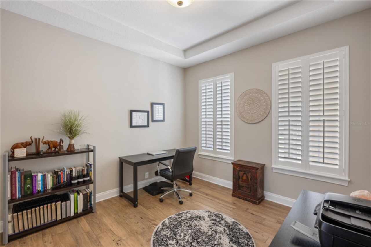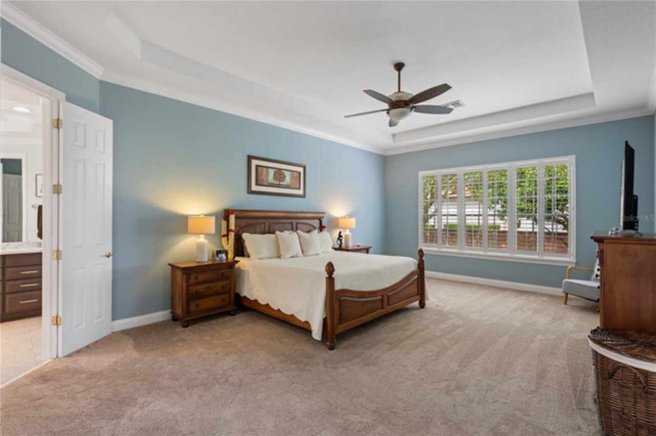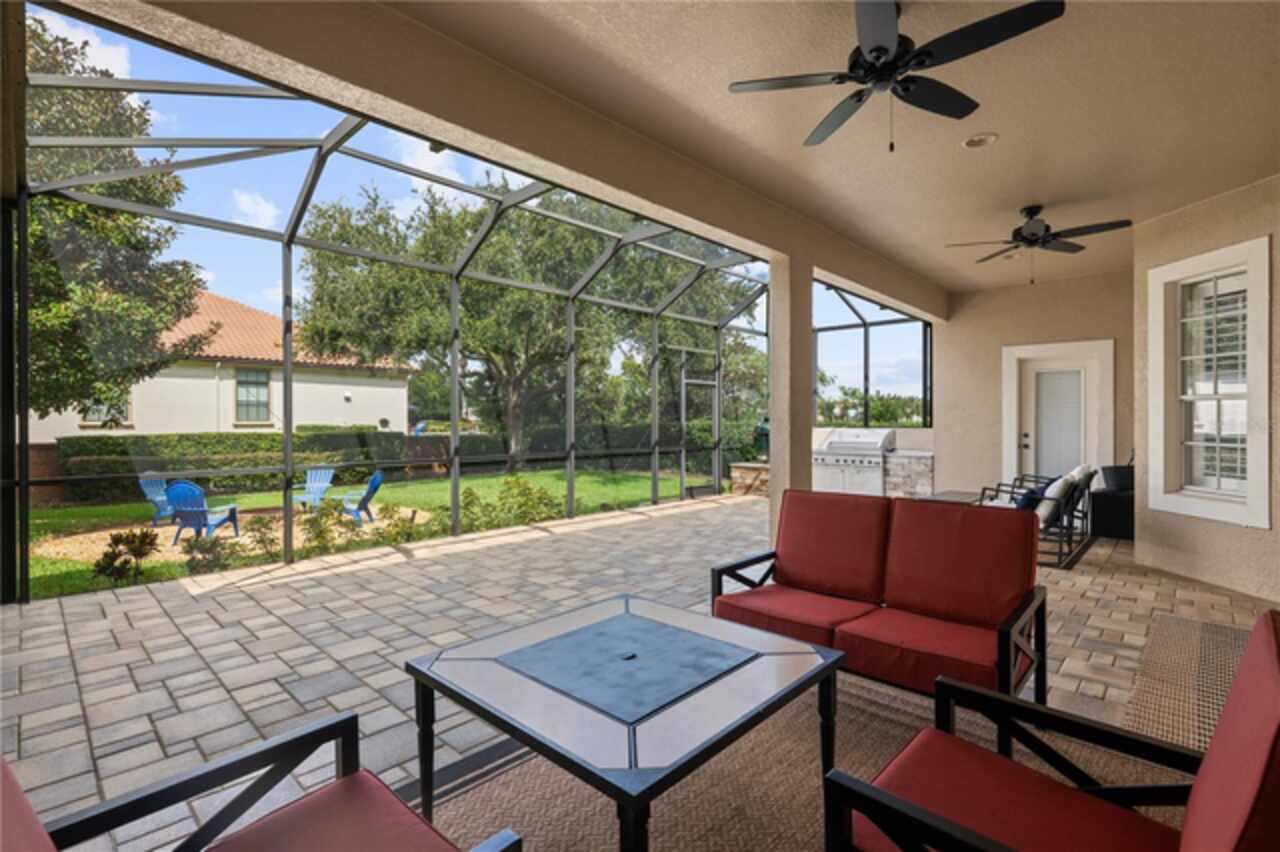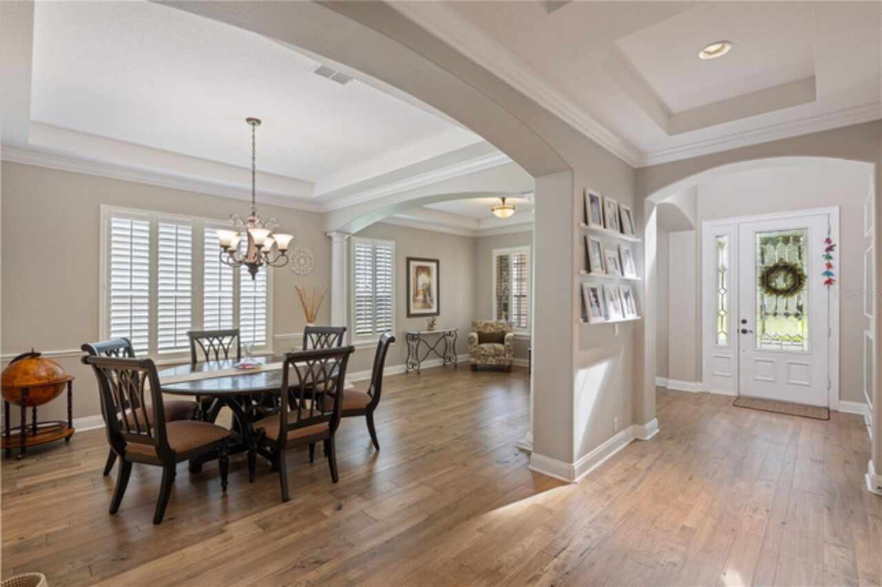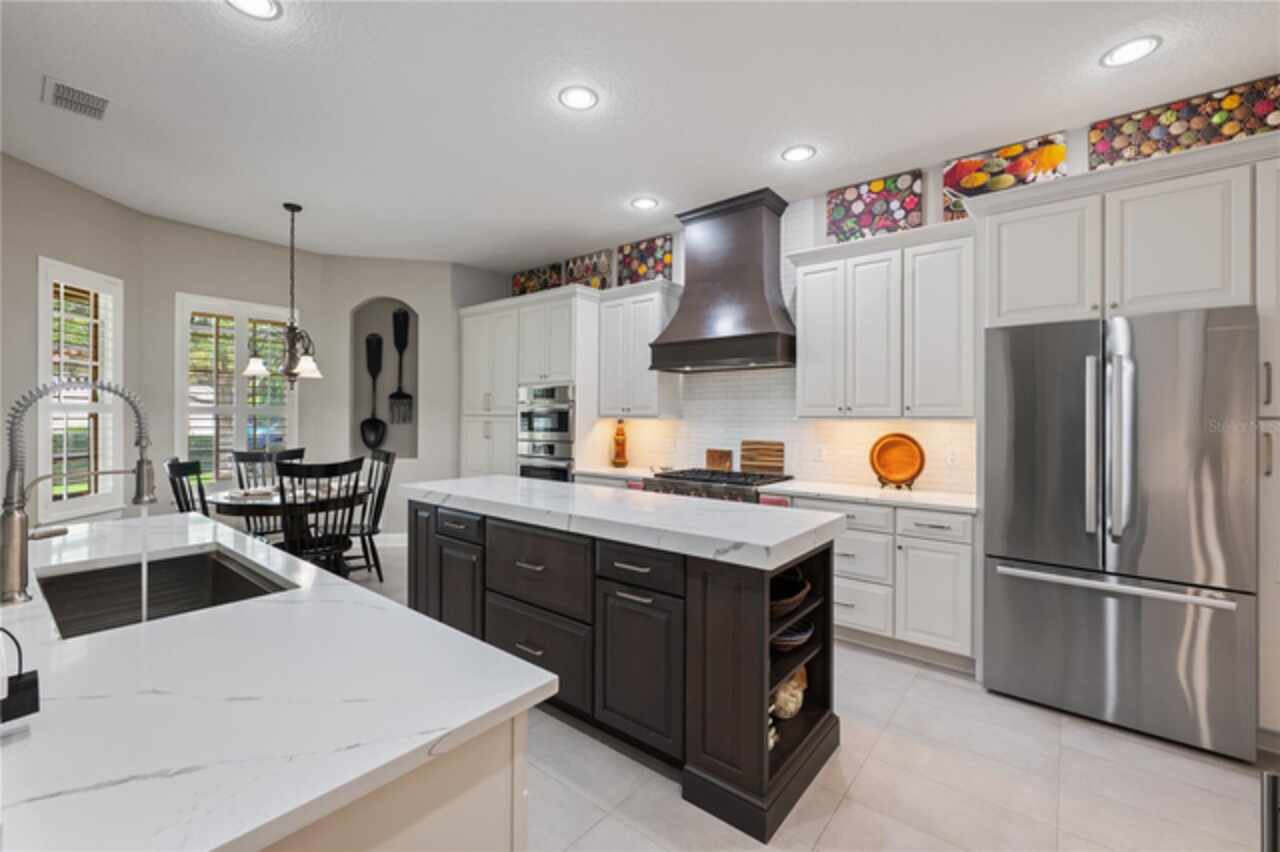 Under contract-accepting backup offers. Welcome to this beautifully maintained, original-owner home nestled within the highly sought after, guard-gated community of Keene’s Pointe. Ideally situated in the charming Village of Camden, this property sits on an oversized 0.35-acre lot, with beautiful walking paths and lush community green spaces nearby. From the moment you arrive, you’ll be captivated by the meticulously landscaped grounds, inviting front porch, and elegant glass entryway. Step inside a grand vaulted foyer bathed in natural light and anchored by rich, distressed wood flooring that flows seamlessly throughout the main living areas. Inside you will find the living room/sitting area adjoining an elegant dining room adorned with tray ceilings, crown molding, graceful pillars, and curved archways. A private home office featuring stylish glass French doors offers a quiet retreat just off the dining room. Continue through the spacious halls to the beautifully remodeled gourmet kitchen, with top-of-the-line stainless steel Bosch appliances, 36” Wolf Pro range cook top, Zephyr wine cooler, expansive quartz countertops, a generous center island, and a cozy breakfast nook with views of the lanai. The kitchen opens effortlessly into the warm and inviting family room, complete with 2-story vaulted ceiling, a wood-burning fireplace, and two sets of French doors that lead to the expansive screened-in, pavered lanai with convenient air-conditioned half bath. The spacious first floor primary suite offers its own entryway from the family room and showcases a tray ceiling, double doored primary retreat with THREE closets, oversized soaking tub and frameless glass shower. A secondary junior office/study nook is conveniently located near the laundry room, offering extra space for remote work or organization. Make your way upstairs to find a spacious open loft, three additional bedrooms and two full baths. One of the guest bedrooms features an en-suite bath and a charming window seating area—ideal for guests or multigenerational living. The oversized, fully fenced backyard offers a tranquil escape, complete with a brick privacy wall and a cozy firepit area—perfect for relaxing evenings outdoors. The extended driveway and unique configuration of separate one and two car garages provide ample space for parking and storage, both garages feature updated LED lighting and epoxy flooring. Enjoy the peaceful lifestyle that the Village of Camden and this exceptional home provide. As a resident of Keene’s Pointe, you’ll also have the option to join The Golden Bear Club, featuring tennis, dining, and the renown Jack Nicklaus Signature Golf Course. NEW Roof in 2018, Wood floors 2021, Both ACS New 2021, Garage epoxy floors 2025, Exterior Paint 2021. See feature sheet for more details.