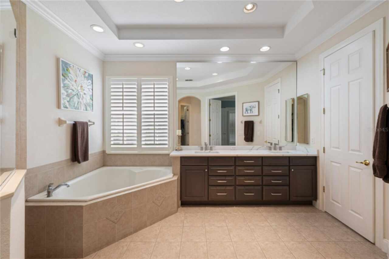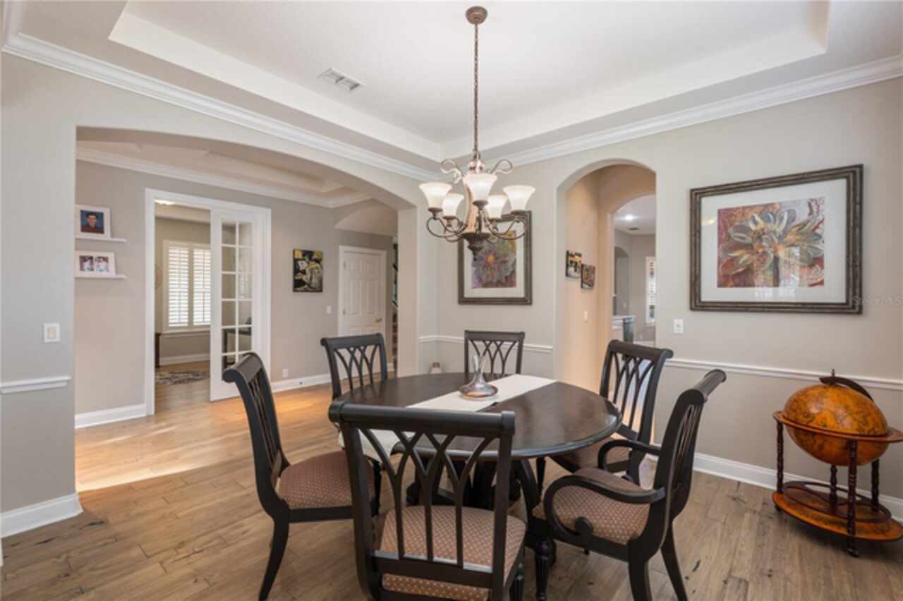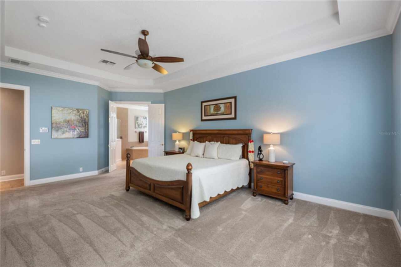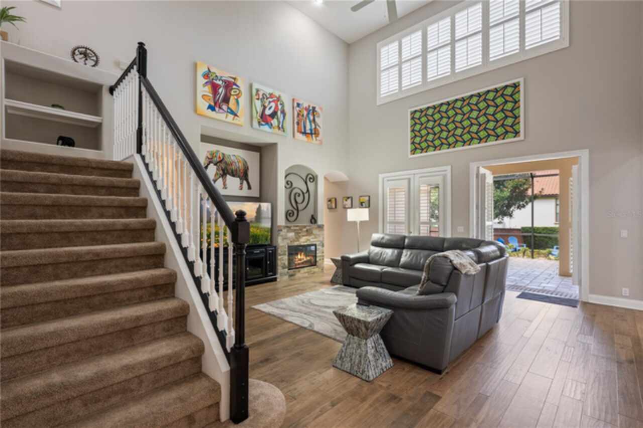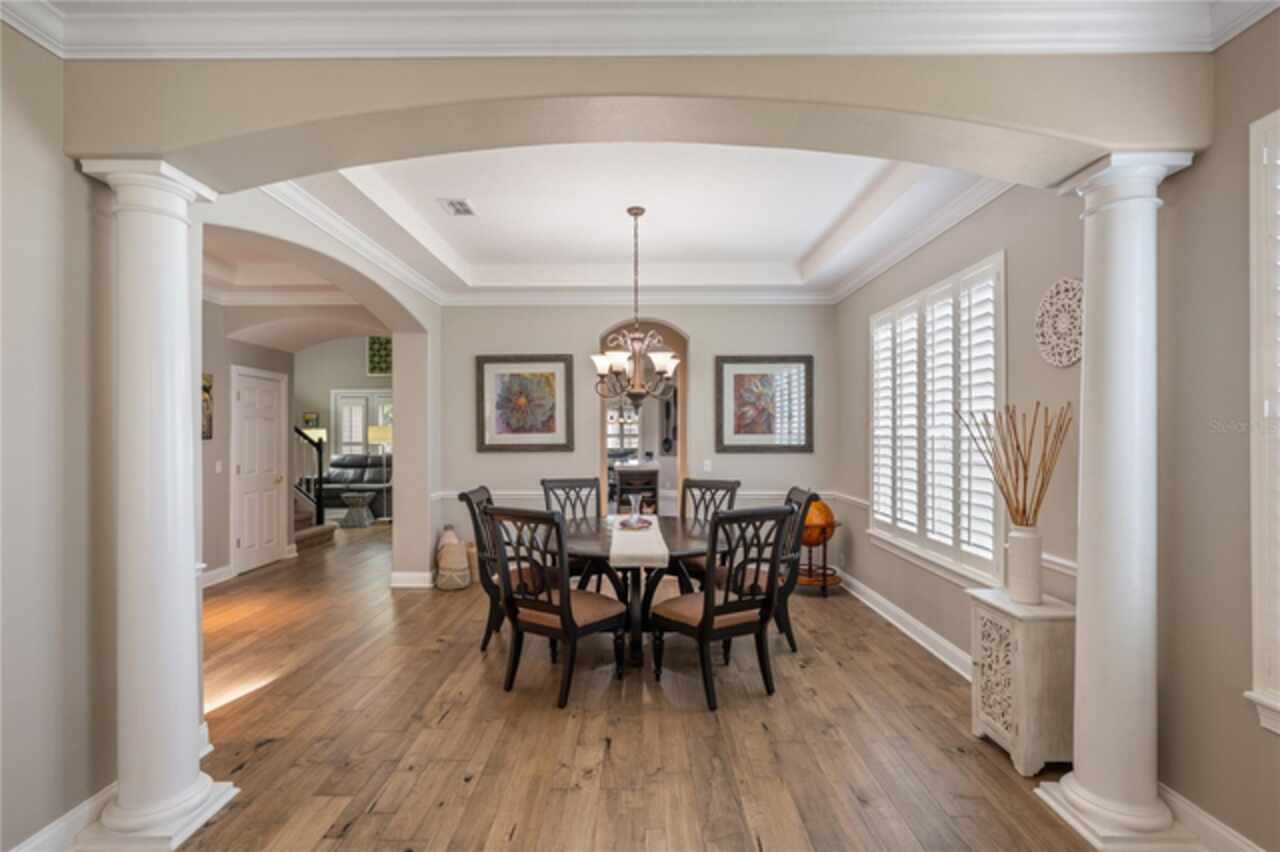 Under contract-accepting backup offers. Welcome to this beautifully maintained, original-owner home nestled within the highly sought after, guard-gated community of Keene’s Pointe. Ideally situated in the charming Village of Camden, this property sits on an oversized 0.35-acre lot, with beautiful walking paths and lush community green spaces nearby. From the moment you arrive, you’ll be captivated by the meticulously landscaped grounds, inviting front porch, and elegant glass entryway. Step inside a grand vaulted foyer bathed in natural light and anchored by rich, distressed wood flooring that flows seamlessly throughout the main living areas. Inside you will find the living room/sitting area adjoining an elegant dining room adorned with tray ceilings, crown molding, graceful pillars, and curved archways. A private home office featuring stylish glass French doors offers a quiet retreat just off the dining room. Continue through the spacious halls to the beautifully remodeled gourmet kitchen, with top-of-the-line stainless steel Bosch appliances, 36” Wolf Pro range cook top, Zephyr wine cooler, expansive quartz countertops, a generous center island, and a cozy breakfast nook with views of the lanai. The kitchen opens effortlessly into the warm and inviting family room, complete with 2-story vaulted ceiling, a wood-burning fireplace, and two sets of French doors that lead to the expansive screened-in, pavered lanai with convenient air-conditioned half bath. The spacious first floor primary suite offers its own entryway from the family room and showcases a tray ceiling, double doored primary retreat with THREE closets, oversized soaking tub and frameless glass shower. A secondary junior office/study nook is conveniently located near the laundry room, offering extra space for remote work or organization. Make your way upstairs to find a spacious open loft, three additional bedrooms and two full baths. One of the guest bedrooms features an en-suite bath and a charming window seating area—ideal for guests or multigenerational living. The oversized, fully fenced backyard offers a tranquil escape, complete with a brick privacy wall and a cozy firepit area—perfect for relaxing evenings outdoors. The extended driveway and unique configuration of separate one and two car garages provide ample space for parking and storage, both garages feature updated LED lighting and epoxy flooring. Enjoy the peaceful lifestyle that the Village of Camden and this exceptional home provide. As a resident of Keene’s Pointe, you’ll also have the option to join The Golden Bear Club, featuring tennis, dining, and the renown Jack Nicklaus Signature Golf Course. NEW Roof in 2018, Wood floors 2021, Both ACS New 2021, Garage epoxy floors 2025, Exterior Paint 2021. See feature sheet for more details.