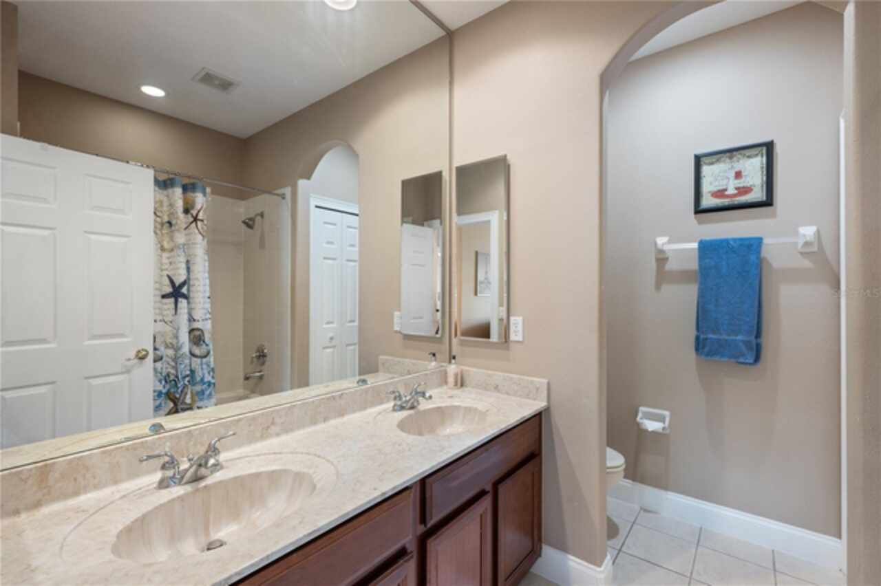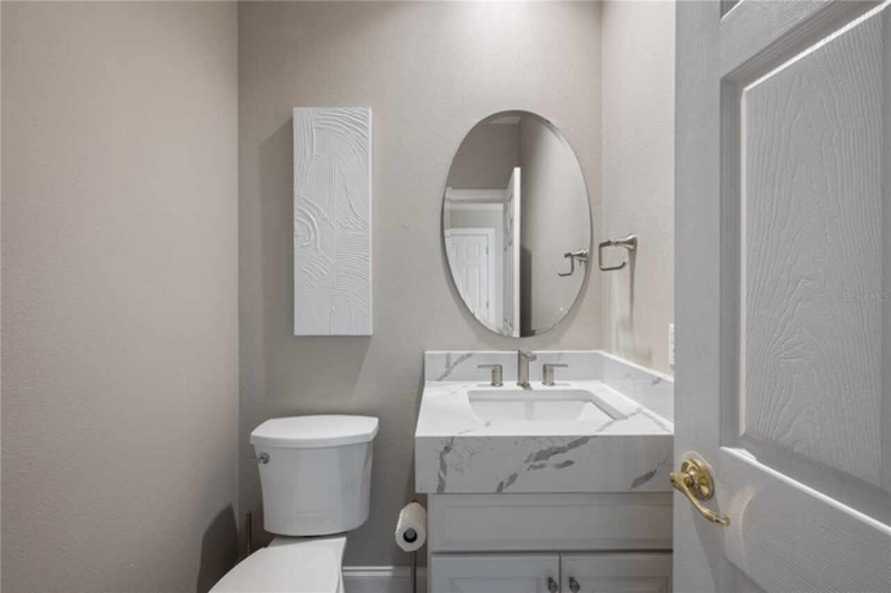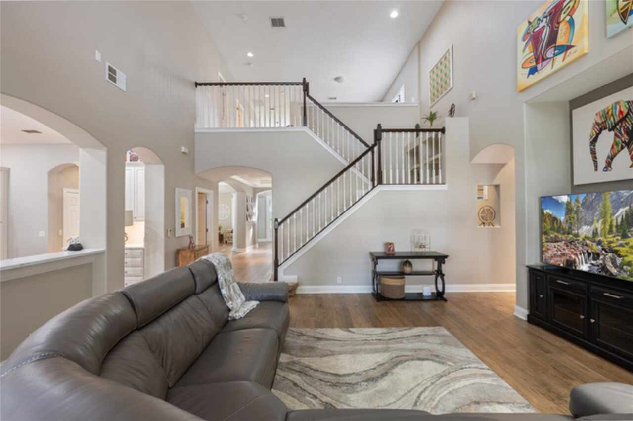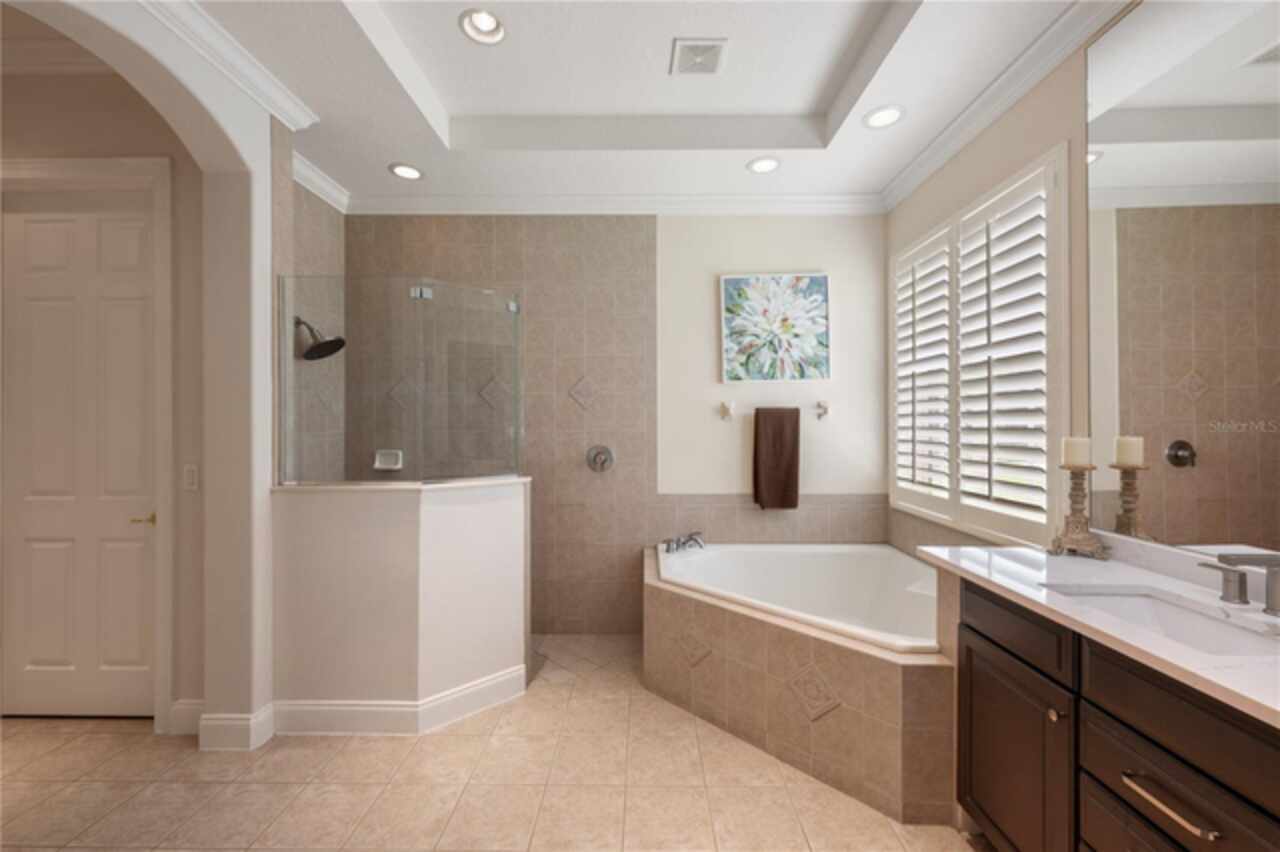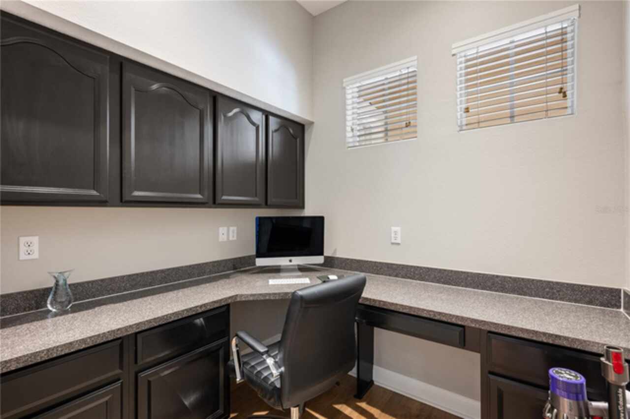 Under contract-accepting backup offers. Welcome to this beautifully maintained, original-owner home nestled within the highly sought after, guard-gated community of Keene’s Pointe. Ideally situated in the charming Village of Camden, this property sits on an oversized 0.35-acre lot, with beautiful walking paths and lush community green spaces nearby. From the moment you arrive, you’ll be captivated by the meticulously landscaped grounds, inviting front porch, and elegant glass entryway. Step inside a grand vaulted foyer bathed in natural light and anchored by rich, distressed wood flooring that flows seamlessly throughout the main living areas. Inside you will find the living room/sitting area adjoining an elegant dining room adorned with tray ceilings, crown molding, graceful pillars, and curved archways. A private home office featuring stylish glass French doors offers a quiet retreat just off the dining room. Continue through the spacious halls to the beautifully remodeled gourmet kitchen, with top-of-the-line stainless steel Bosch appliances, 36” Wolf Pro range cook top, Zephyr wine cooler, expansive quartz countertops, a generous center island, and a cozy breakfast nook with views of the lanai. The kitchen opens effortlessly into the warm and inviting family room, complete with 2-story vaulted ceiling, a wood-burning fireplace, and two sets of French doors that lead to the expansive screened-in, pavered lanai with convenient air-conditioned half bath. The spacious first floor primary suite offers its own entryway from the family room and showcases a tray ceiling, double doored primary retreat with THREE closets, oversized soaking tub and frameless glass shower. A secondary junior office/study nook is conveniently located near the laundry room, offering extra space for remote work or organization. Make your way upstairs to find a spacious open loft, three additional bedrooms and two full baths. One of the guest bedrooms features an en-suite bath and a charming window seating area—ideal for guests or multigenerational living. The oversized, fully fenced backyard offers a tranquil escape, complete with a brick privacy wall and a cozy firepit area—perfect for relaxing evenings outdoors. The extended driveway and unique configuration of separate one and two car garages provide ample space for parking and storage, both garages feature updated LED lighting and epoxy flooring. Enjoy the peaceful lifestyle that the Village of Camden and this exceptional home provide. As a resident of Keene’s Pointe, you’ll also have the option to join The Golden Bear Club, featuring tennis, dining, and the renown Jack Nicklaus Signature Golf Course. NEW Roof in 2018, Wood floors 2021, Both ACS New 2021, Garage epoxy floors 2025, Exterior Paint 2021. See feature sheet for more details.