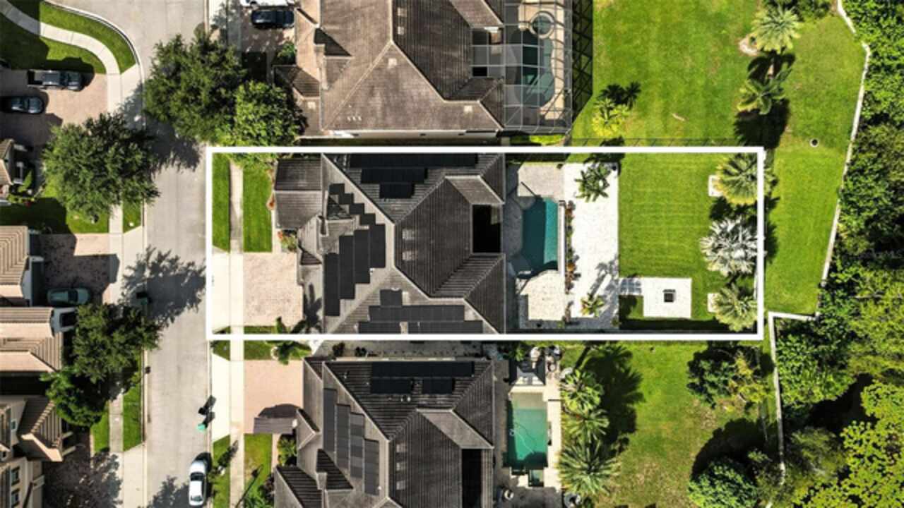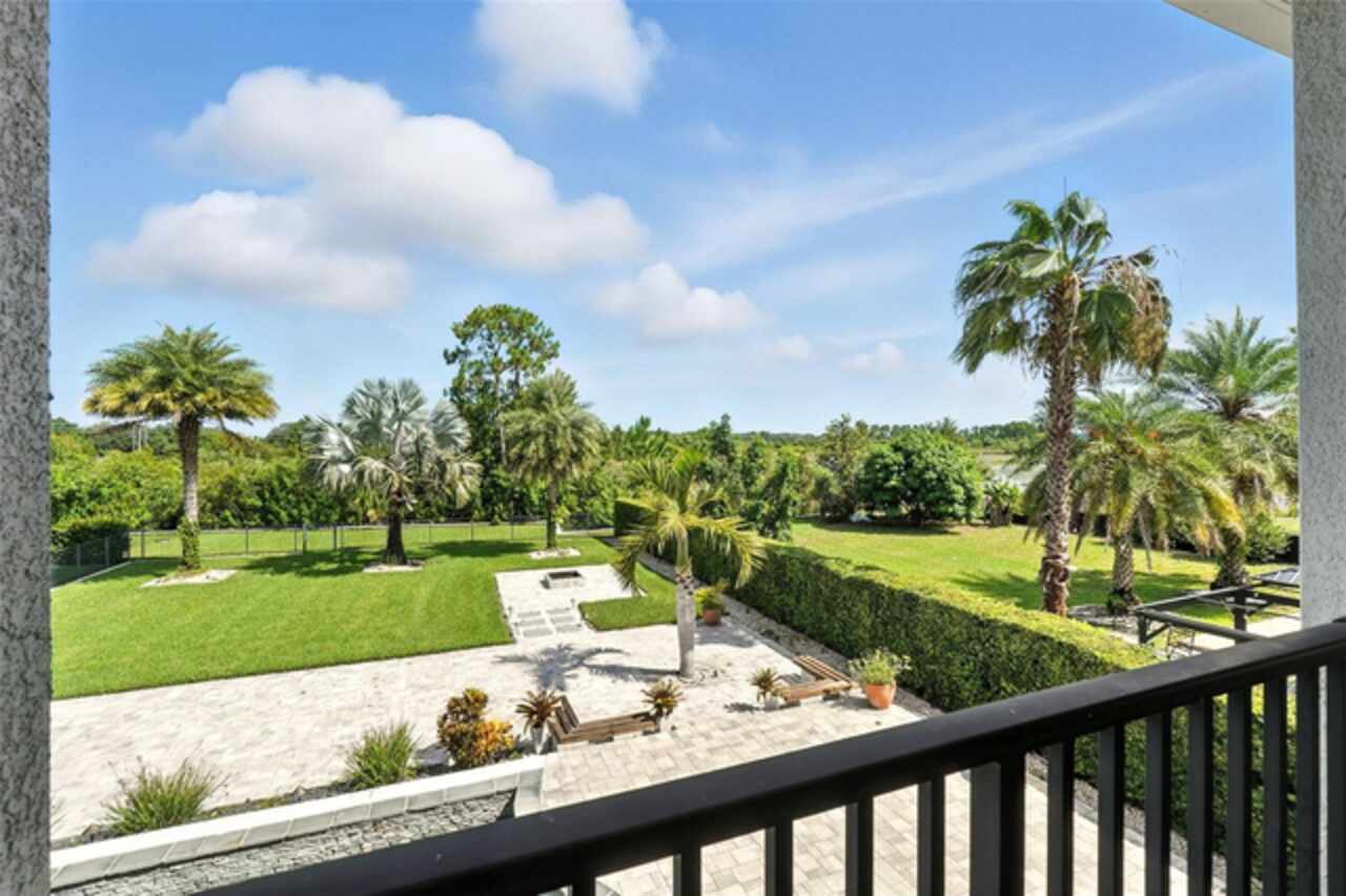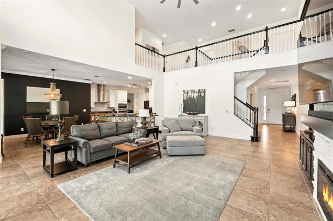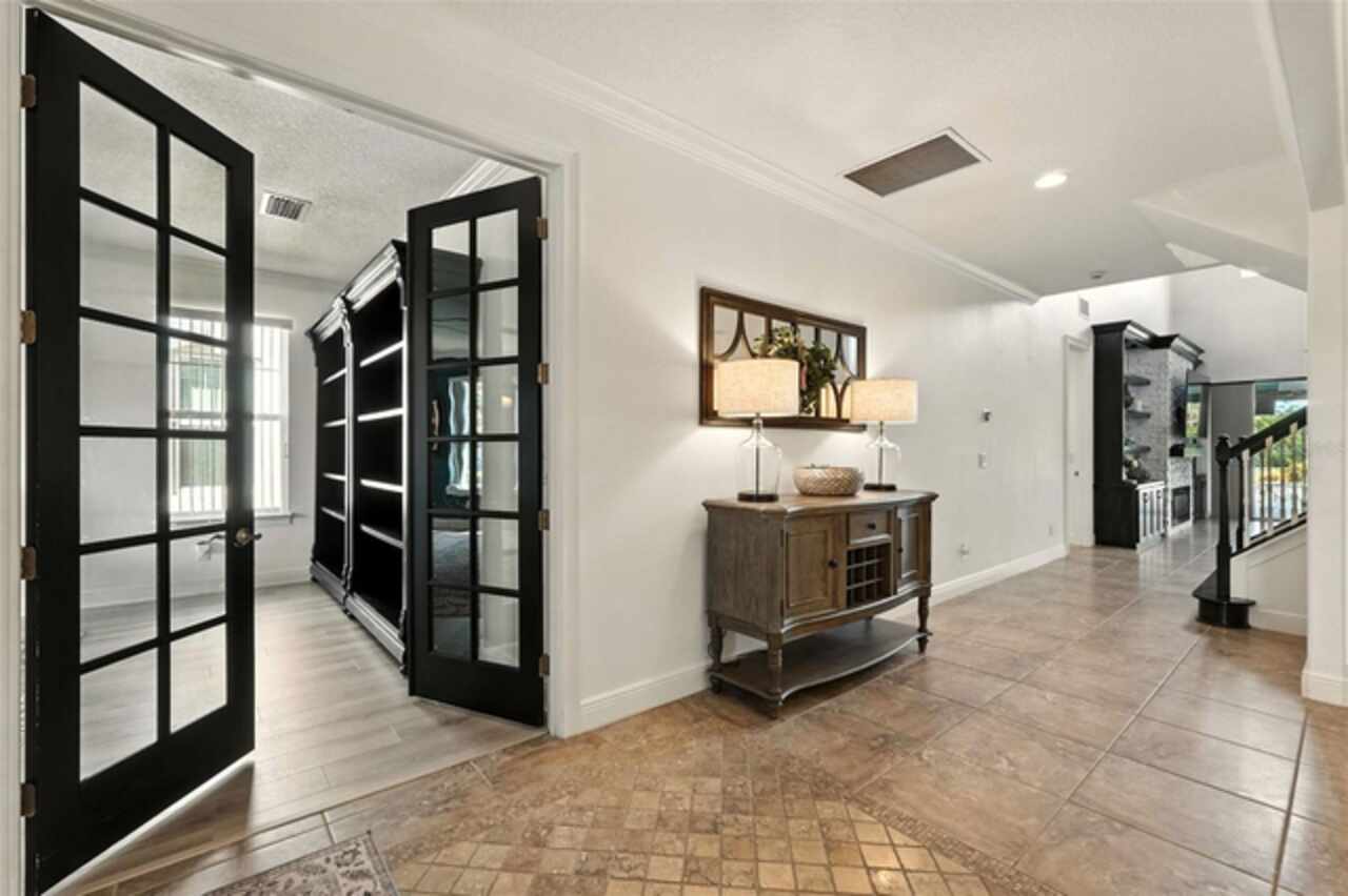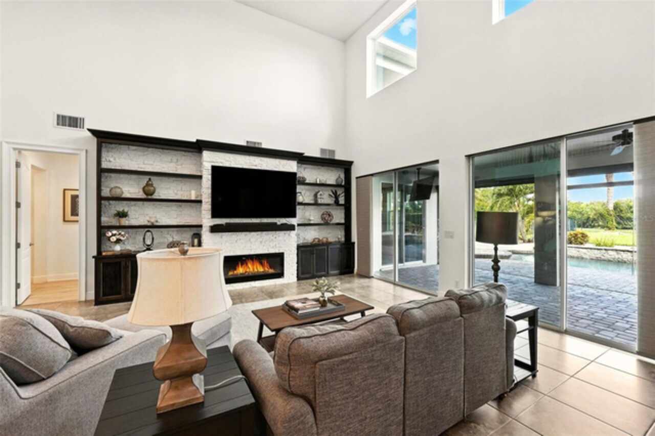 Introducing a rare opportunity to own a truly remarkable lakefront estate in the heart of Windermere's prestigious Lake Burden South community. This 5, 102 sq ft modern contemporary masterpiece offers 5 spacious bedrooms, including two luxurious primary suites—one upstairs and one down—plus a dedicated office, versatile flex room, and massive bonus/media room, 5 full bathrooms, 2 half baths, and a 3-car garage, every inch of this home is designed for comfort, function, and elegance. Step inside to soaring 22-foot ceilings, abundant natural light, and open spaces ideal for both quiet evenings and lively gatherings. The stunning great room is centered around a dramatic custom built-in with electric fireplace, flowing effortlessly into the chef’s kitchen featuring a large island, double ovens, French-door refrigerator, wine fridge, and stainless steel appliances—perfect for hosting grand meals or casual breakfasts. Engineered hardwood flooring, French doors, and all-new lever-style hardware add a touch of timeless sophistication throughout. Step outside and discover your private backyard oasis—a fully fenced yard with an extended covered lanai with remote-controlled retractable screens, overlooking a custom saltwater, solar-heated pool and spa. Upgrades include a 2022 Solar Source pool heater, 2024 Pentair spa heater, Wi-Fi enabled smart lighting, and a new Jandy pool pump—all recent enhancements. The upstairs master suite and bonus room both feature private balconies offering panoramic views of Lake Burden, while the polyaspartic garage floor, ADT security with perimeter cameras, Ring doorbell (2024), and Wi-Fi-enabled smart home features round out this impressive package. Enjoy the Florida lifestyle with community walking trails, tennis courts, ballfields, fishing dock, and the unique bridge connection to Sunset Park Elementary. This quiet cul-de-sac location is minutes from upscale shopping, dining, and just 5 miles to Disney, all while being zoned for top-rated schools including Windermere High. With no rear neighbors, no carpet, and a wealth of thoughtful upgrades, this move-in-ready showplace is the ideal blend of luxury, comfort, and lakefront tranquility. Schedule your private showing today—this is the home you've been waiting for