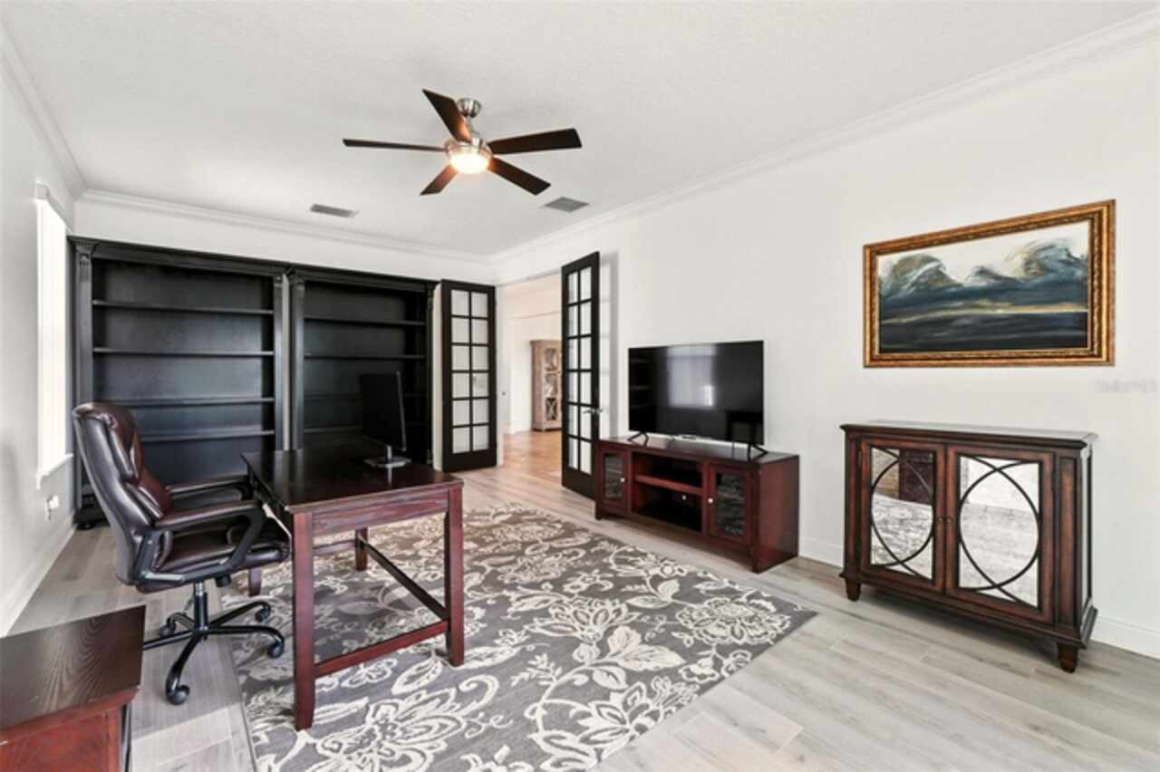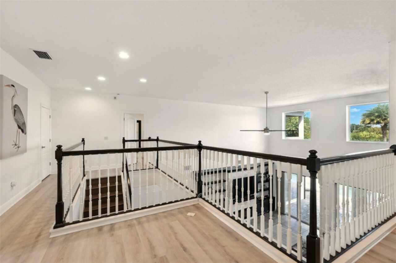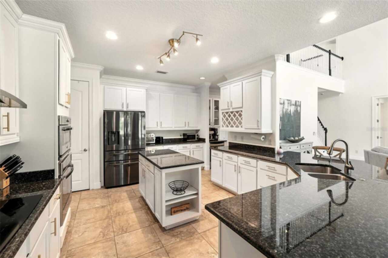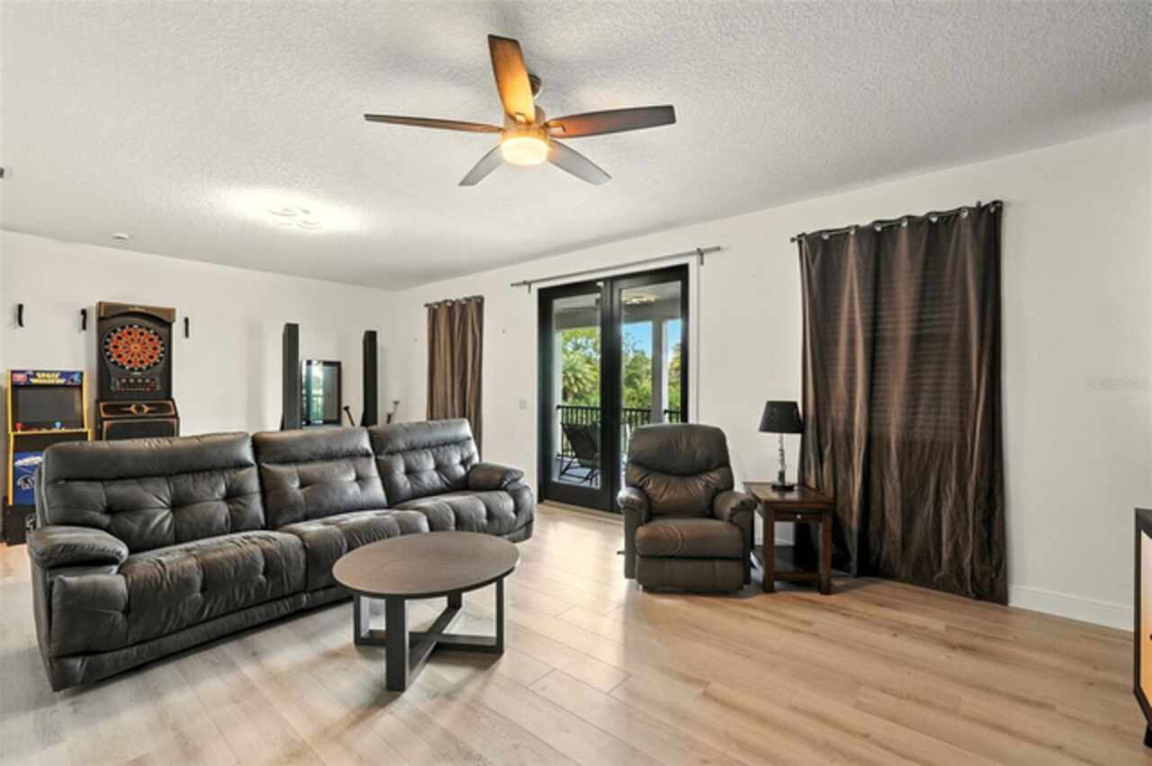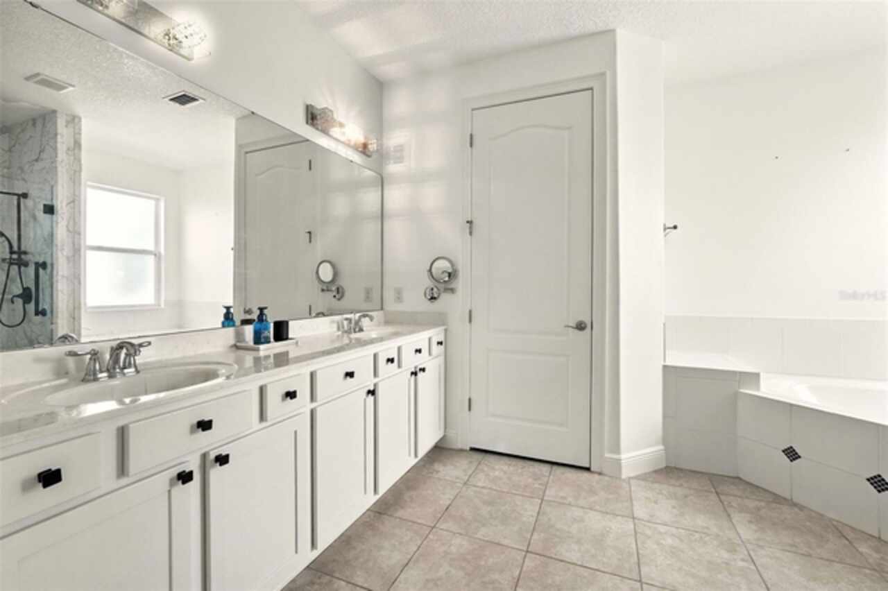 Introducing a rare opportunity to own a truly remarkable lakefront estate in the heart of Windermere's prestigious Lake Burden South community. This 5, 102 sq ft modern contemporary masterpiece offers 5 spacious bedrooms, including two luxurious primary suites—one upstairs and one down—plus a dedicated office, versatile flex room, and massive bonus/media room, 5 full bathrooms, 2 half baths, and a 3-car garage, every inch of this home is designed for comfort, function, and elegance. Step inside to soaring 22-foot ceilings, abundant natural light, and open spaces ideal for both quiet evenings and lively gatherings. The stunning great room is centered around a dramatic custom built-in with electric fireplace, flowing effortlessly into the chef’s kitchen featuring a large island, double ovens, French-door refrigerator, wine fridge, and stainless steel appliances—perfect for hosting grand meals or casual breakfasts. Engineered hardwood flooring, French doors, and all-new lever-style hardware add a touch of timeless sophistication throughout. Step outside and discover your private backyard oasis—a fully fenced yard with an extended covered lanai with remote-controlled retractable screens, overlooking a custom saltwater, solar-heated pool and spa. Upgrades include a 2022 Solar Source pool heater, 2024 Pentair spa heater, Wi-Fi enabled smart lighting, and a new Jandy pool pump—all recent enhancements. The upstairs master suite and bonus room both feature private balconies offering panoramic views of Lake Burden, while the polyaspartic garage floor, ADT security with perimeter cameras, Ring doorbell (2024), and Wi-Fi-enabled smart home features round out this impressive package. Enjoy the Florida lifestyle with community walking trails, tennis courts, ballfields, fishing dock, and the unique bridge connection to Sunset Park Elementary. This quiet cul-de-sac location is minutes from upscale shopping, dining, and just 5 miles to Disney, all while being zoned for top-rated schools including Windermere High. With no rear neighbors, no carpet, and a wealth of thoughtful upgrades, this move-in-ready showplace is the ideal blend of luxury, comfort, and lakefront tranquility. Schedule your private showing today—this is the home you've been waiting for