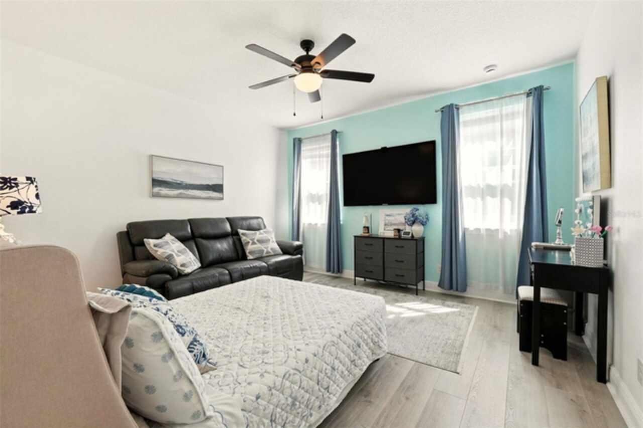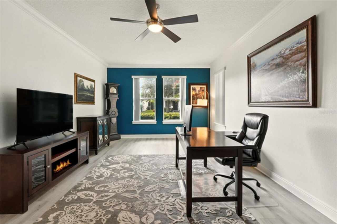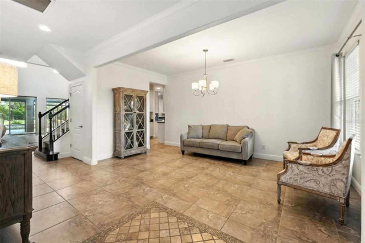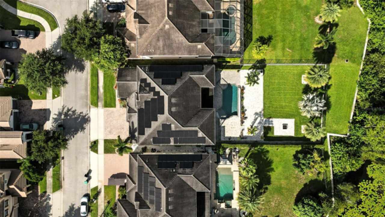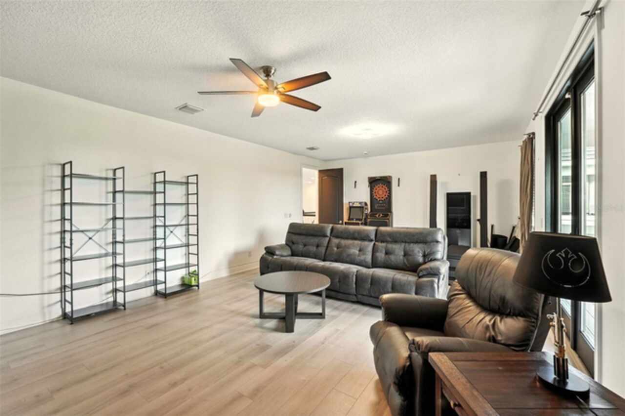Introducing a rare opportunity to own a truly remarkable lakefront estate in the heart of Windermere's prestigious Lake Burden South community. This 5, 102 sq ft modern contemporary masterpiece offers 5 spacious bedrooms, including two luxurious primary suites—one upstairs and one down—plus a dedicated office, versatile flex room, and massive bonus/media room, 5 full bathrooms, 2 half baths, and a 3-car garage, every inch of this home is designed for comfort, function, and elegance. Step inside to soaring 22-foot ceilings, abundant natural light, and open spaces ideal for both quiet evenings and lively gatherings. The stunning great room is centered around a dramatic custom built-in with electric fireplace, flowing effortlessly into the chef’s kitchen featuring a large island, double ovens, French-door refrigerator, wine fridge, and stainless steel appliances—perfect for hosting grand meals or casual breakfasts. Engineered hardwood flooring, French doors, and all-new lever-style hardware add a touch of timeless sophistication throughout. Step outside and discover your private backyard oasis—a fully fenced yard with an extended covered lanai with remote-controlled retractable screens, overlooking a custom saltwater, solar-heated pool and spa. Upgrades include a 2022 Solar Source pool heater, 2024 Pentair spa heater, Wi-Fi enabled smart lighting, and a new Jandy pool pump—all recent enhancements. The upstairs master suite and bonus room both feature private balconies offering panoramic views of Lake Burden, while the polyaspartic garage floor, ADT security with perimeter cameras, Ring doorbell (2024), and Wi-Fi-enabled smart home features round out this impressive package. Enjoy the Florida lifestyle with community walking trails, tennis courts, ballfields, fishing dock, and the unique bridge connection to Sunset Park Elementary. This quiet cul-de-sac location is minutes from upscale shopping, dining, and just 5 miles to Disney, all while being zoned for top-rated schools including Windermere High. With no rear neighbors, no carpet, and a wealth of thoughtful upgrades, this move-in-ready showplace is the ideal blend of luxury, comfort, and lakefront tranquility. Schedule your private showing today—this is the home you've been waiting for