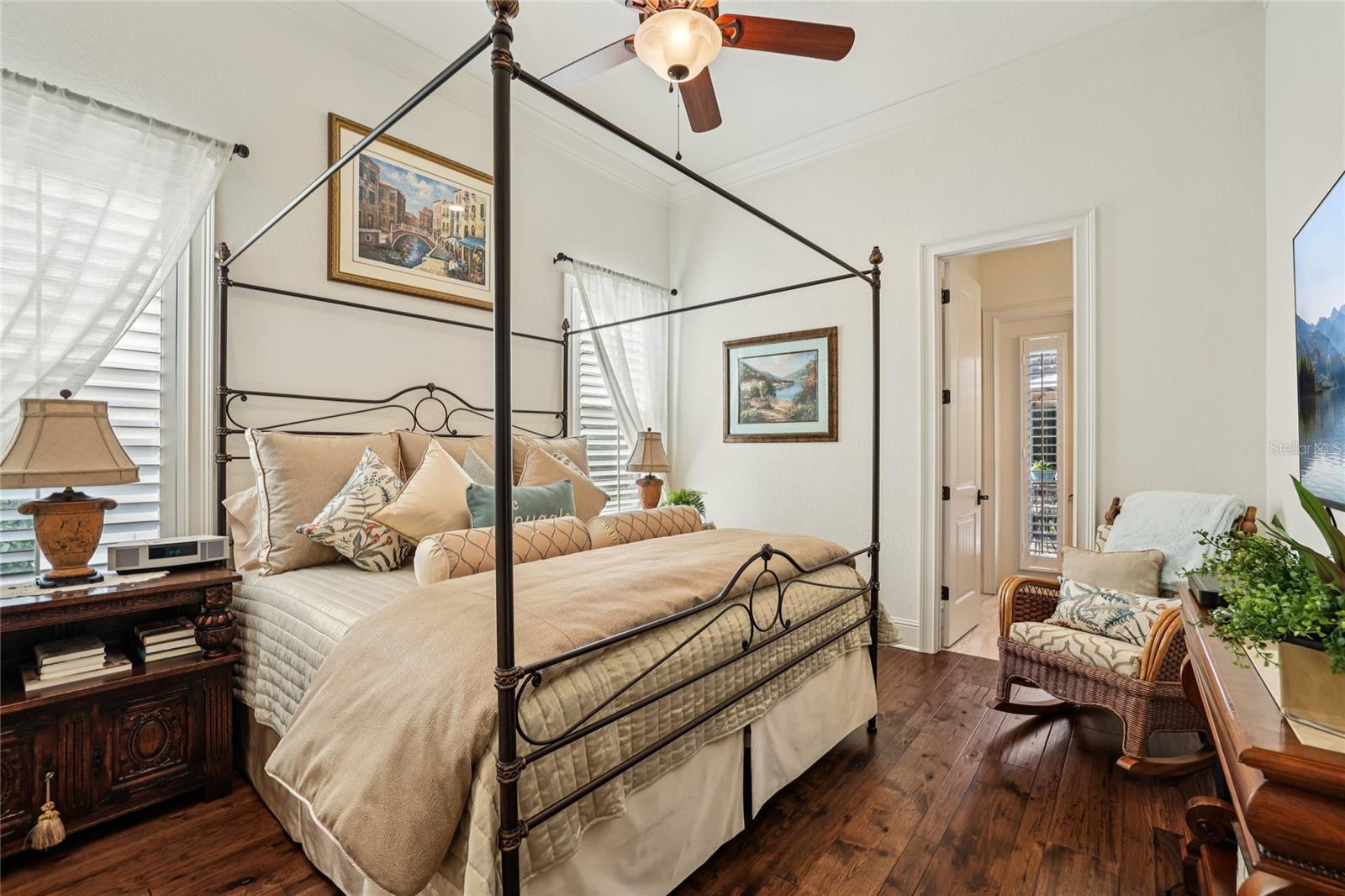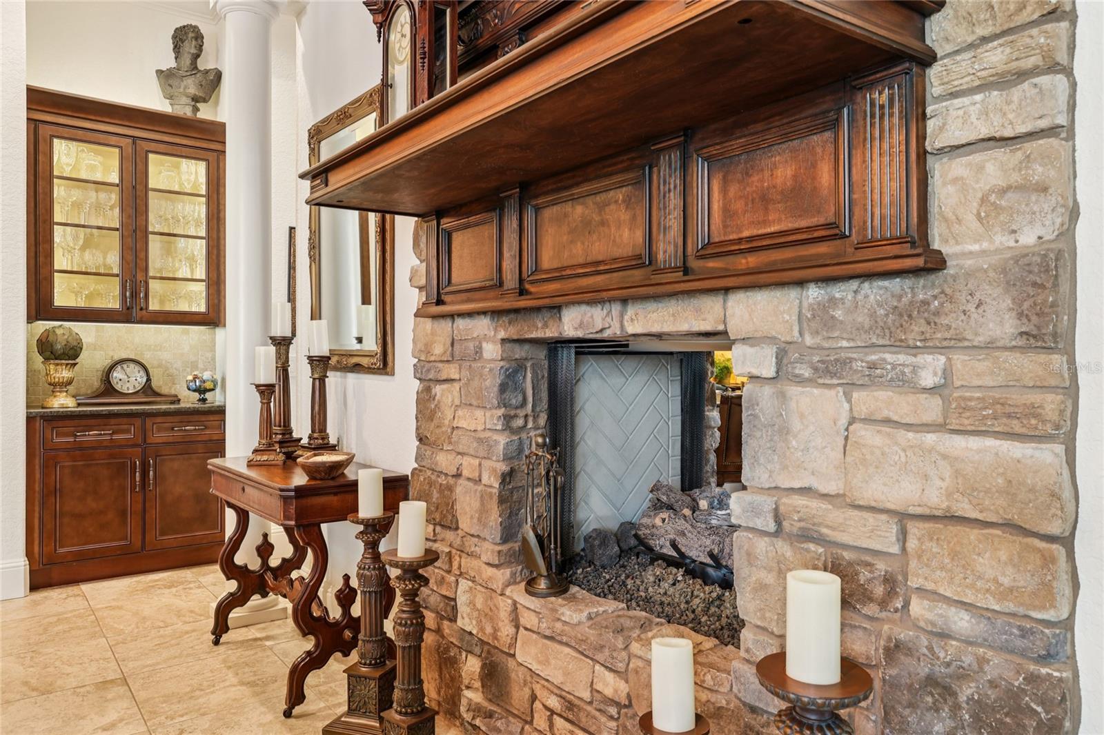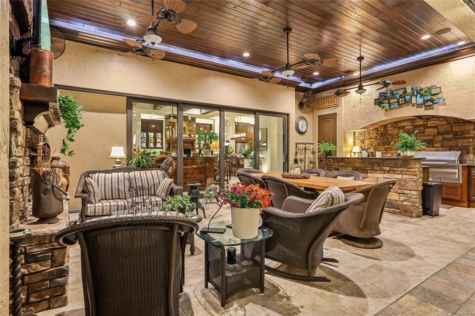 Casa del Lago gated community in Windermere, Florida. Exquisite 4 bedroom/4.5 bath luxury residence showcasing exceptional craftsmanship and high-end finishes throughout. As you arrive you are welcomed by a circular driveway and quaint courtyard entrance. The first floor boasts a formal dining room, and a spacious gathering room anchored by a stunning stone two-sided fireplace. A dedicated 1, 275-bottle wine cellar with tasting and corking areas elevates the home’s entertainment appeal. The gourmet kitchen features Thermador appliances, a generous island, a walk-in pantry, and a Butler’s area—perfect for hosting on any scale. A private primary suite offers direct access to the patio and pool, along with a spa-inspired en-suite bath. This retreat features stone wall accents, a luxurious indoor shower plus an outdoor shower with dual rain heads, and an expansive, custom-designed closet with three separate areas and built-in shelving.Also on the main level are two additional en-suite bedrooms, one with a private entrance from the front courtyard—ideal for guests or multi-generational living. A large laundry room with built-in refrigerator and freezer and additional storage room adds convenience and functionality. The gathering room with built-in entertainment center and 16ft sliding glass doors opens seamlessly to the private outdoor patio with summer kitchen, gas fireplace, and screened resort-style swim-spa, as well as sitting area with fire pit, creating an effortless indoor-outdoor flow.Upstairs, a spacious club room awaits—complete with built-in entertainment center and abundant storage—perfect for gaming, media, or relaxed lounging. The upper level also includes a fourth en-suite bedroom with walk-in closet and a large closet for holiday storage. This home also has a 3-car split garage, hardwood flooring, wood paneled and beamed ceilings, plantation shutters, and custom details throughout. A rare blend of elegance, comfort, and thoughtful design—crafted for luxurious everyday living and exceptional entertaining. Located close to shopping, dining, top-rated public and private schools, expressways and tourist attractions, this home has everything you are looking for. Call for your private viewing today.