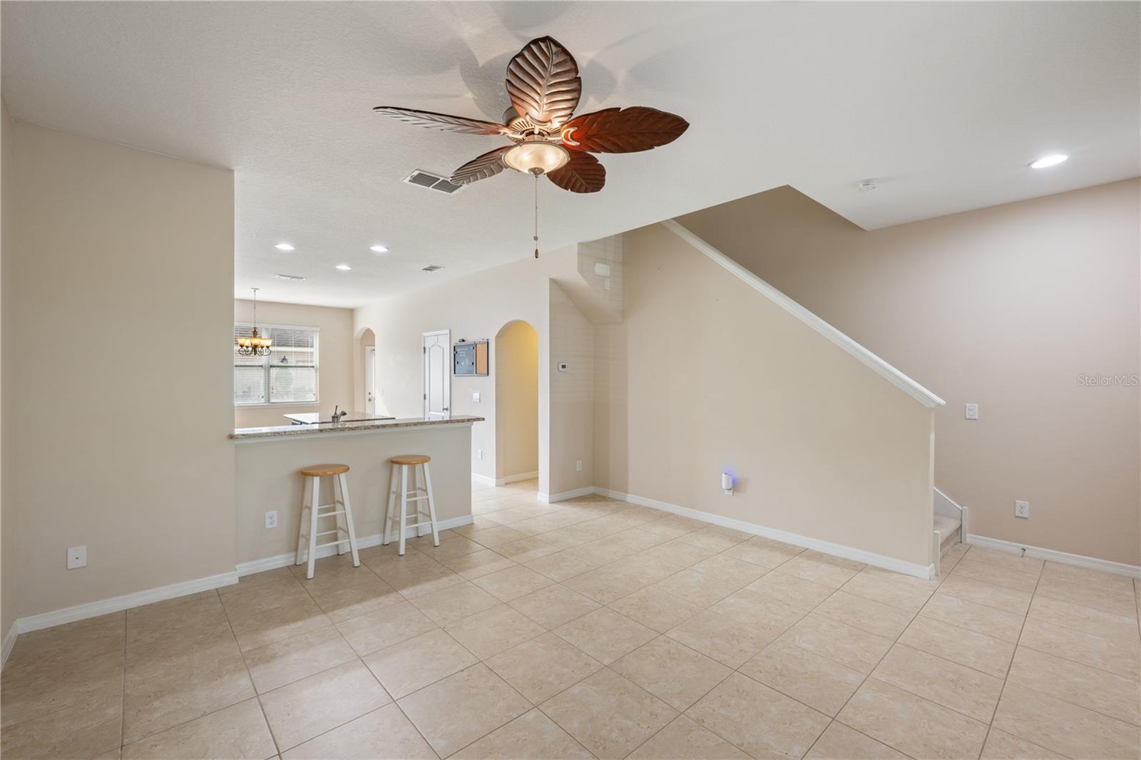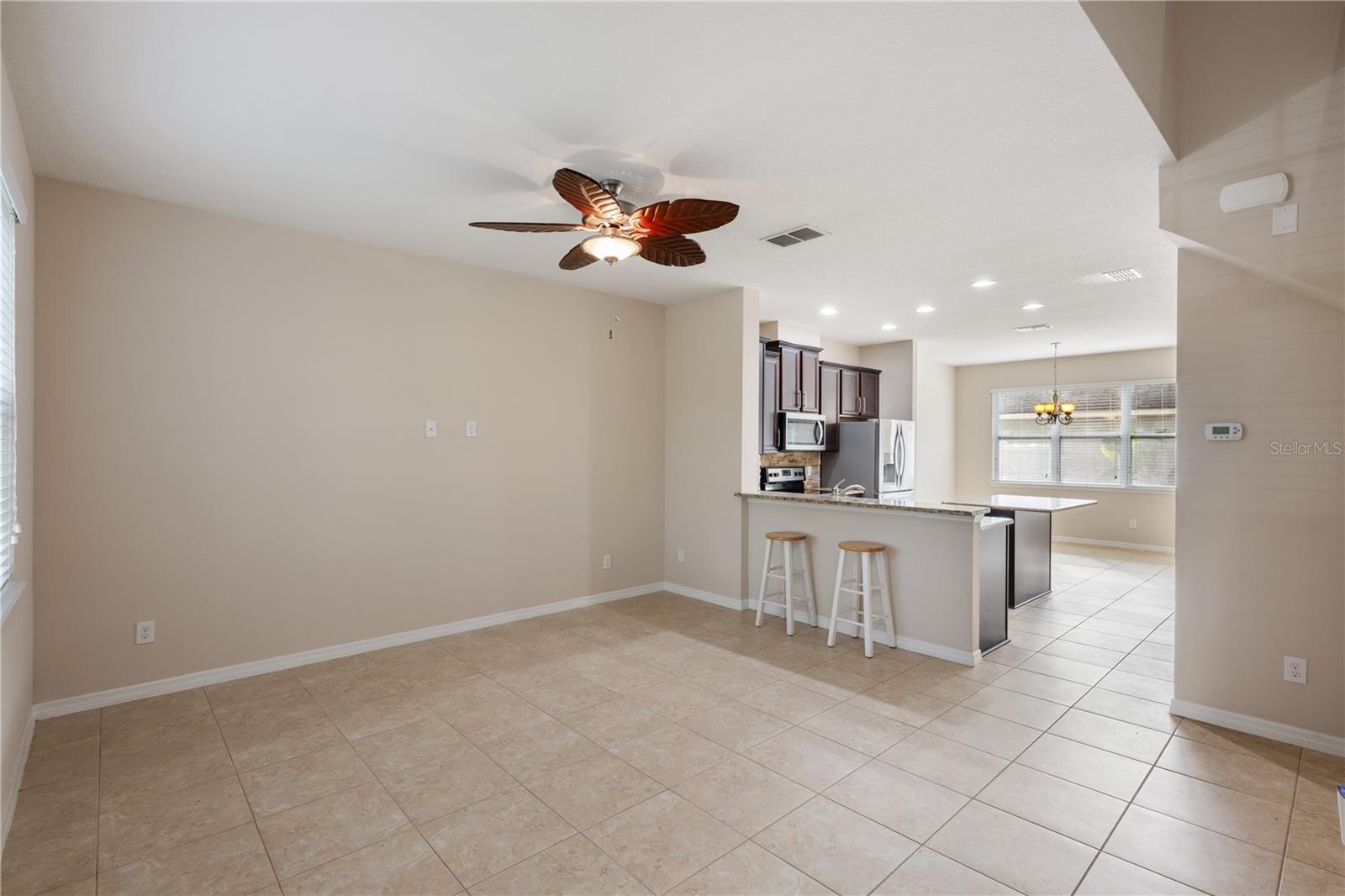 Ceiling Fans(s), Eat-in Kitchen, Kitchen/Family Room Combo, Open Floorplan, PrimaryBedroom Upstairs, Stone Counters, Thermostat, Walk-In Closet(s), Window Treatments