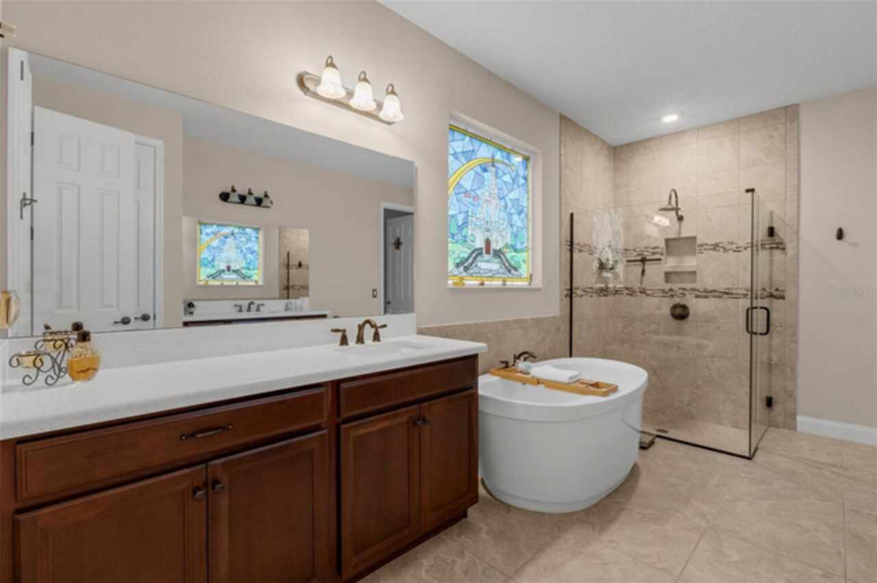 Buyer Incentive: Seller offering a mortgage rate buydown to qualified buyers! This is a MUST SEE, Stunning 5-bed, 4.5-bath estate in Windermere Isle with unmatched privacy: no rear neighbors, treed backyard, and a nearly half-acre of treed green space beside the property. With a one-story ranch next door, your outdoor living spaces remain exceptionally private — the perfect backdrop for nightly views of Disney fireworks. Inside, soaring ceilings, hardwood/tile floors, chef's kitchen, high end appliances, custom fininshings, and open living spaces on lower and upper level make family living and entertaining a breeze. Premium upgrades include a whole-home commerical grade generator, advanced humidification & UV filtration, and tankless water heater. Three unique Disney themed stained glass window inserts add charm and are fully removable for a more classic look if desired. Low HOA, includes landscaping service, Internet and TV. This serene location, and proximity to Horizon West dining, shopping, recreation and top schools make this a rare Windermere opportunity. Don’t miss the limited time buyer rate buydown -- schedule your private tour today!