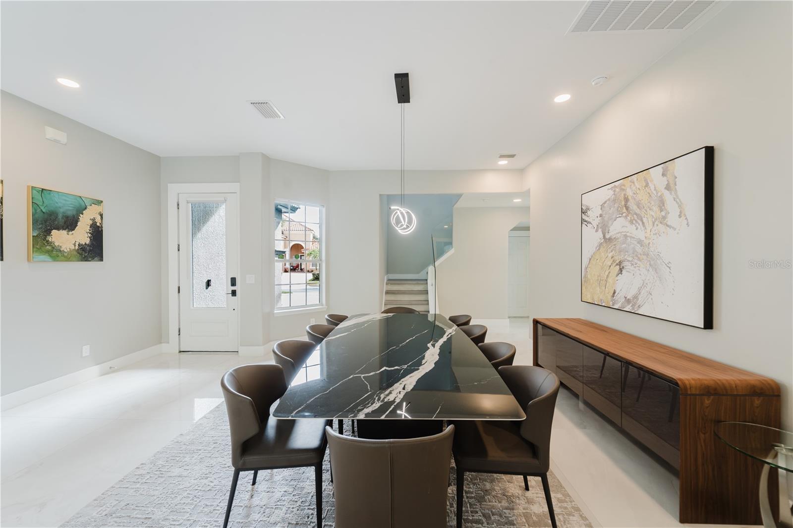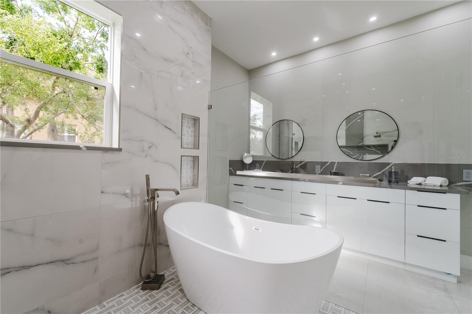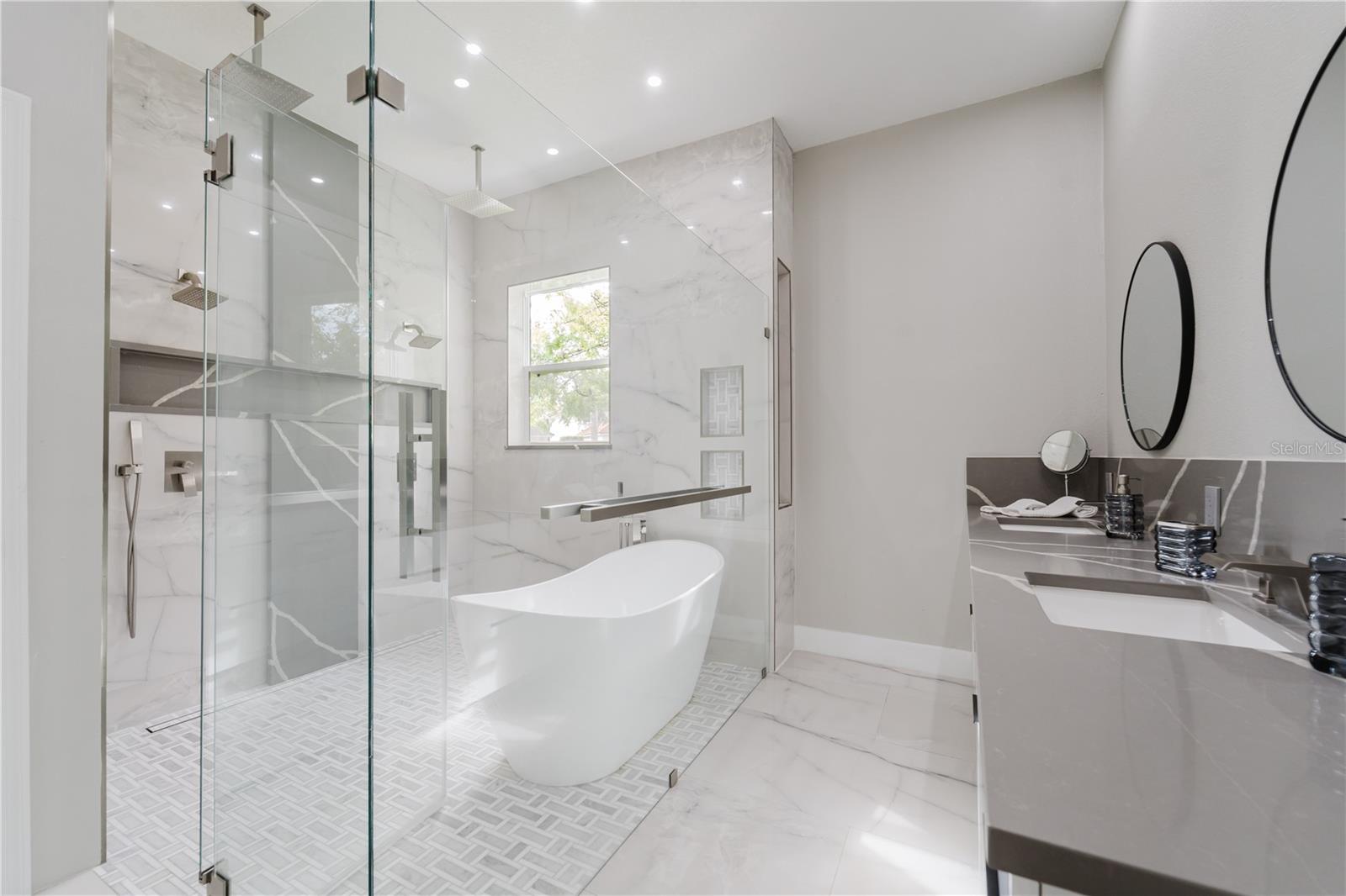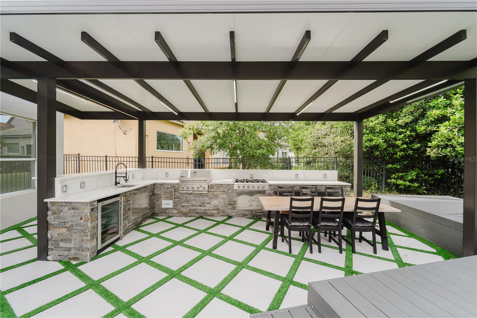 Stunning residence with a private fenced backyard, located in the highly sought-after gated community of Belmere in Windermere, just minutes from the town center. Featuring 4 bedrooms, 4 bathrooms, and approximately 2, 800 sq. ft. of air-conditioned living space, this home immediately captivates with its elegant Mediterranean architecture and lush tropical landscaping. Fully renovated this year, the home features new flooring, a kitchen, bathrooms, and both interior and exterior paint, perfectly combining technology, comfort, and sophistication. The integrated sound system extends throughout the house, while the gourmet kitchen impresses with a ceramic range, built-in refrigerator, quartz countertops, and LED lighting. Motorized cabinets, a built-in oven and microwave, a large pantry, and a sink with a glass washer complete this space designed for culinary enthusiasts. Also, a state-of-the-art whole-house water filtration system is installed at the main water line, treating all the water that enters the house. A newly constructed deck is ready for the installation of an oversized jacuzzi, with all plumbing already in place. Additional features such as touch-activated LED stair lighting and vitrified epoxy-coated garage flooring further elevate the living experience. The home offers spacious, bright, and contemporary living areas. The family room, filled with natural light, opens directly to the outdoor area, creating a seamless connection between indoor and garden spaces. The expansive and elegant kitchen serves as the heart of the home, ideal for family gatherings around the central island. The master suite is a true private retreat, offering serene garden views and a luxurious bathroom featuring a soaking tub, the perfect spot to unwind after a long day. The outdoor area provides a tranquil and inviting setting, ideal for family gatherings or moments of peace surrounded by nature. The outdoor kitchen also provides a 6-burner gas stove, gas grill, sink, and a mini refrigerator.