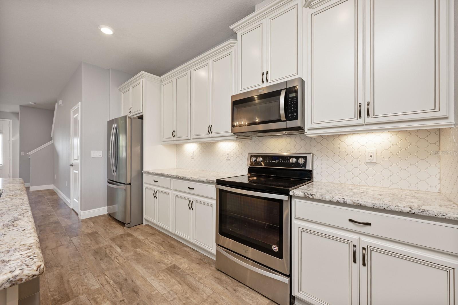 One or more photo(s) has been virtually staged. Ask about a lender provided RATE BUY-DOWN CREDIT on this home ~ Seller may consider buyer concessions if made in an offer ~ Welcome to effortless living in the heart of Windermere! This fantastic 3-bedroom, 2.5-bath townhome in the highly desirable Vineyards/Horizon West community offers modern upgrades, a bright and airy layout, and a prime location close to everything Central Florida is known for! From top A-RATED SCHOOLS to theme parks, shopping, dining, golf, and recreation, this address checks all the boxes for easy living. Step inside and you are greeted by high ceilings, nice natural light, and an OPEN CONCEPT living and dining space that feels instantly inviting. WOOD LOOK TILE FLOORS flow through the main level, pairing style with durability, while plush carpet adds comfort to the upstairs bedrooms. The front door features a glass inset that brings in even more light, setting the tone for the easy breezy feel of the home. At the heart of the main floor is the UPGRADED KITCHEN, beautifully designed with stone countertops, timeless cabinetry topped in crown molding, STAINLESS STEEL APPLIANCES, a complementary backsplash, pantry storage, and a large ISLAND with a breakfast bar – perfect for casual everyday meals or entertaining family and friends. A convenient half bath at the foyer and a laundry room just off the kitchen keep the main level functional and stress-free. Upstairs, the spacious PRIMARY SUITE offers a peaceful retreat with a WALK-IN CLOSET and a private en-suite bath. Bedrooms two and three share a second full bath, making the layout ideal for family, guests, or a home office. Outdoor living is just as enjoyable with your PRIVACY FENCED COURTYARD PATIO, perfect for morning coffee or relaxing at the end of a long day. The COVERED FRONT PORCH and a rear-facing 2-CAR GARAGE add charm and practicality, complemented by beautifully maintained landscaping and curb appeal throughout the community. With double-pane/insulated windows, low-maintenance townhome living, and a well-kept community atmosphere, this home offers the best of Windermere living with none of the hassle. All of this, just moments from Winter Garden Vineland Road, top attractions, and the best Horizon West has to offer. Call today to schedule a tour and fall in love with your new HOME SWEET HOME!
