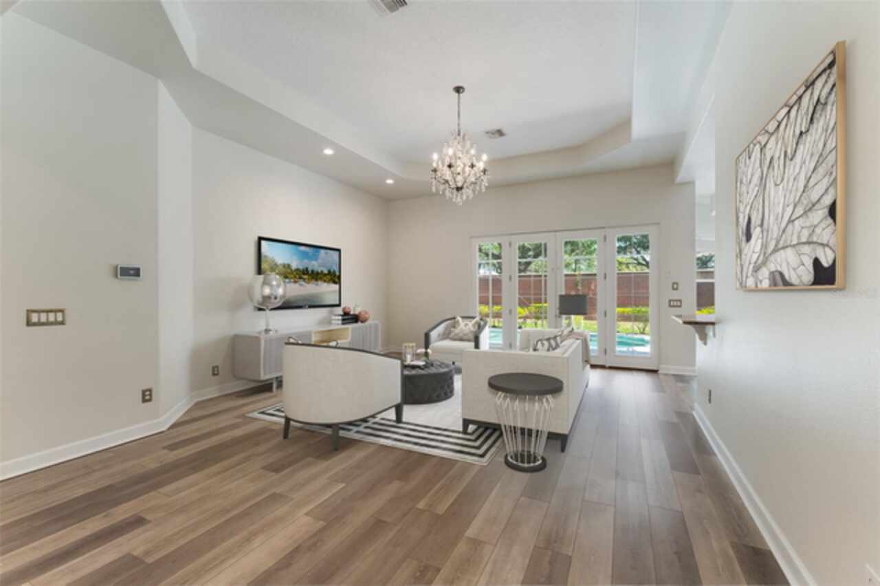 Welcome to luxury living in the highly desirable gated community of Belmere, located in Windermere. This beautifully upgraded 5 bedroom, 4 bath pool home offers the perfect blend of elegance, comfort, and functionality. Featuring new luxury vinyl flooring, upgraded appliances, and an open concept split floor plan, the home is flooded with natural light that enhances its spacious and inviting atmosphere. The kitchen includes granite countertops, a breakfast bar, window backsplash, and dining space overlooking the private screened in pool. Backyard is complete with French doors and no rear neighbors. The main floor offers three bedrooms, including a luxurious primary suite with pool access, dual vanities, a large walk in shower, and garden tub. A guest bedroom on the first floor ensures convenience for visitors, while the second floor includes two additional bedrooms, full bath, and a versatile loft space, perfect for a home office, gym, or playroom. The community has an array of resort style amenities including a pool, clubhouse with a fitness center, tennis courts, volleyball area, playground, and scenic lake views. Ideally located just minutes from the charming cobblestone streets of Downtown Windermere and with easy access to major highways, attractions, shopping and more. Schedule a private showing today!