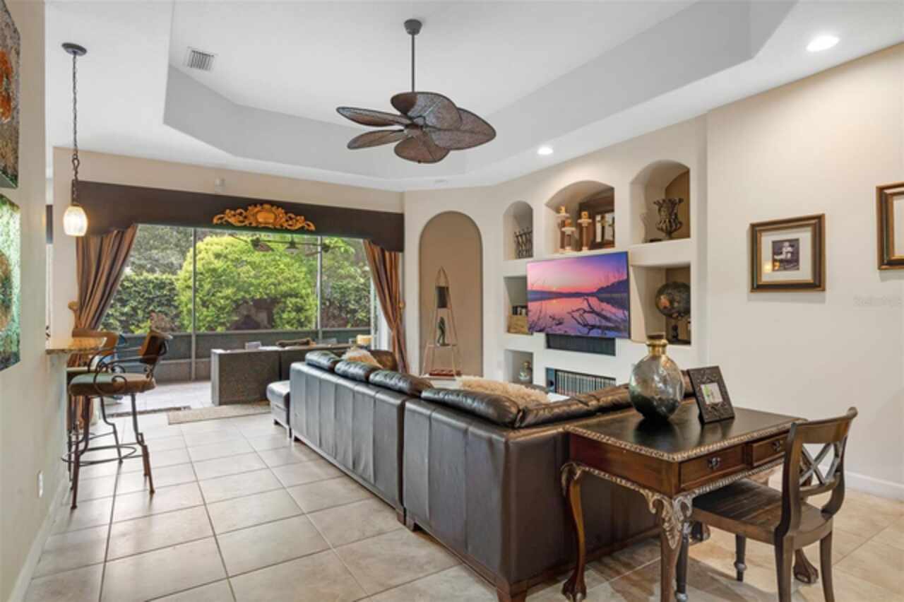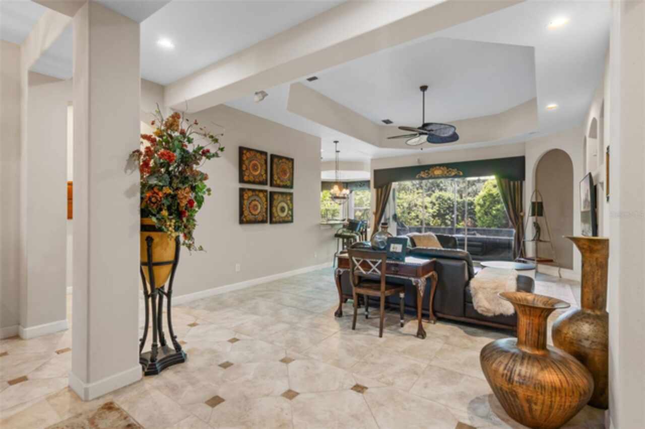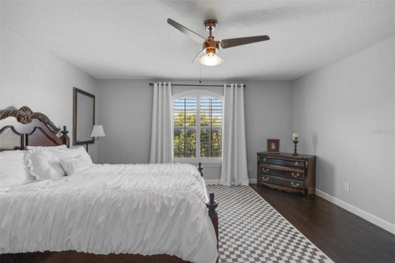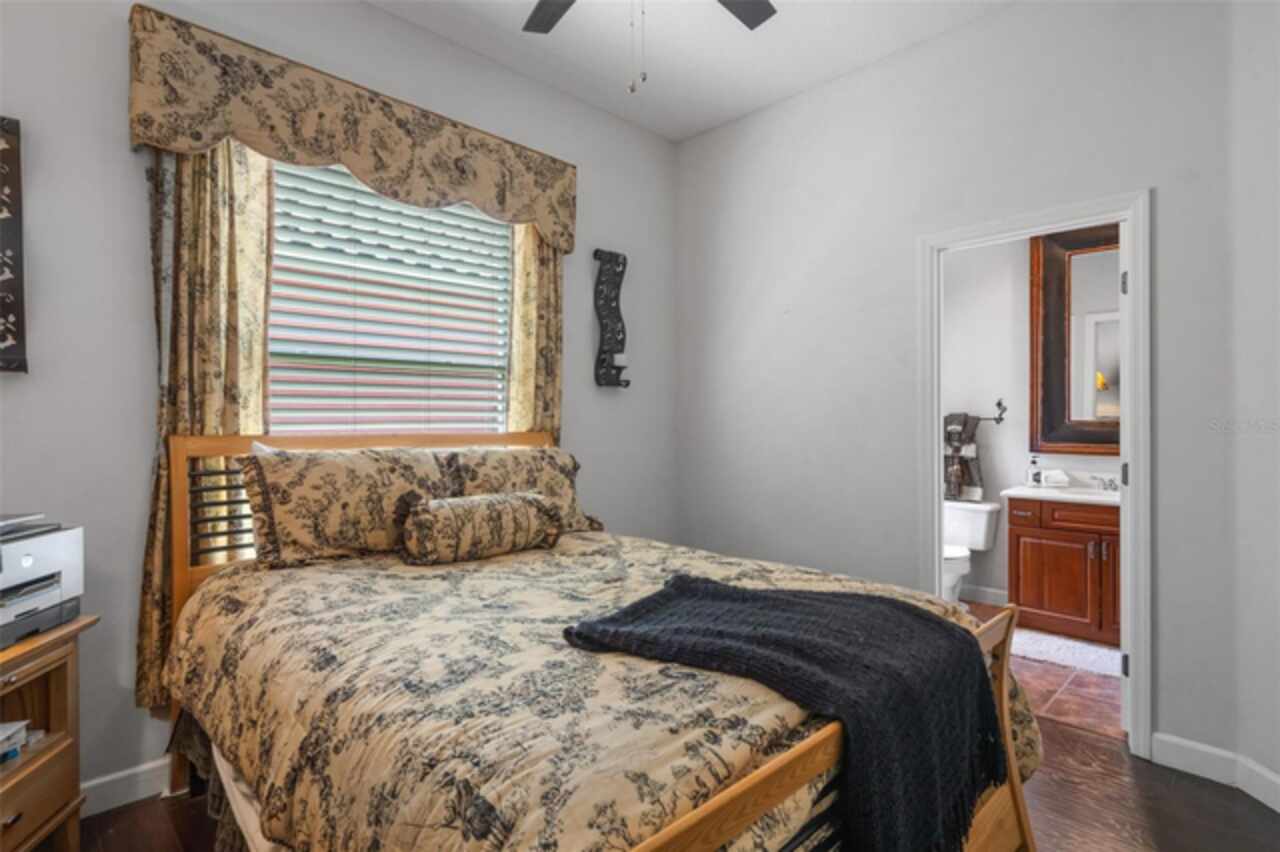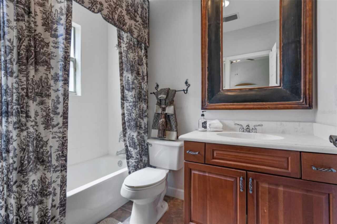 Under contract-accepting backup offers. Tucked inside one of Windermere’s most sought-after gated communities, this beautifully landscaped luxury residence combines refined interior touches with tranquil outdoor living. With every bedroom featuring its own private ensuite, this layout offers both comfort and flexibility—whether you need guest space, office space, or room to stretch out. One of the highlights? The expansive 27-foot primary bedroom, offering a rare amount of space and comfort rarely found in similar homes. From the moment you arrive, you’ll notice the classic curb appeal—brick-paved driveway, barrel tile roof, and a lush landscape framing the welcoming entry. Inside, a bright open-concept layout offers seamless flow from the formal dining area to the casual breakfast nook and spacious living room. Custom drapes, ceramic tile flooring in the main areas, and laminate wood floors in the bedrooms give the home a polished, cohesive feel. The kitchen is a true highlight—appointed with granite countertops, stainless steel appliances, a closet pantry, and a breakfast bar ideal for casual dining. A window over the stove brings in natural light, while a nearby laundry room offers added convenience. Pocketing sliding glass doors lead to a screened-in patio that blends indoor comfort with outdoor charm. Beyond the patio, the fully fenced yard is a private retreat featuring lush greenery, a thoughtfully designed brick-paved path and patio, and a tucked-away fountain surrounded by sculpted shrubs. Whether you're sipping morning coffee, hosting guests, or enjoying some quiet time, this backyard is both functional and picturesque. The downstairs primary suite is generously sized and includes a walk-in closet and a well-designed ensuite bathroom featuring double vanities, a large soaking tub, private water closet and a walk-in shower. A second downstairs bedroom also includes a private ensuite—ideal for guests or multi-generational needs. Upstairs, a massive bonus room offers flexibility as a third bedroom, media room, or office—with its own full bathroom and three closets for ample storage. The home also includes a single-car garage and a separate two-car garage, allowing for multiple vehicles or additional storage. Just a short stroll from your front door, you’ll find the Belmere clubhouse—complete with an events space, a fitness center, tennis courts, basketball court, community pool, and playground. Belmere Village is known for its serene lakes, scenic walking paths, and strong sense of community—all behind secure gated access. Windermere is prized for its peaceful charm and proximity to it all. Belmere offers quick access to major highways, top-rated schools, and world-renowned attractions like Walt Disney World—just 20 minutes away. Local shopping and dining are just around the corner, and the nearby Winter Garden Village and Dr. Phillips areas provide even more options. Zoned for high-performing public schools and near elite private options like Windermere Prep, this location blends convenience with prestige. Additional notable features: 6-year-old A/C, decorative built-ins and soaring ceilings. If you're seeking an elegant home in a premier community with generous space, timeless finishes, and convenient access to the best of Central Florida—this is it.