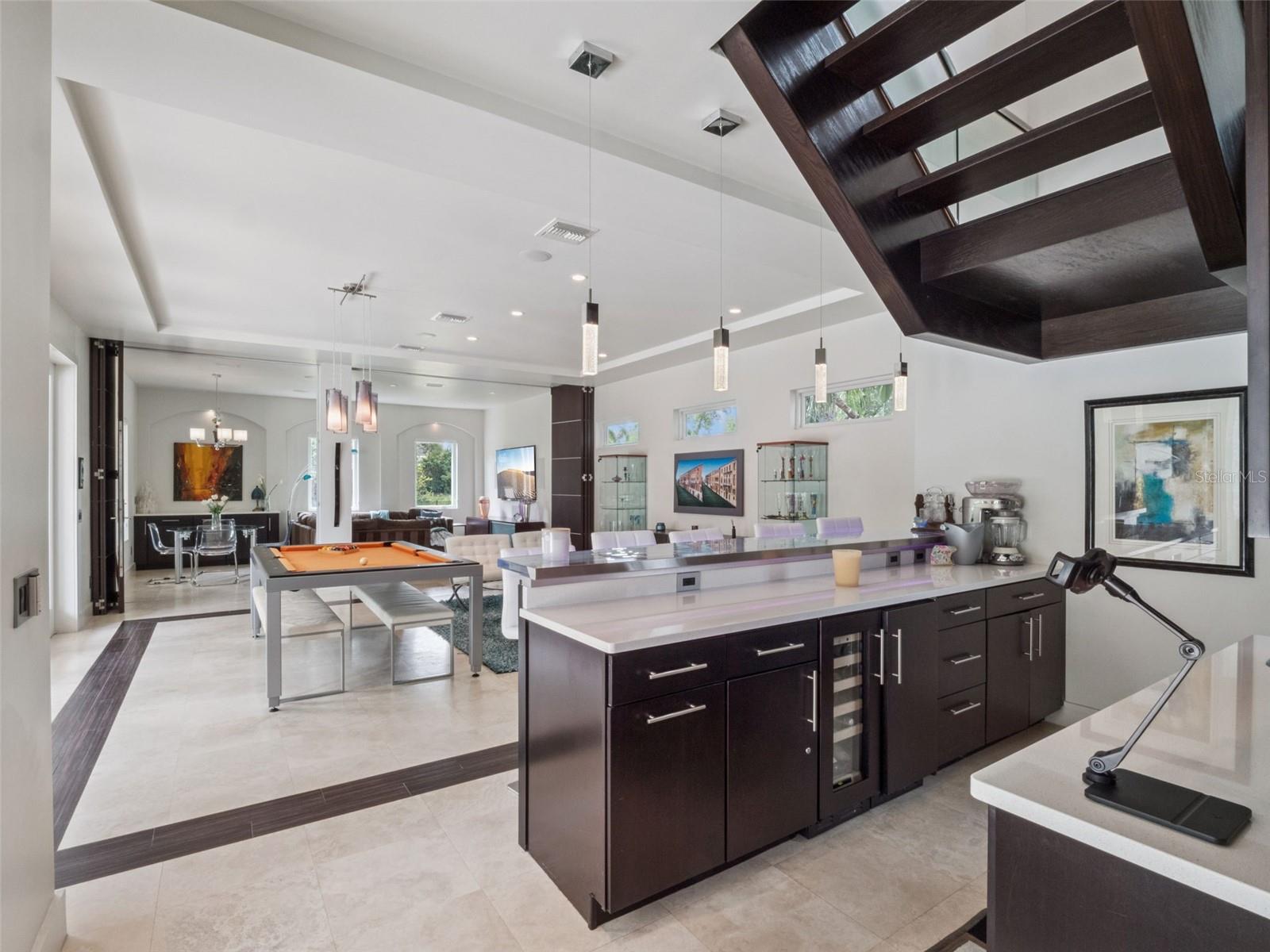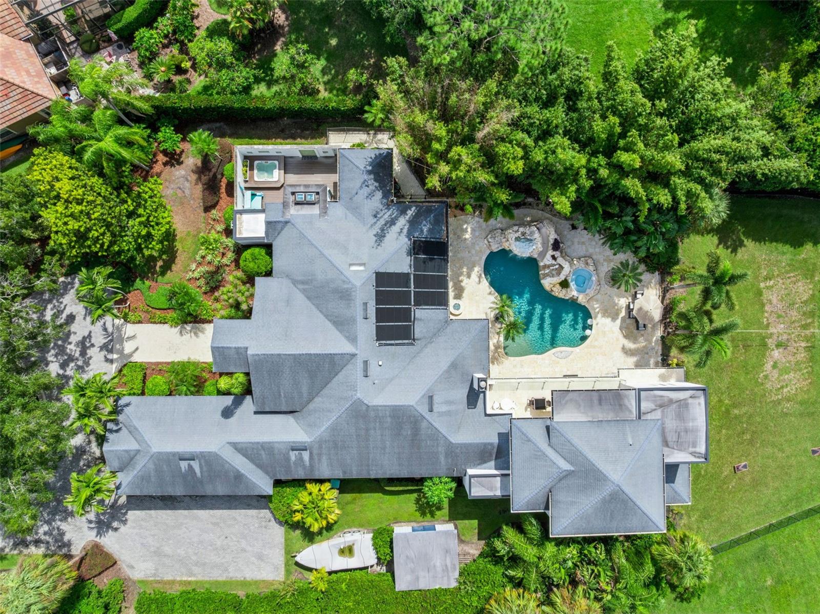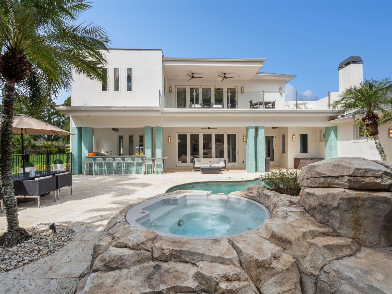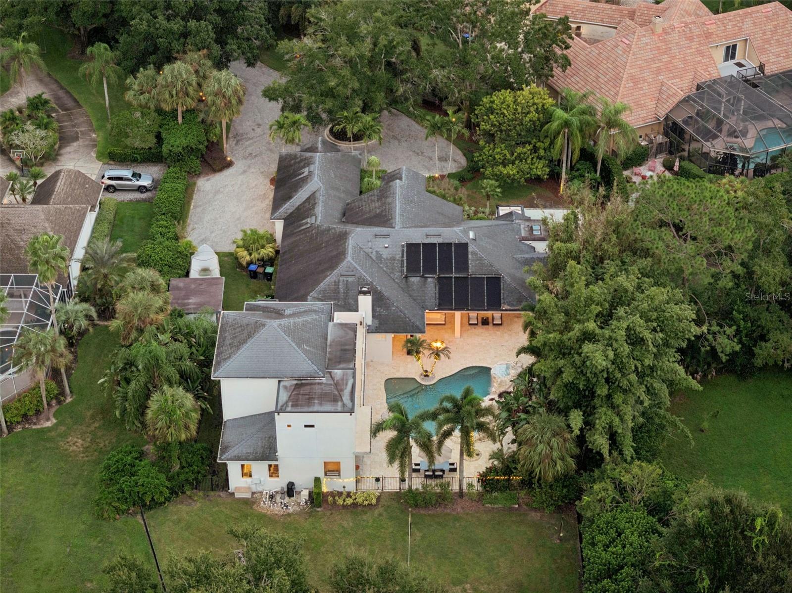 Private Resort Luxury with Butler Chain Access in Windermere Downs Set within one of Windermere’s most sought-after lakefront communities, this extraordinary residence offers exclusive access to the Butler Chain of Lakes. Situated on over an acre, the estate blends handcrafted design, advanced technology, and magazine-featured architecture to deliver a lifestyle of rare sophistication and privacy. The primary bathroom—honored as Bathroom of the Year by K+BB Design + Innovation + Lifestyle Magazine—showcases exceptional craftsmanship. This spa retreat features dual rain showers, a freestanding stone soaking tub, and a secluded outdoor spa area with sauna, and outdoor shower. Dual walk-in closets—hers exceptionally spacious and beautifully finished—provide abundant storage and elegant custom detailing. The resort-style pool and grotto with waterfall, slide, and artisan stonework—crafted by the same designer who created the rock formations at Disney’s Animal Kingdom—anchor the outdoor oasis. Featured in LaPalme Magazine, the pool area embodies resort luxury with natural coquina tile that stays cool underfoot and complements lush tropical landscaping. Multiple entertaining spaces surround the pool, including a summer kitchen, fire pit, outdoor bar, and covered terraces with Mist and More mosquito misters for year-round comfort. A Pentair automation system allows control of heating, lighting, and water features directly from your phone or iPad. Inside, Control4 Home Automation orchestrates lighting, music, and media throughout. The entertainment wing includes a full bar, game room, and theater with custom sliding partitions for privacy or open flow. The executive office and library offer an inspiring workspace with extensive built-ins, a rolling ladder, and an integrated climate-controlled wine room—ideal for work or entertaining in style. Throughout the home are custom doors, built-ins, and fine craftsmanship. Thoughtful infrastructure includes deep-well irrigation, in-ground propane tanks servicing the fire pit, grill, hot tub, and fireplace, and an oversized main waterline for strong pressure throughout. Community Windermere Downs is a highly regarded lakefront enclave on Lake Down with direct Butler Chain access—a paradise for boating, fishing, and watersports. Residents enjoy a gated beach lot, gazebo dock, and private boat ramp. The neighborhood also features two tennis courts (one lined for pickleball) and landscaped parks with playgrounds and shaded greens beneath majestic oaks. Known for its wide, tree-lined streets and expansive homesites, Windermere Downs offers tranquility, privacy, and timeless appeal—minutes from Isleworth, Bay Hill, and Golden Bear Club golf. Enjoy convenient access to dining, shopping, and entertainment in Windermere, Dr. Phillips, and Winter Garden Village, plus Walt Disney World®, Universal Studios®, and SeaWorld®. Served by top-rated public schools and elite private academies, it remains one of Central Florida’s most coveted addresses. A masterpiece of design, technology, and lifestyle, this estate captures the essence of Florida indoor-outdoor living—luxurious, private, and unforgettable.