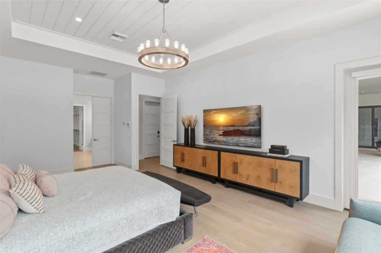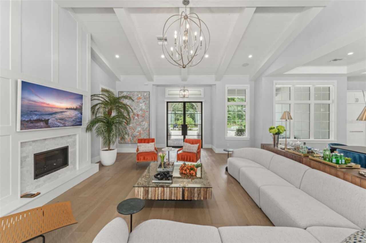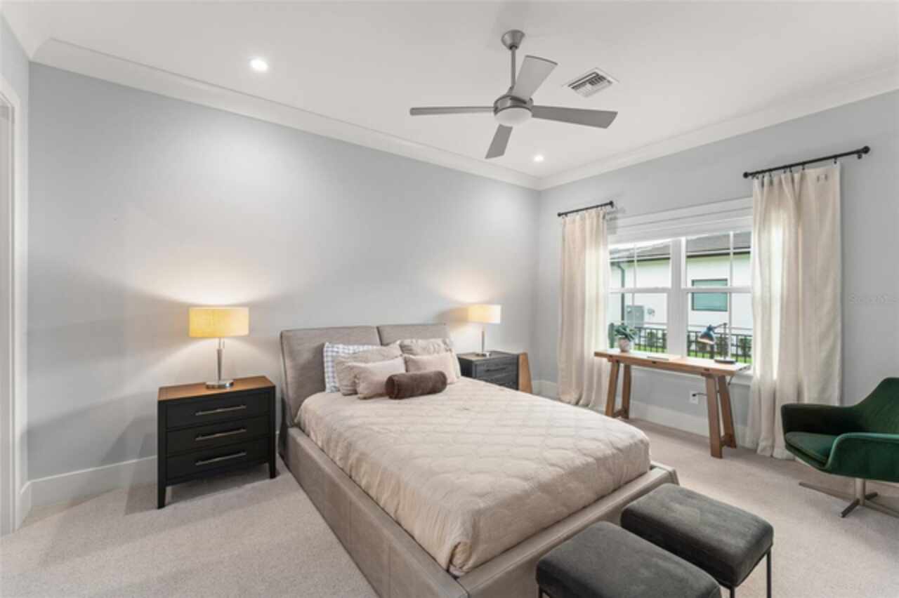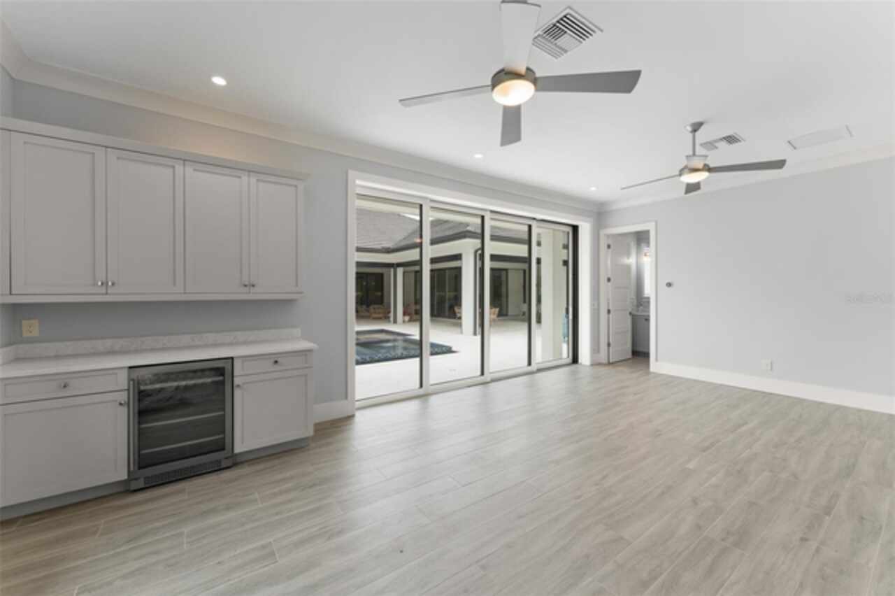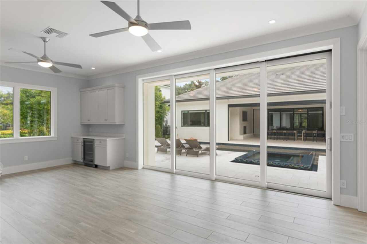 Exquisitely appointed and elegantly packaged former model home, showcasing the pinnacle of perfection, from luxury home builder Element Homes. This masterpiece stands supreme for its high-quality fit and finish and a highly desirable floorplan – featuring a great room combination of family room, dining room, and kitchen – masterfully crafted to exhibit transitional style and function. A wall of glass sliders open to reveal a mammoth covered patio with roller screens, outdoor fireplace, saltwater pool, vanishing edge heated spa, summer kitchen, and detached Casita with bedroom, bath, and kitchenette. With 5 ensuite bedrooms and 4 and a half baths, plus a separate office, and media room with beverage center, rest assured there is room for all. Detailed ceiling beams add a touch of chic elegance. Other highlights include: engineered hard wood floors throughout, vinyl double pane windows and doors, decorative glass entry doors, tankless hot water heaters, spray foam insulation, over-sized circular paver driveway, insulated garage doors and epoxy finished garage floor, rooms individually Nest zoned, ship lap detailed ceilings, quartz countertops, cabinet grade pantry door leading to hide-a-way oversized built-in closet, refrigerator and dishwasher, Thermador appliances, custom shelving and drawers in all closets, great room gas fireplace, rain shower in master shower with beautiful glass enclosure. The Crestron smart wired home allows for Lutron lighting and sound throughout the home. Home sits in a quiet location with just 11 half-acre or larger homesites, walking distance to top-rated Thornebrooke Elementary, and steps away from the border of Windermere. Come experience why this home was the builder’s showcase address.