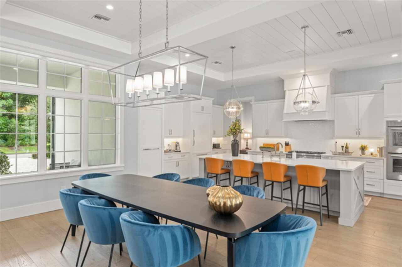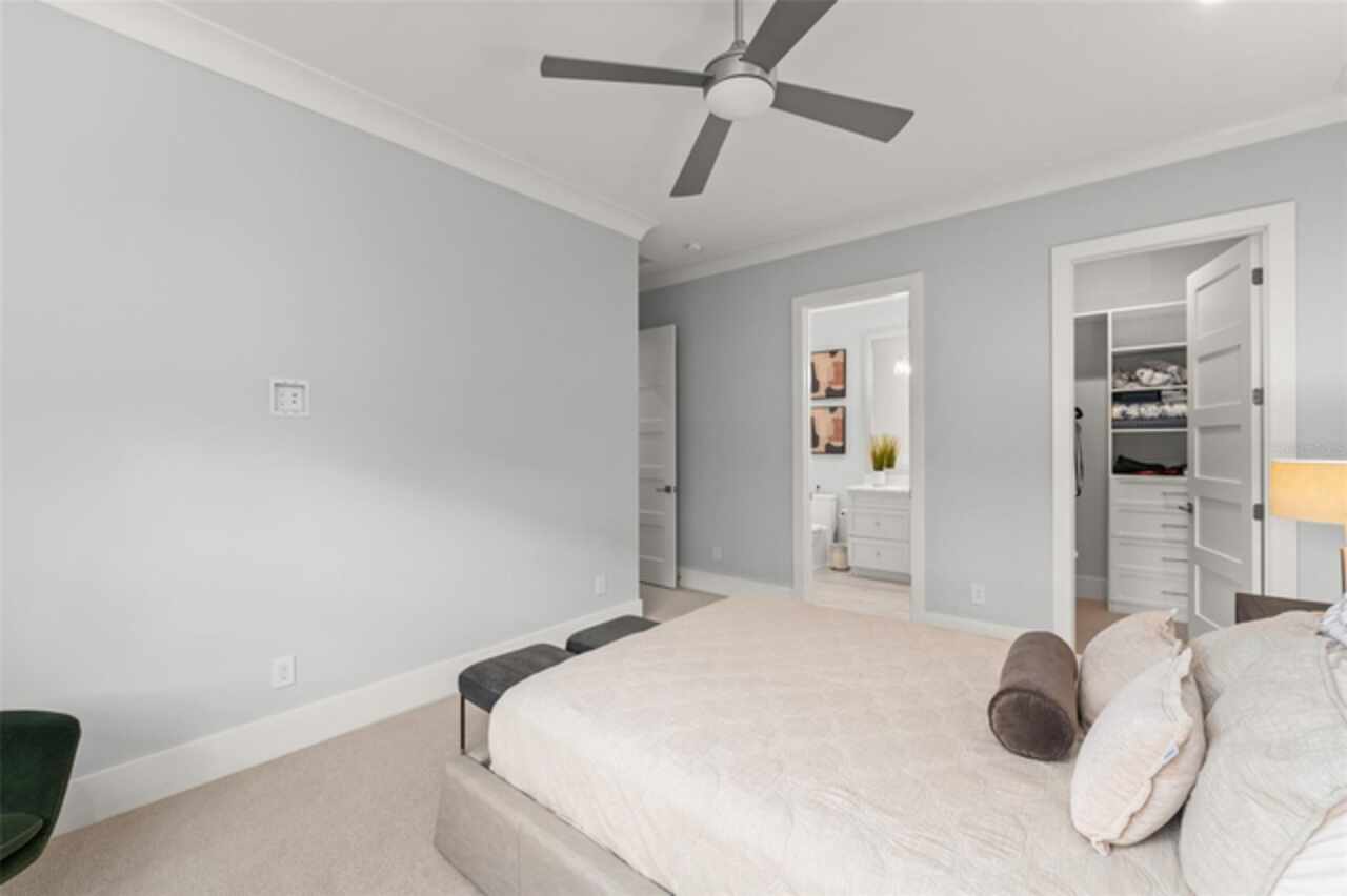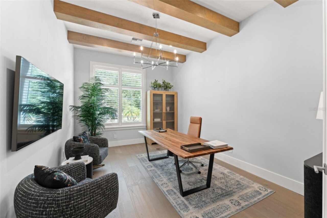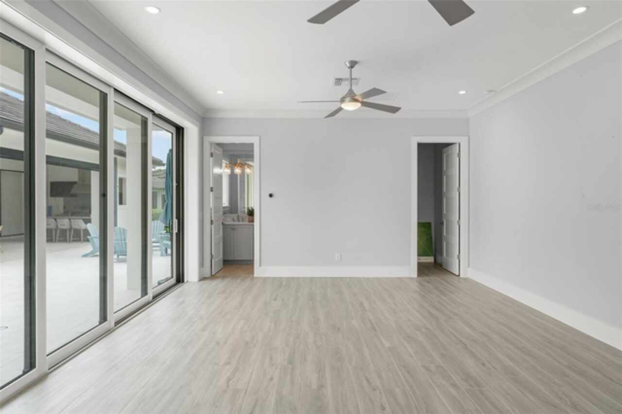 Exquisitely appointed and elegantly packaged former model home, showcasing the pinnacle of perfection, from luxury home builder Element Homes. This masterpiece stands supreme for its high-quality fit and finish and a highly desirable floorplan – featuring a great room combination of family room, dining room, and kitchen – masterfully crafted to exhibit transitional style and function. A wall of glass sliders open to reveal a mammoth covered patio with roller screens, outdoor fireplace, saltwater pool, vanishing edge heated spa, summer kitchen, and detached Casita with bedroom, bath, and kitchenette. With 5 ensuite bedrooms and 4 and a half baths, plus a separate office, and media room with beverage center, rest assured there is room for all. Detailed ceiling beams add a touch of chic elegance. Other highlights include: engineered hard wood floors throughout, vinyl double pane windows and doors, decorative glass entry doors, tankless hot water heaters, spray foam insulation, over-sized circular paver driveway, insulated garage doors and epoxy finished garage floor, rooms individually Nest zoned, ship lap detailed ceilings, quartz countertops, cabinet grade pantry door leading to hide-a-way oversized built-in closet, refrigerator and dishwasher, Thermador appliances, custom shelving and drawers in all closets, great room gas fireplace, rain shower in master shower with beautiful glass enclosure. The Crestron smart wired home allows for Lutron lighting and sound throughout the home. Home sits in a quiet location with just 11 half-acre or larger homesites, walking distance to top-rated Thornebrooke Elementary, and steps away from the border of Windermere. Come experience why this home was the builder’s showcase address.