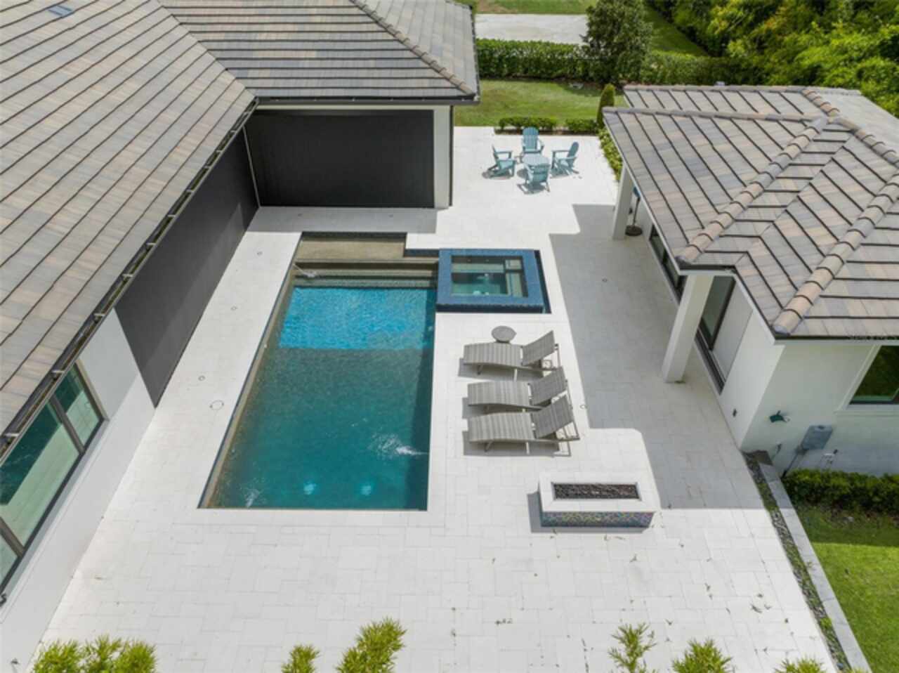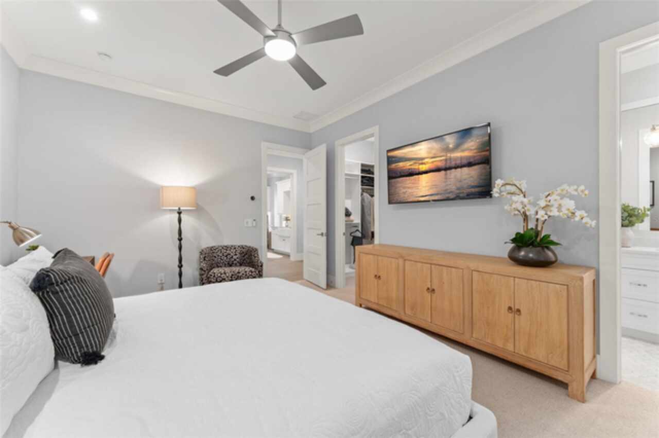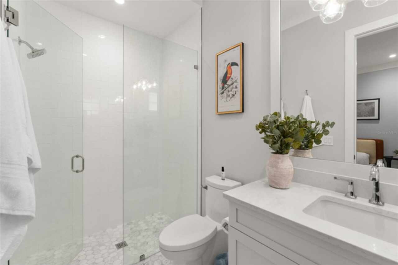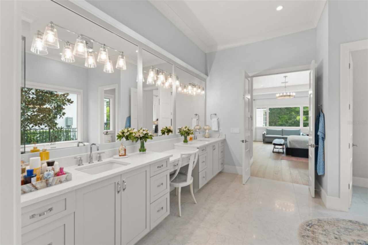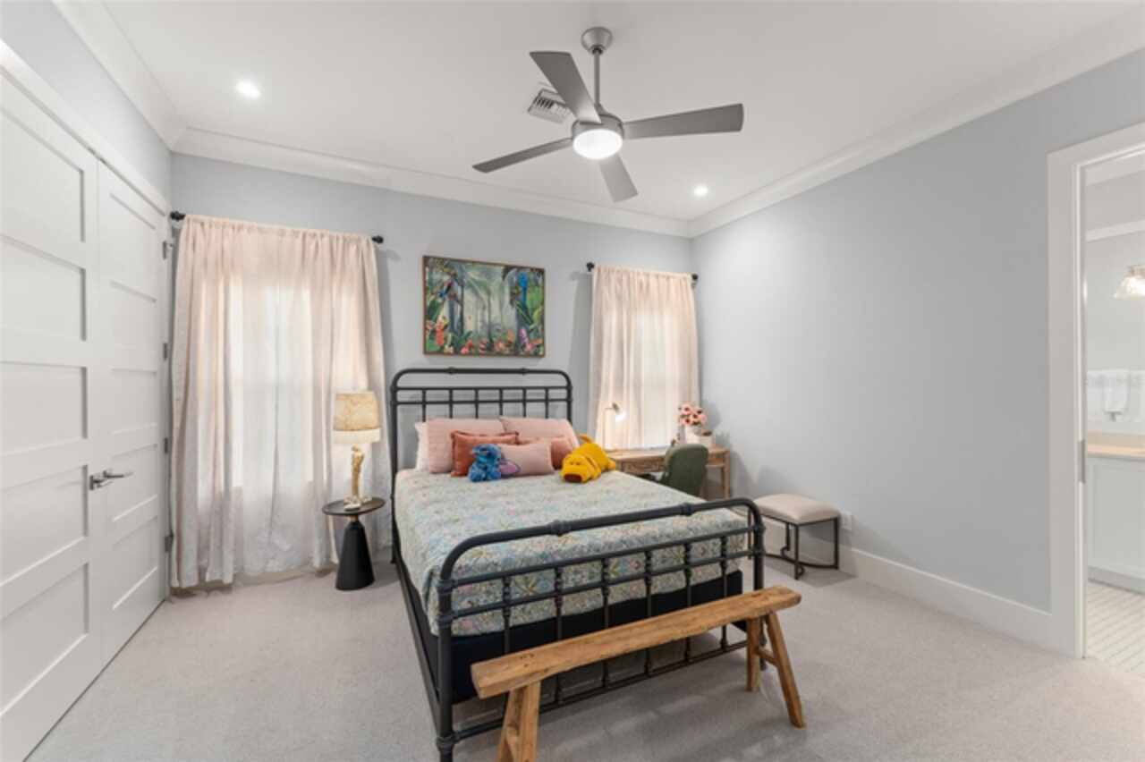 Exquisitely appointed and elegantly packaged former model home, showcasing the pinnacle of perfection, from luxury home builder Element Homes. This masterpiece stands supreme for its high-quality fit and finish and a highly desirable floorplan – featuring a great room combination of family room, dining room, and kitchen – masterfully crafted to exhibit transitional style and function. A wall of glass sliders open to reveal a mammoth covered patio with roller screens, outdoor fireplace, saltwater pool, vanishing edge heated spa, summer kitchen, and detached Casita with bedroom, bath, and kitchenette. With 5 ensuite bedrooms and 4 and a half baths, plus a separate office, and media room with beverage center, rest assured there is room for all. Detailed ceiling beams add a touch of chic elegance. Other highlights include: engineered hard wood floors throughout, vinyl double pane windows and doors, decorative glass entry doors, tankless hot water heaters, spray foam insulation, over-sized circular paver driveway, insulated garage doors and epoxy finished garage floor, rooms individually Nest zoned, ship lap detailed ceilings, quartz countertops, cabinet grade pantry door leading to hide-a-way oversized built-in closet, refrigerator and dishwasher, Thermador appliances, custom shelving and drawers in all closets, great room gas fireplace, rain shower in master shower with beautiful glass enclosure. The Crestron smart wired home allows for Lutron lighting and sound throughout the home. Home sits in a quiet location with just 11 half-acre or larger homesites, walking distance to top-rated Thornebrooke Elementary, and steps away from the border of Windermere. Come experience why this home was the builder’s showcase address.