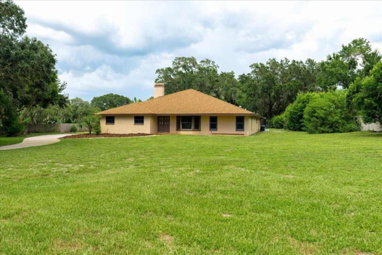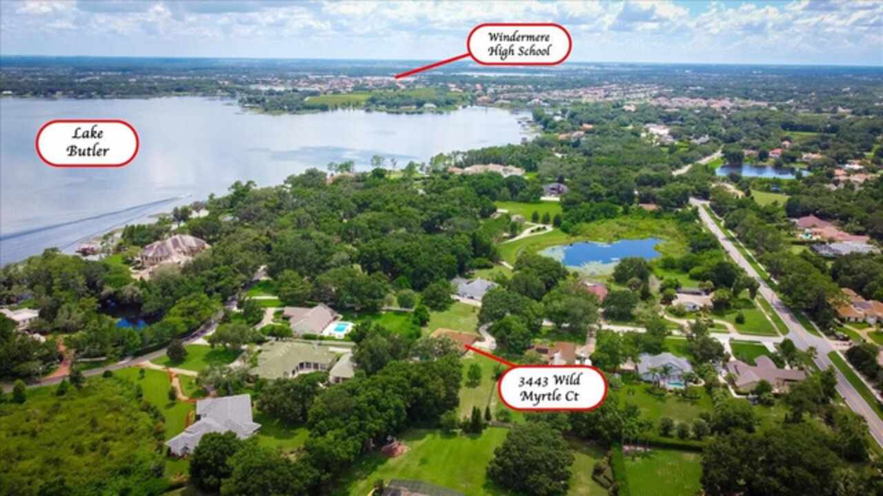 Welcome to 3443 Wild Myrtle Court, a beautifully renovated executive home nestled on a serene 1.2-acre cul-de-sac lot in the esteemed Lake Butler Estates of Windermere, Florida. This expansive 5-bedroom, 3-bathroom residence offers 2, 918 square feet of thoughtfully designed living space, combining modern updates with timeless charm. The home boasts a formal living room featuring a whitewashed brick wood-burning fireplace, a generous 26' x 23' family room, and a dedicated office space, providing ample room for relaxation and productivity. Recent renovations include updated bathrooms, new tiled floors, fresh interior paint, new ceiling fans, and LED lighting. The exterior received a new roof and paint in 2018, ensuring both aesthetic appeal and structural integrity. Enjoy the Florida lifestyle with a newly resurfaced and tiled screened-in pool, perfect for entertaining or unwinding in your private backyard retreat. Situated near Windermere Elementary School and the historic downtown area, this home offers convenient access to top-rated schools, shopping, dining, and entertainment options. Experience the perfect blend of luxury and comfort in this exceptional Windermere residence. Don't miss the opportunity to make this your dream home.