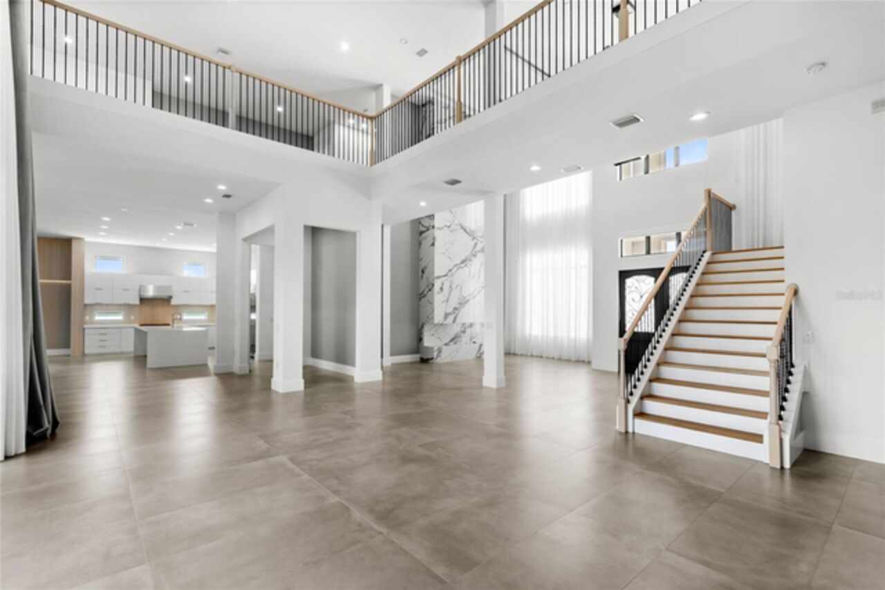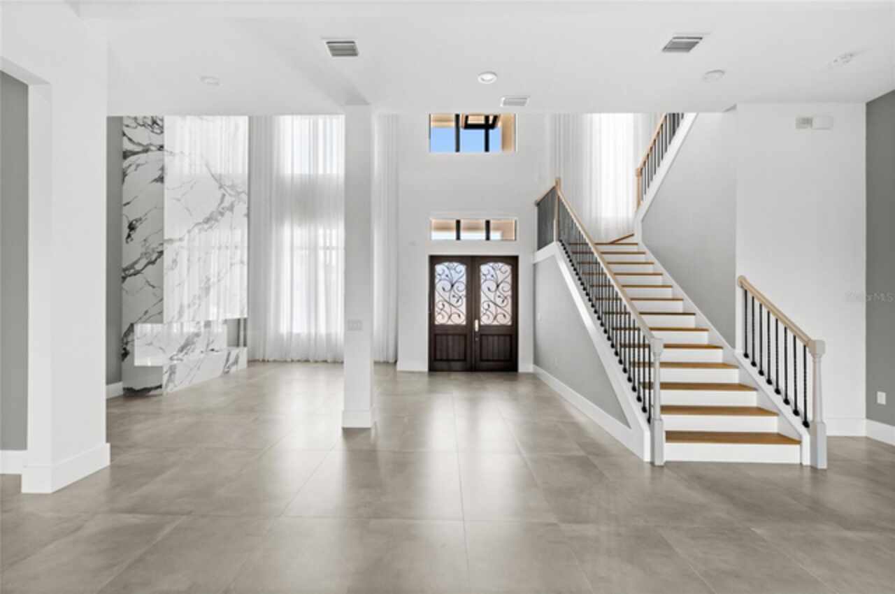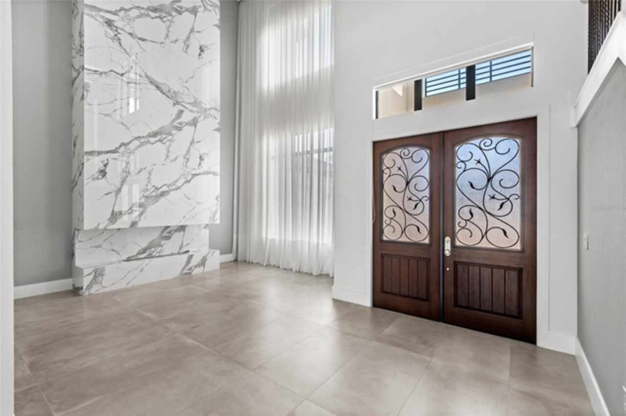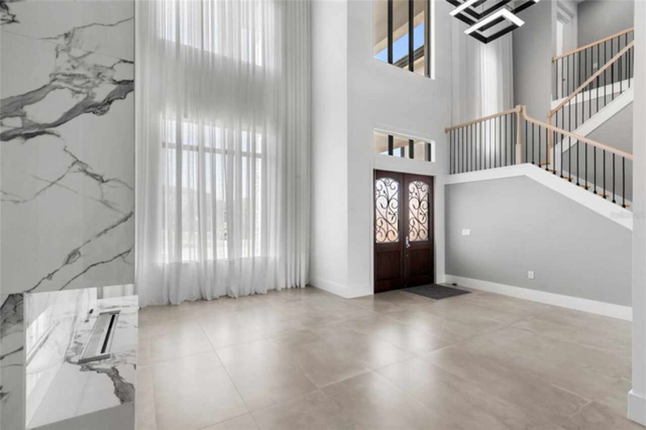 $75, 000 credit towards pool with acceptable offer! This exceptional 2019-built home has been transformed with nearly a full interior remodel, making it one of the most distinctive properties in the sought-after Windermere community of Casabella. As the largest model in the neighborhood, this home offers a rare blend of space, style, and function. Inside, thoughtful upgrades abound. A dramatic 24-foot fireplace with imported porcelain slabs is a stunning centerpiece in the main living area. The main level features oversized imported porcelain tile, upgraded baseboards, and enhanced door designs that elevate the overall aesthetic. Multiple recessed ceilings with integrated LED lighting and modern spotlights create a warm, inviting ambiance throughout. Curtains with built-in lighting add a subtle, sophisticated touch. The first-floor primary retreat offers double doors, a backlit tray ceiling, abundant closet space, a raised soaker tub, dual sinks, and clean linen finishes. The kitchen stands out with a sleek, modern design made entirely of imported cabinetry, paired with top-of-the-line appliances—including a Sub-Zero fridge, Wolf double oven, gas stove, microwave, and hood, plus a JennAir dishwasher. Quartz countertops flow through the kitchen and all bathrooms, which are finished with imported porcelain tile, linear drains, and LED-lit niches. Upstairs, you'll find a blend of wood accents that bring warmth to the bedrooms, loft, and theatre. The home theater is also prewired for LED lighting and motorized seating. Outside, the large covered lanai is prepped for a summer kitchen, paired with plenty of yard space to create your own private escape. Modern, refined, and built to impress—this is Windermere living at its finest. Call today to set up a tour!