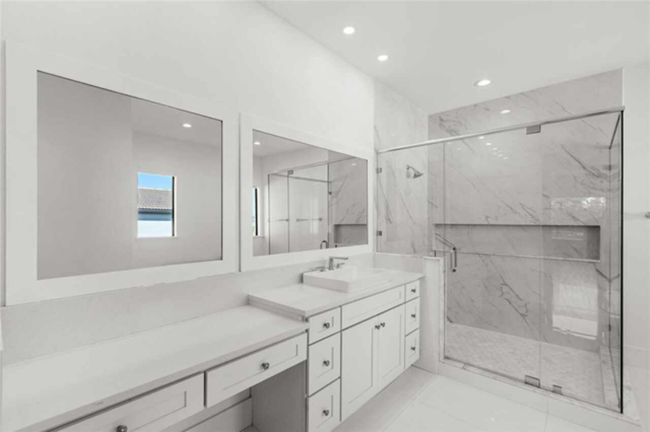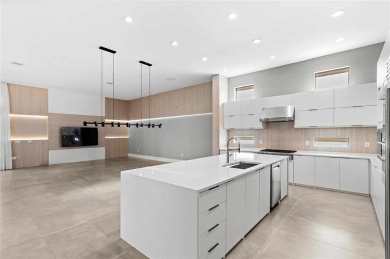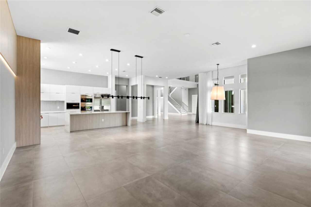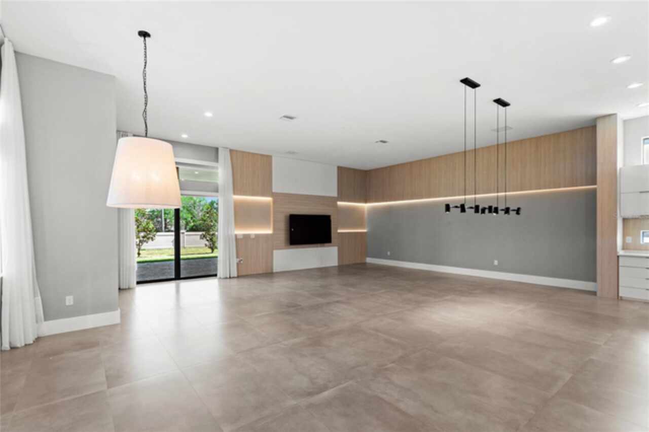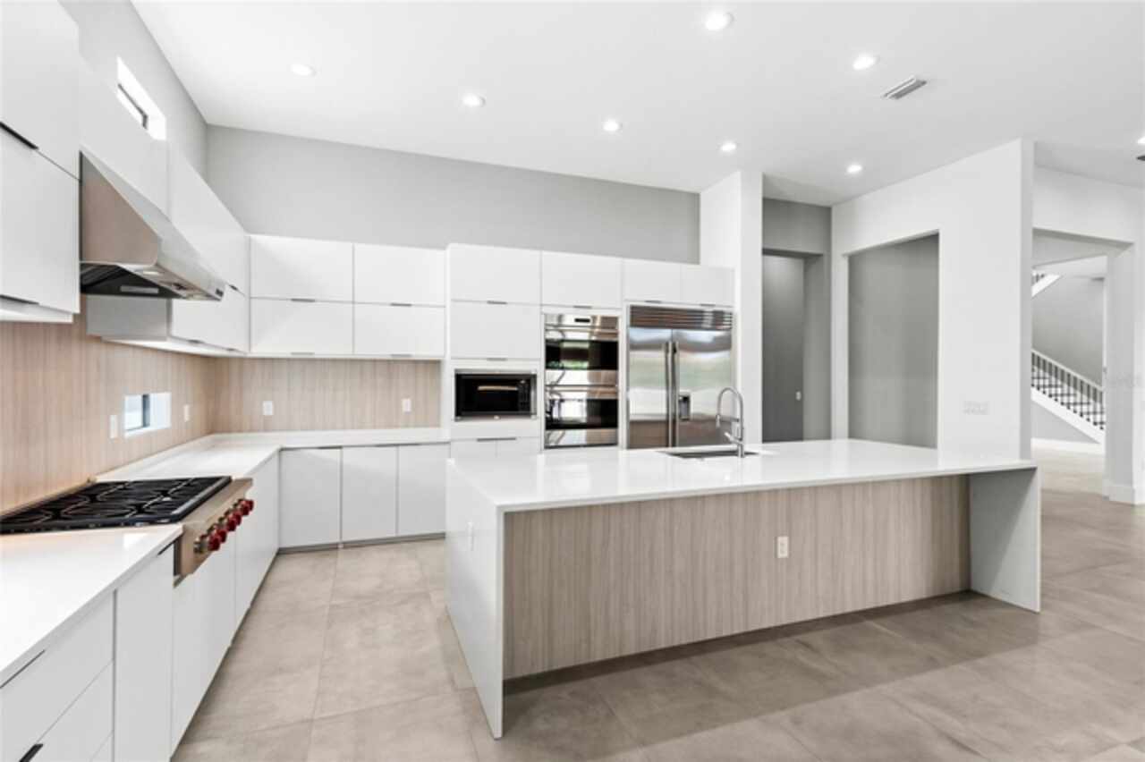$75, 000 credit towards pool with acceptable offer! This exceptional 2019-built home has been transformed with nearly a full interior remodel, making it one of the most distinctive properties in the sought-after Windermere community of Casabella. As the largest model in the neighborhood, this home offers a rare blend of space, style, and function. Inside, thoughtful upgrades abound. A dramatic 24-foot fireplace with imported porcelain slabs is a stunning centerpiece in the main living area. The main level features oversized imported porcelain tile, upgraded baseboards, and enhanced door designs that elevate the overall aesthetic. Multiple recessed ceilings with integrated LED lighting and modern spotlights create a warm, inviting ambiance throughout. Curtains with built-in lighting add a subtle, sophisticated touch. The first-floor primary retreat offers double doors, a backlit tray ceiling, abundant closet space, a raised soaker tub, dual sinks, and clean linen finishes. The kitchen stands out with a sleek, modern design made entirely of imported cabinetry, paired with top-of-the-line appliances—including a Sub-Zero fridge, Wolf double oven, gas stove, microwave, and hood, plus a JennAir dishwasher. Quartz countertops flow through the kitchen and all bathrooms, which are finished with imported porcelain tile, linear drains, and LED-lit niches. Upstairs, you'll find a blend of wood accents that bring warmth to the bedrooms, loft, and theatre. The home theater is also prewired for LED lighting and motorized seating. Outside, the large covered lanai is prepped for a summer kitchen, paired with plenty of yard space to create your own private escape. Modern, refined, and built to impress—this is Windermere living at its finest. Call today to set up a tour!