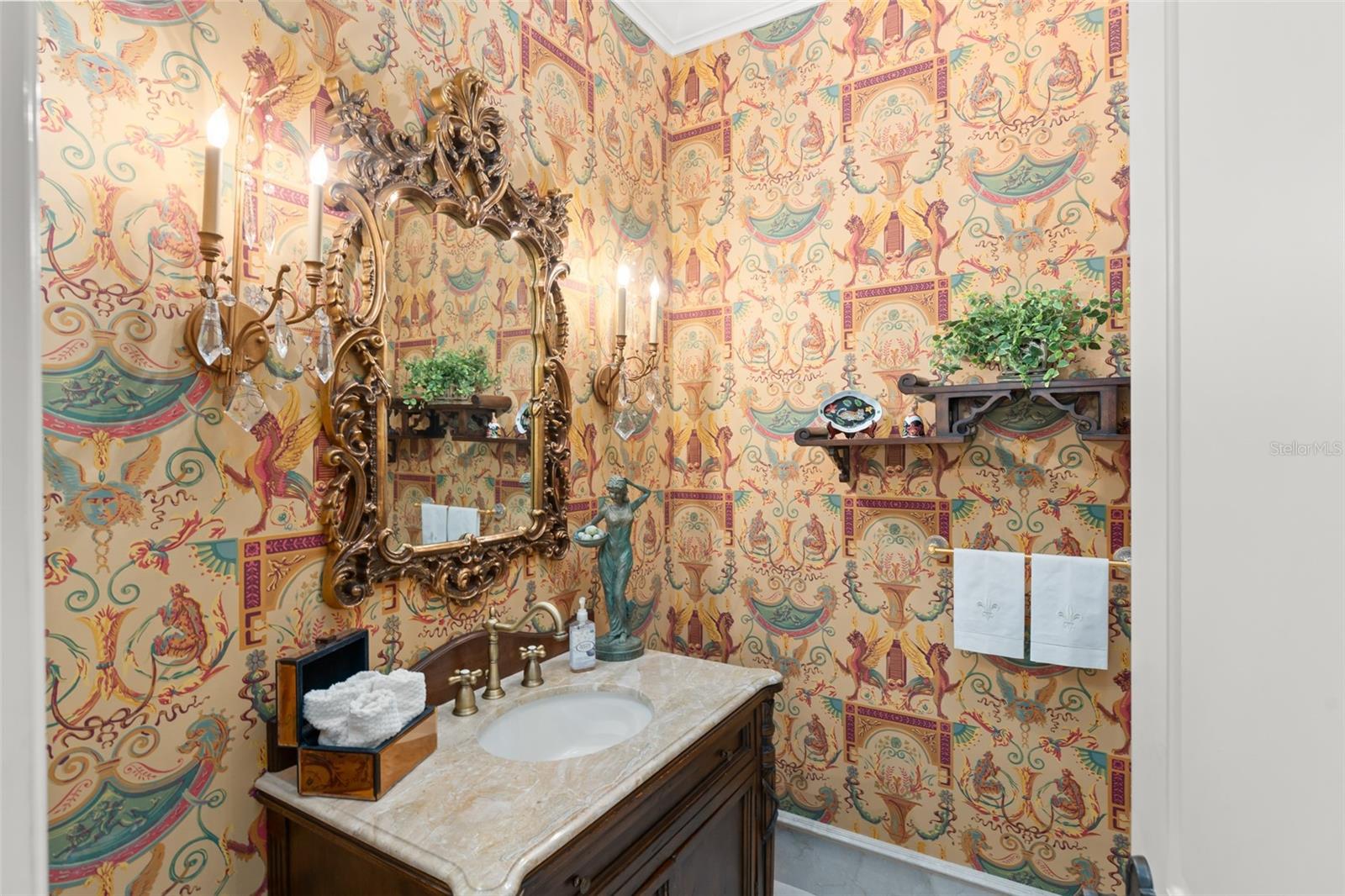 Nestled within the exclusive Gardens of Isleworth enclave within Isleworth Golf & Country Club, this exquisite residence exemplifies refined Florida living. Crafted by Pellegrini Homes with professionally designed interiors, the single-story home seamlessly blends architectural sophistication with inviting comfort. A brick paver motor court introduces the residence, where a gracious custom arched French entry door sets the tone for the elegance within. The formal foyer makes a lasting impression with its soaring octagonal ceiling accented in tongue-and-groove woodwork. Inside, the formal living room—currently styled as a music salon—showcases a faux-painted garden ceiling and a custom brick wine nook, adding artistic charm and warmth. Throughout the home, travertine floors and curated details complement a spacious open plan, lending to the home's exceptional design and craftsmanship. Framed by reclaimed rustic wood beams and sliding glass doors, the family room flows naturally to the courtyard pool, creating effortless indoor-outdoor living. The center-island kitchen serves as a culinary showcase with custom cabinetry and premium appliances by Viking, Sub-Zero, and GE Monogram, while the adjoining casual dining area offers views of the pool and lush surroundings. The thoughtfully designed layout includes three bedrooms, one of which is a private cabana suite opening directly to the pool—ideal for guests or quiet retreat. The primary suite features a large bedroom, dual closets and a beautifully finished bath. Beyond the courtyard, a patio with pergola overlooks serene pond views, providing yet another setting for relaxation and entertaining. Centered around its picturesque courtyard pool with fireplace, summer kitchen, and hot tub, this remarkable residence offers both privacy and elegance in perfect balance—an exceptional opportunity to live beautifully within one of Isleworth's most coveted enclaves.