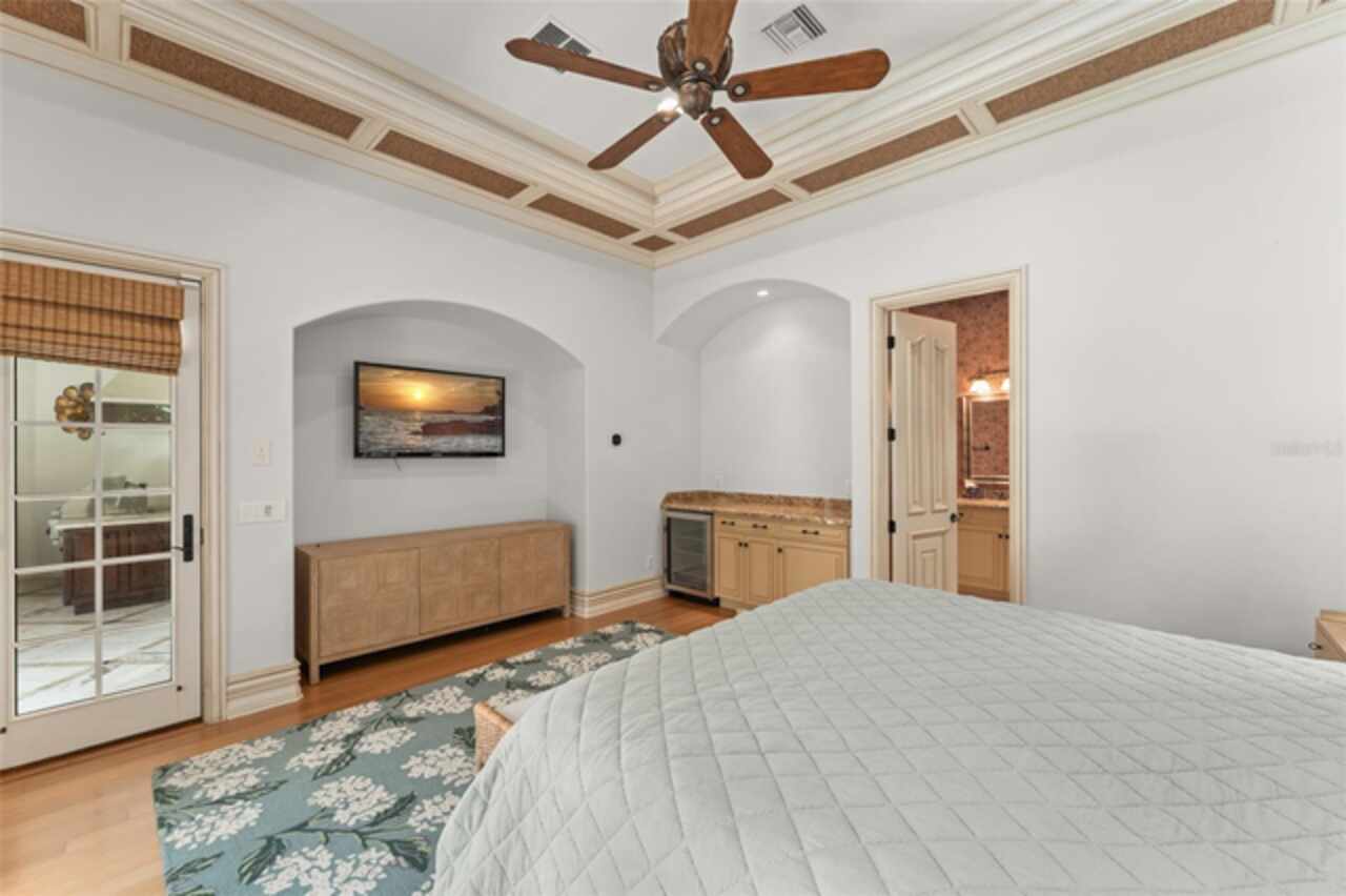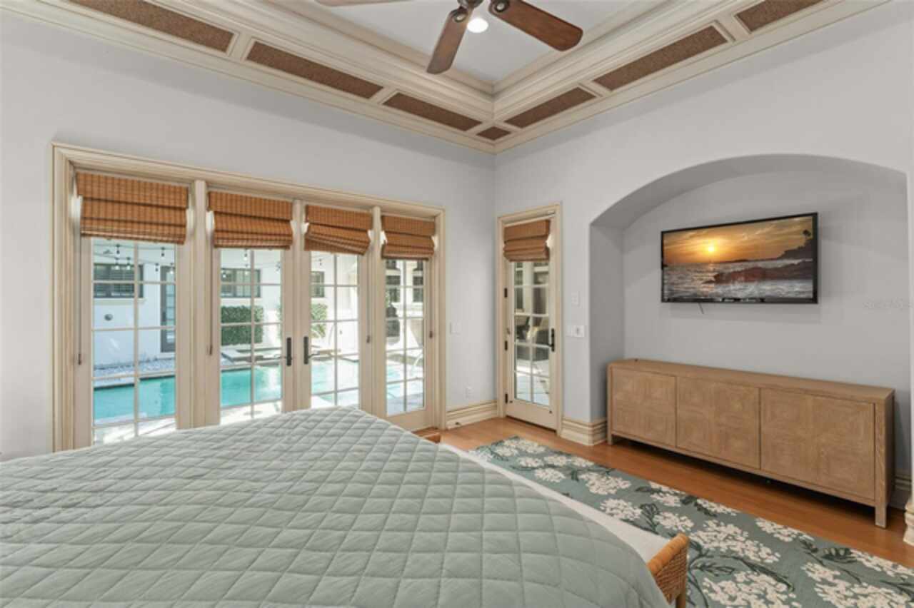 Luxury villa living within the exclusive Gardens of Isleworth, part of the Isleworth Golf & Country Club. This exceptional residence boasts a captivating courtyard floor plan that provides breathtaking views from every corner of the home. The rear of the residence presents serene views of a picturesque pond and the tranquil Isleworth Gardens, while interior windows reveal a private courtyard featuring a glistening pool adorned with a cascading waterfall from the pergola. An expansive covered patio houses a summer kitchen, pool bath, and attached third bedroom accessed only from the courtyard. The heart of this home is a chef's dream, with a gourmet kitchen featuring top-of-the-line Wolf appliances, striking custom cabinetry, and an open design that seamlessly connects to the family room and dining areas. The grand primary suite offers a private sitting area overlooking the peaceful pond, double walk-in closets, and a spa-like bath complete with a Jacuzzi tub and an expansive walk-in shower. The third garage was converted into a gym with air conditioning and can be converted back to additional garage space. Garden villas offer carefree living with exterior grounds maintenance included in the separate monthly fees. The 600-acre Isleworth community, surrounding the Butler Chain of Lakes, is a residential enclave that sets the standard of excellence for Central Florida living. Isleworth Golf & Country Club, which is located within the community, is recognized as one of the Top 100 Platinum Clubs of the World offering separate membership opportunities that provide access to golf, tennis, fitness, Clubhouse dining and social events, swimming in the resort-style pool and sundeck, dock, and an abundance of activities. Enjoy a lifestyle defined by casual elegance in a setting that sets the standard for luxury living.