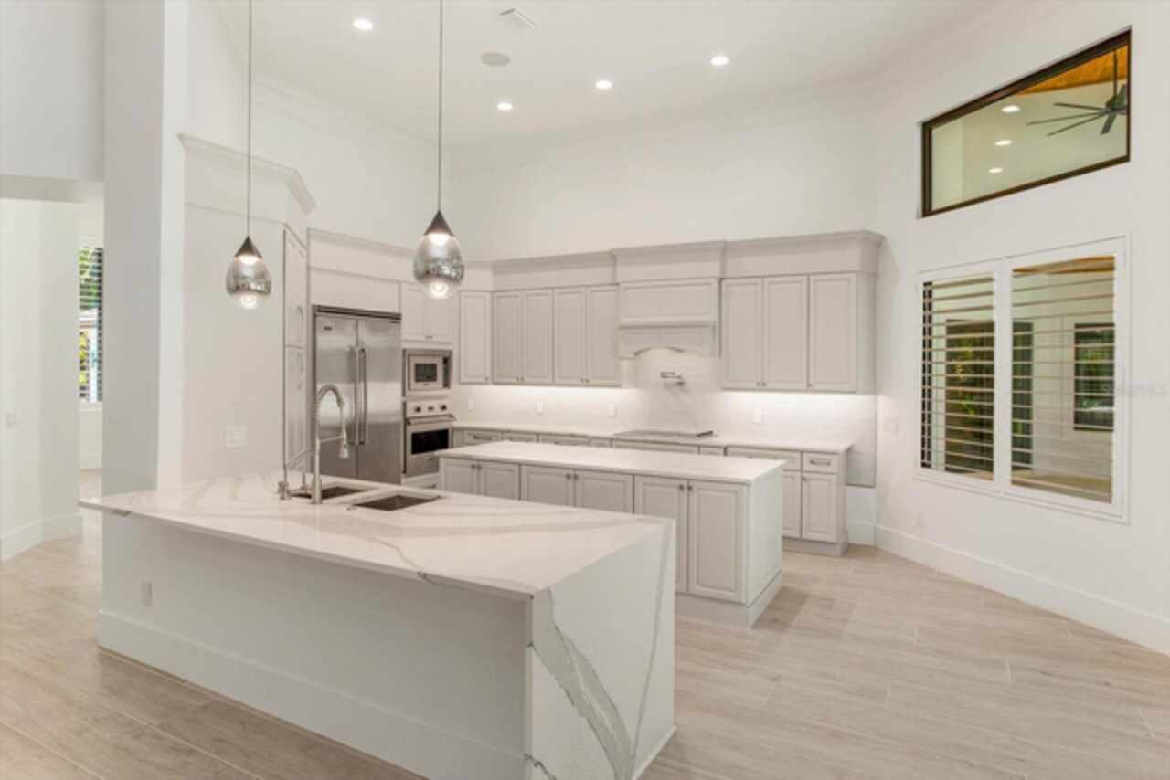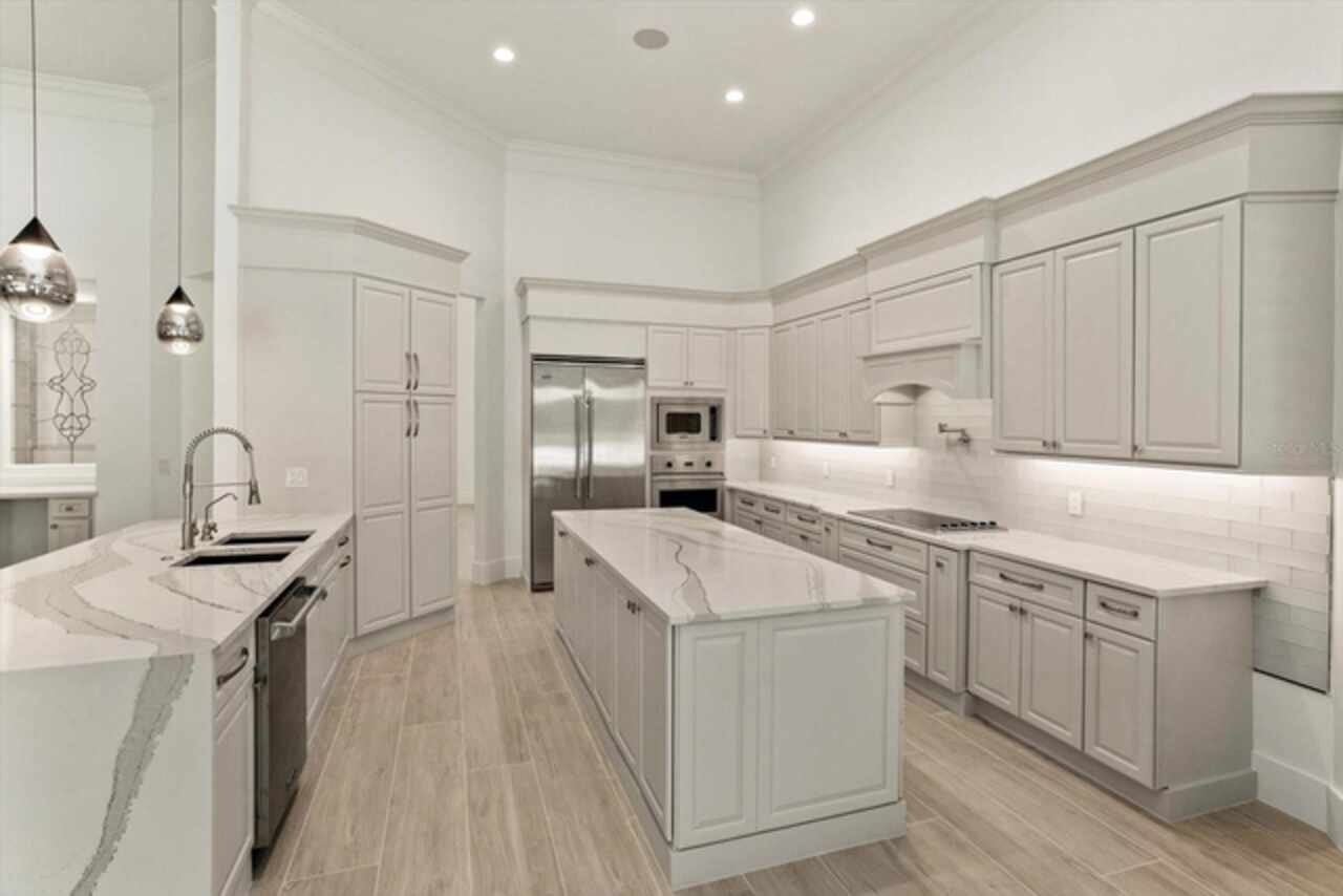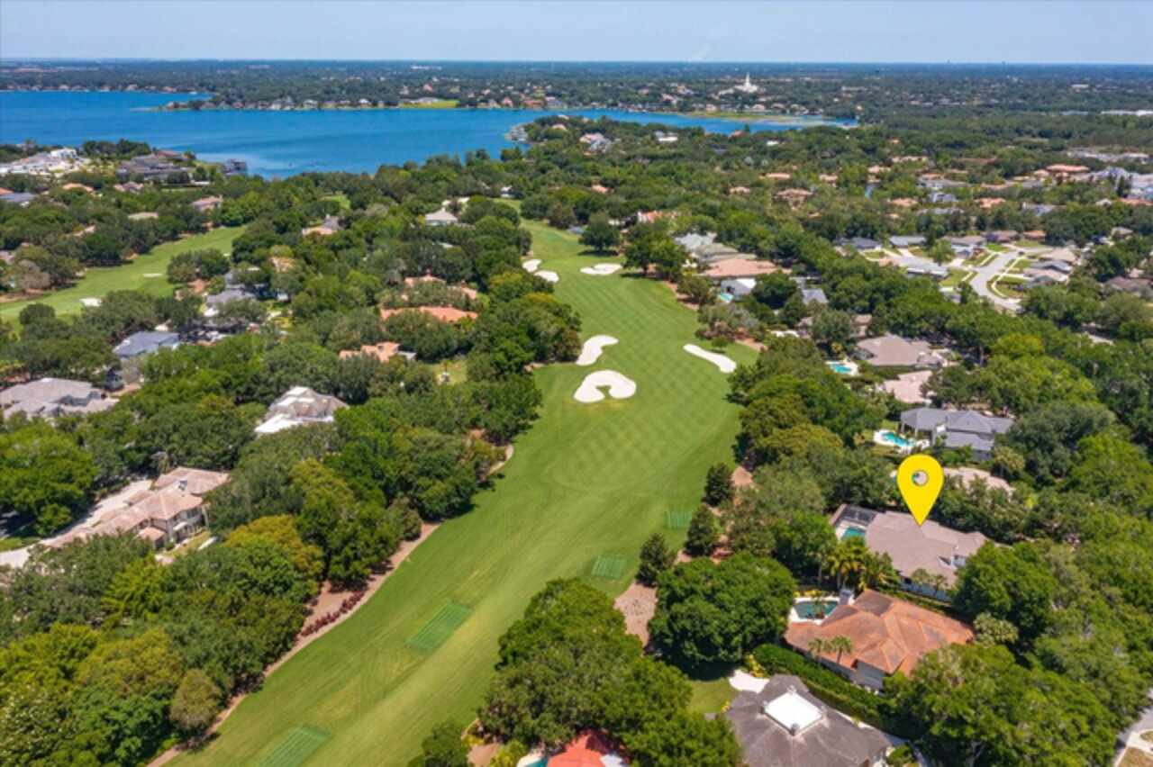 One or more photo(s) has been virtually staged. Nestled in the exclusive and coveted gated community of Isleworth, this fully remodeled, turn-key golf estate is positioned along Isleworth’s famed championship golf course. This remarkable golf-front property reveals a stylish and modern retreat you are sure to fall in love with. Spanning more than 6, 600 square feet of indoor living and outdoor covered space, the estate blends warmth, elegance and comfort with contemporary fixtures and chic new lighting set against beautiful outdoor living and views of Isleworth’s 4th fairway. No space has been overlooked, from the ideally located gourmet kitchen to the well appointed laundry room. This home boast generously sized bedrooms designed for various floorplans such as six bedrooms, five bedrooms and an office, or four bedrooms with office and gym. It was purposely designed to allow the owner to pursue whatever lifestyle fits their needs. Accompanying the bedrooms and flex spaces are six full baths and one half bath; each crafted with exquisite attention to detail. The estate kitchen includes contemporary white cabinetry, stainless steel appliances and gorgeous quartz countertops. The kitchen overlooks the sizable family room and casual dining area which offers direct access to the sprawling screened lanai and pool area. A sophisticated master suite awaits, showcasing beautiful porcelain plank floors, walk-in shower, cozy free standing bathtub and a large walk-in closet. Completing the interior, this meticulously maintained home offers up to five additional bedroom suites, a laundry room, half powder bathroom, full pool bathroom and a 4-car garage, providing unparalleled flexibility to accommodate your every need. Venture outside to discover your private sanctuary—a stunning outdoor oasis perfect for hosting lavish events or enjoying tranquil moments surrounded by lush landscaping and sweeping views. The new refreshing saltwater pool and spa have been completely enclosed in a new, one-of-a-kind lanai with new pool deck, allowing for enjoyment of the pool at all times of the year from dawn to dusk. This estate features a four-car garage tailored for the car enthusiast and plenty of driveway space for more parking. Exquisite landscaping surrounds the home, from the brick paver motor court to the fenced backyard with a spectacular golf course view. From the well designed interiors to the manicured exteriors, this estate represents the pinnacle of refined living. Its distinctive lot combines spaciousness, privacy, and stunning vistas to create a one-of-a-kind retreat.