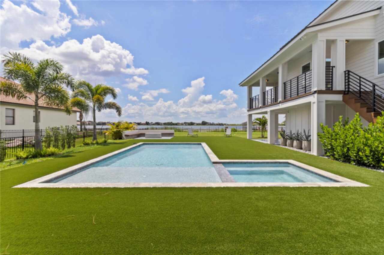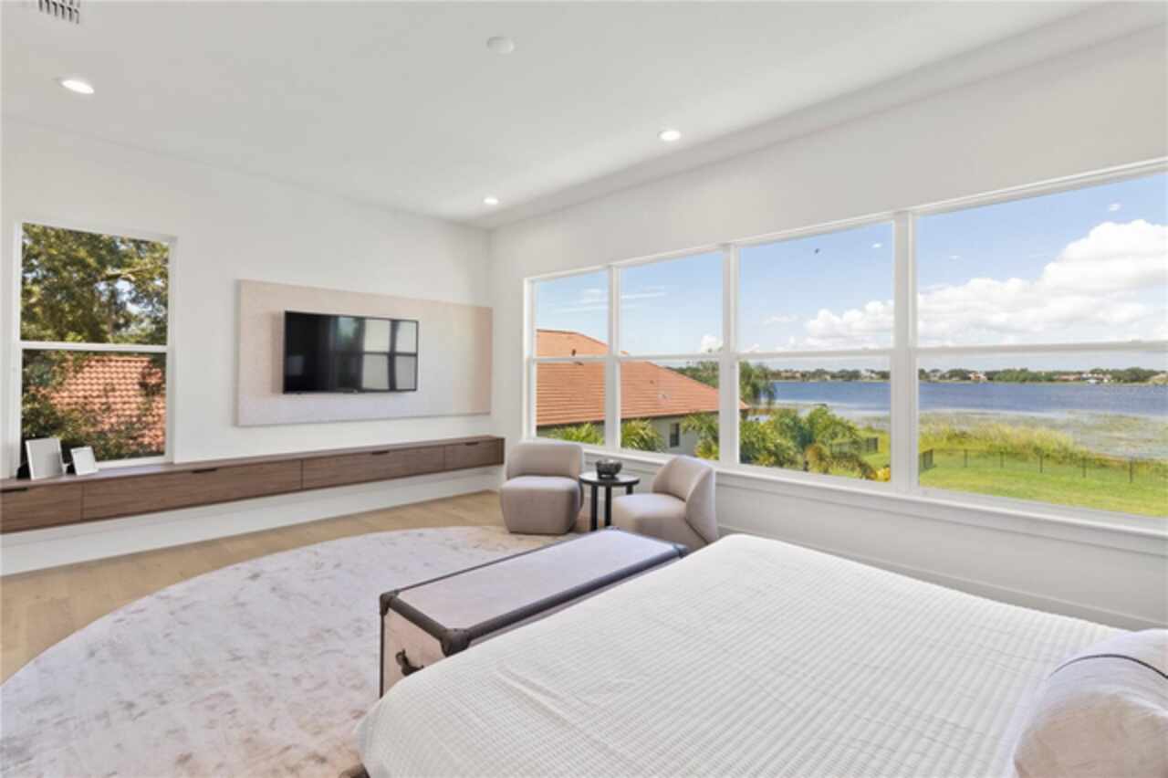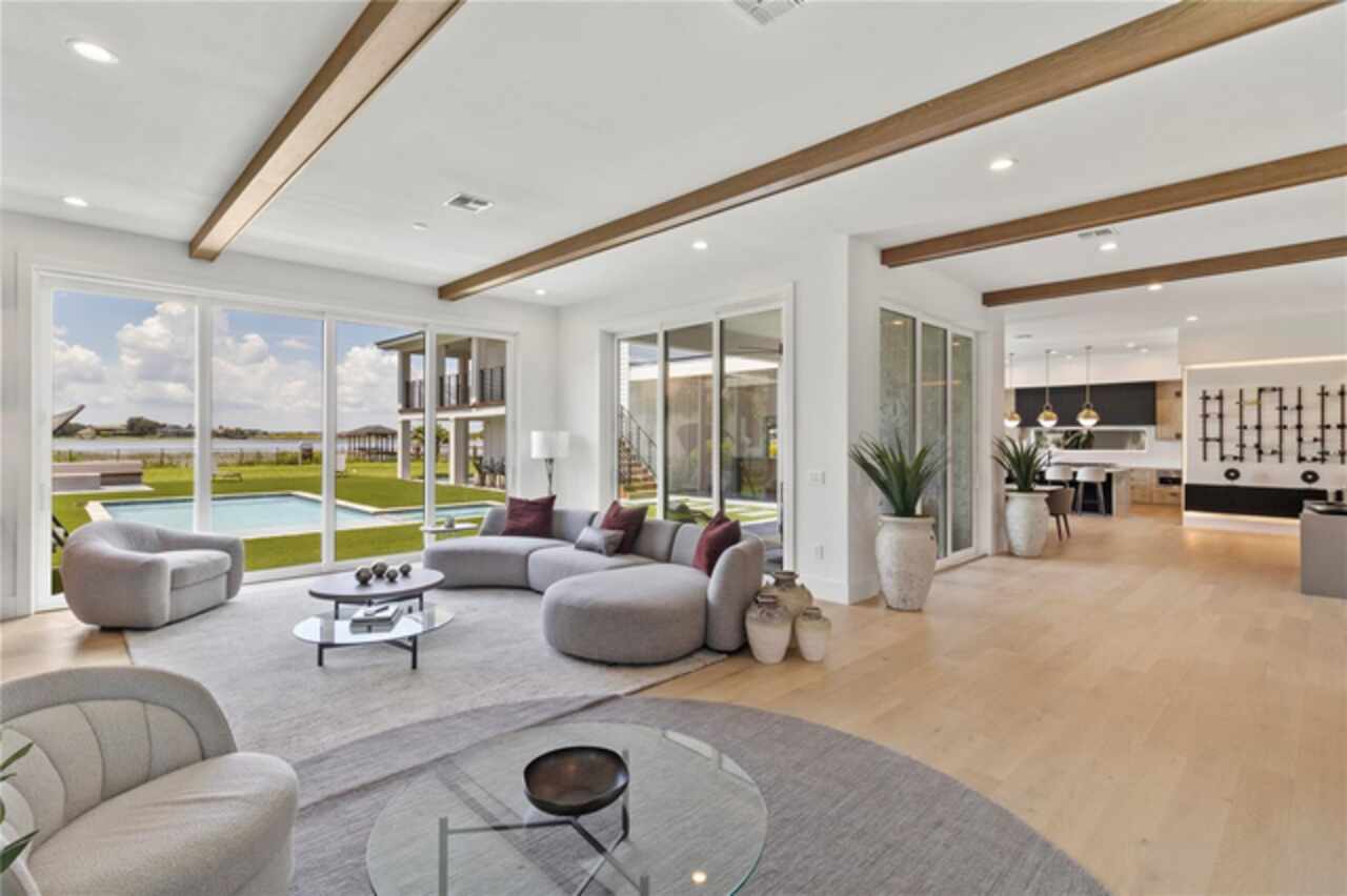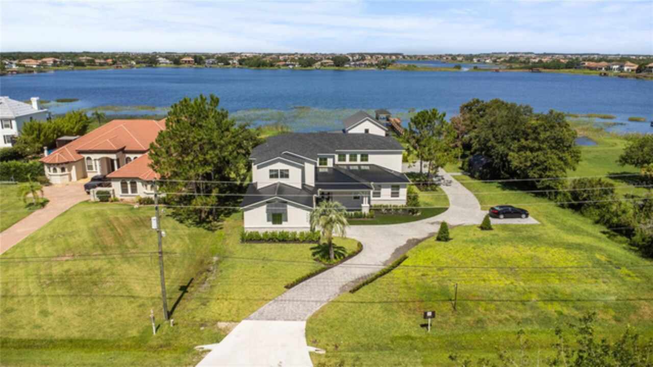 NEW CONSTRUCTION Luxury Lakefront Estate | 6, 202 Sq Ft a Private Guest House | 6 Beds + Office + Loft | Pool | No HOA | Boat Dock Experience unmatched lakeside living in this west-facing, 6, 202 sq ft custom estate featuring 6 bedrooms with private en-suites, including a guest suite. Upstairs, the primary suite and three additional bedrooms each open to private balconies offering sweeping sunset views over the lake. A spacious loft/flex space and convenient upstairs laundry add extra versatility. The main level boasts a dedicated office, family room with fireplace, and a chef’s kitchen with eat-in space, large island, wine rack, and wet bar. The dining room can easily serve as a billiards or game area. Step outside to enjoy a resort-style pool, summer kitchen, and a newly built private boat dock—all overlooking tranquil lake waters and golden evening skies. Bonus Guest House: Complete with a full kitchen, private laundry, living room, and bedroom with walk-in closet, the guest house also features a loft space with its own balcony—offering uninterrupted panoramic lake views. The perfect private retreat.. NO HOA GATE WILL BE ADDED TO ENTRY