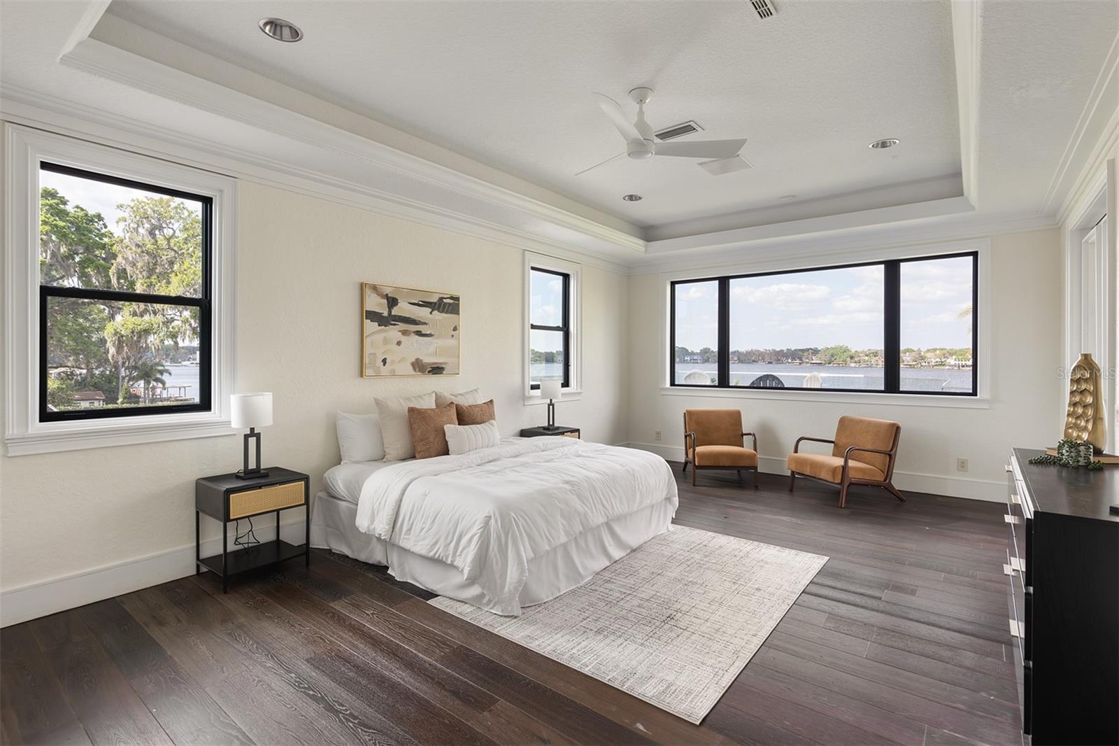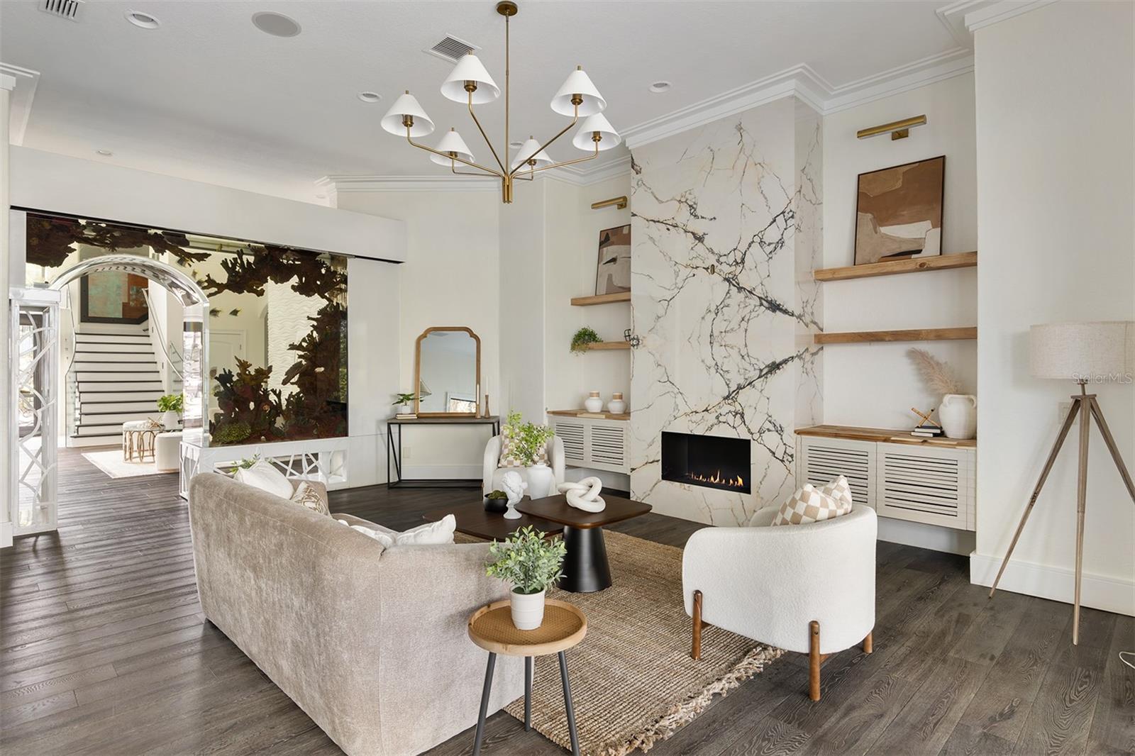 Experience the epitome of lakefront living on the Butler Chain of Lakes with this exceptional Windermere estate. On one of the area’s desirable streets, this home offers over $350, 000 of recent luxurious upgrades, including a new kitchen and fireplace, new windows and doors, landscape lighting, new landscaping, a newly painted exterior and roof. The home also boasts a newly added $85, 000 dock, designed by Docks of Orlando, providing direct access to the tranquil waters of Wauseon Bay. With 5, 639 square feet of meticulously crafted living space, this estate offers an unparalleled living experience with stunning views of one of the most peaceful parts of the Butler Chain of Lakes. Upon entry, you are welcomed by a grand two-story foyer and formal living area, designed to invite relaxation and luxury. Expansive views of the resort-style pool and spa are framed by a breathtaking floating 650-gallon arched saltwater fish tank, providing a breathtaking view of the bay. The formal living room features a beautifully sculpted paneled wall, illuminated by soft ambient lighting, which enhances the room’s refined elegance. Continue your journey through the first floor to find your incredible gourmet kitchen, accompanied by a wet bar, wine refrigerator, oversized pantry with a custom swinging door, a Wolf and Sub-Zero appliance package, quartz countertops, custom cabinetry and new lighting illuminating the space. Gracefully sharing this remarkable space is your sophisticated living room, where a striking fireplace, enveloped in exotic stone and framed by bespoke cabinetry with refined wooden accents, serves as a breathtaking focal point. The newly renovated primary suite, on the first floor, offers a private sanctuary with more panoramic views of Wauseon Bay. The regal en-suite bath features Christopher Guy lighting, dual vanities, a standalone soaking tub and a Schonbek Da Vinci chandelier overhead. A temperature-controlled wine cellar is conveniently nearby, along with a well-appointed laundry room, an additional bedroom and a full bath on the main floor. A stunning staircase wrapped with curved glass railing leads to the second floor, where you’ll find a custom 195-square-foot wall clad in custom copper-patinated iron. This home also features a residential elevator finished with wood paneling interior and a stainless steel SICIS tile floor. The private cinema is one of a kind, with custom eucalyptus wood millwork, a glass bar top illuminated by LED lights, Busby cabinetry, ample storage, Sub-Zero appliances, two under-counter wine refrigerators and luxurious seating beneath a starry sky ceiling. Step outside to your expansive private balcony, offering scenic views of the lake and spectacular Florida sunrises, all framed by glass railings and AstroTurf flooring. The second floor also includes three additional bedrooms, three full baths and a second laundry room, ideal for guests or family. The outdoor living area features a summer kitchen and ample room for relaxation, embodying the best of Central Florida’s luxurious lakefront lifestyle. For car enthusiasts, the three-car air-conditioned garage, with RaceDeck tile flooring and a custom storage system, is the ultimate addition. An exclusive respite, this home represents a refined, opulent lifestyle inside and out.