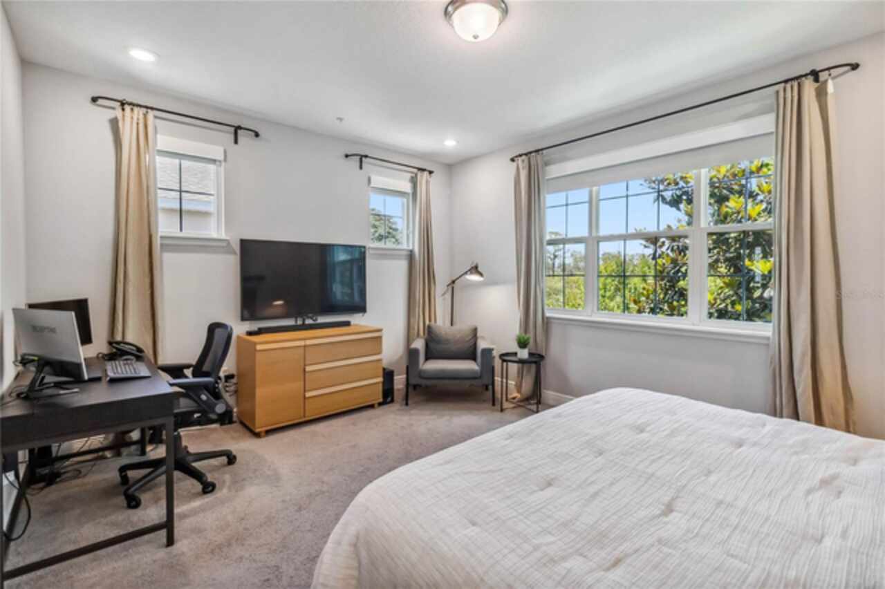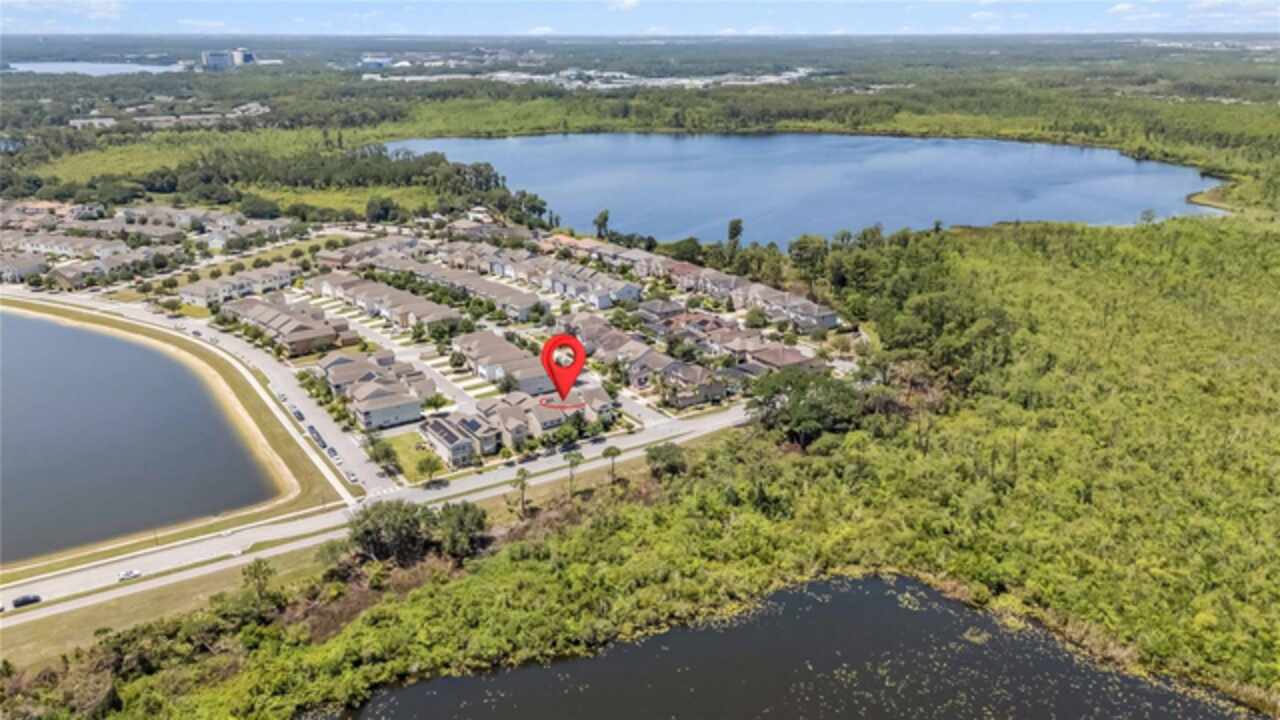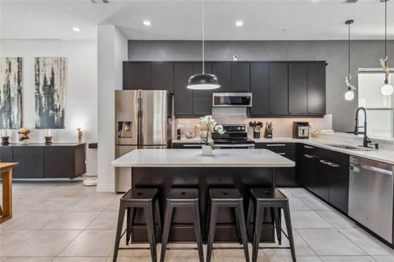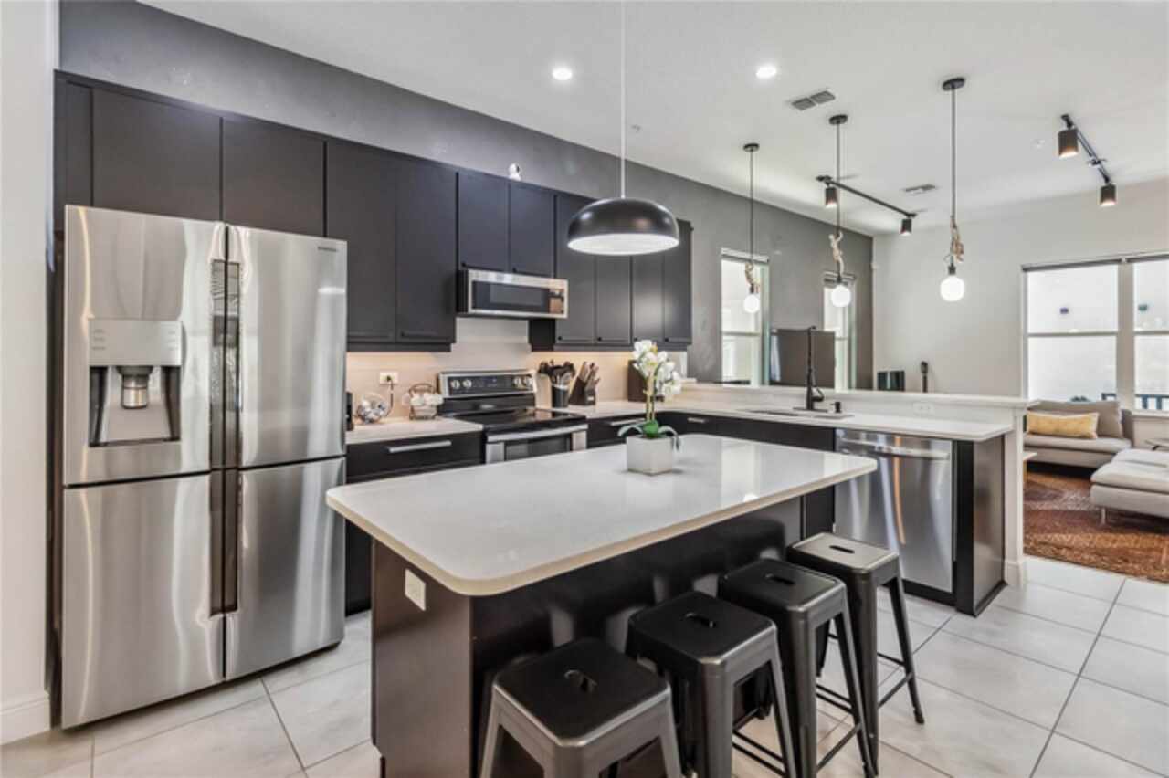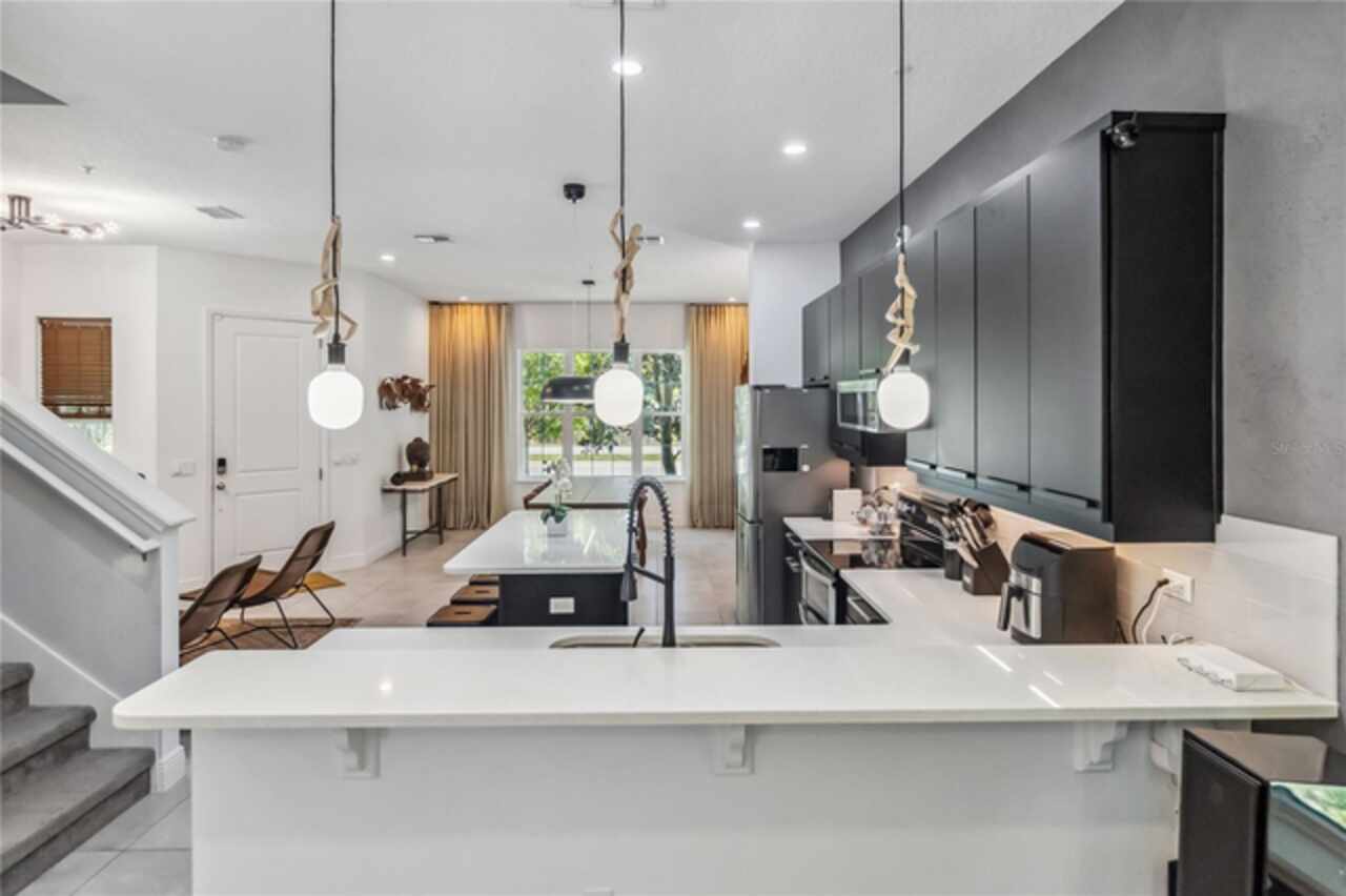 Nestled in the highly desirable Windermere Trails community, this beautiful home offers an unparalleled blend of modern design, high end finishes and everyday functionality. The 3 bedrooms, 2 1/2 baths home's open-concept design seamlessly integrates the living and dining areas with the spacious kitchen and family room, creating an inviting space for everyday living and entertaining. Enjoy abundant natural light throughout the home, thanks to numerous windows and the absence of front neighbors. The modern kitchen is the heart of the home and features beautiful quartz countertops, a spacious island and stainless steel appliances and is right at the center between dinning, living and family rooms. Enjoy Florida weather and relax in your own private fenced backyard, where a beautiful deck has been installed between the house and the garage, creating a great outdoor space for an outdoor kitchen & grill. The second floor features a split floor plan, with a loft area connecting the spacious primary suite to two additional bedrooms and a full bath. The spacious primary suite is flooded with natural light and has room for a sitting area and writing desk.Primary bathroom with dual sink, toilet closet and natural light. The conveniently located upstairs laundry room features a sink and a window and adds to the home's appeal. The home comes with fully paid solar panels installed by the builder which allows for lower energy bills and with smart home automation system. Situated within minutes to Bay Lake Elementary School and Horizon West Middle School, this home offers unparalleled convenience. The Lakeside Village Shopping Center, featuring a Publix grocery store, is just 0.3 miles away, providing easy access to daily necessities. Residents of Windermere Trails enjoy a wealth of amenities, including a community pool with a splash pad, playground, dog park with a wash station, walking trails, and open green spaces with picnic areas. Enjoy proximity to Walt Disney World Resort, just 6 miles away, as well as nearby parks such as Tibet-Butler Nature Preserve and Dr. P. Phillips Community Park. As a bonus you can even watch the Disney Fireworks from your window! This beautiful residence presents an opportunity to live in a community that balances peaceful living with easy access to local amenities. Whether you're seeking a primary residence or a secondary home, this property offers a welcoming environment for all. Schedule your showing today!
