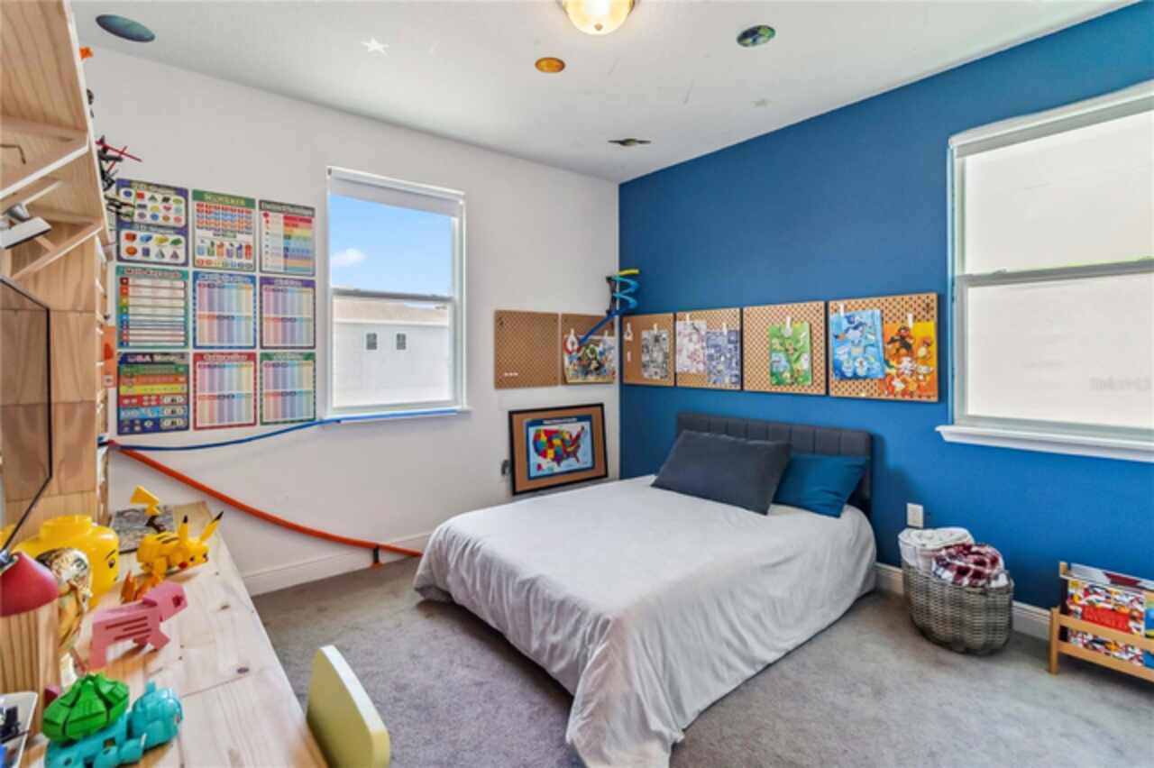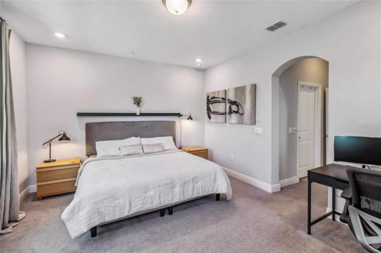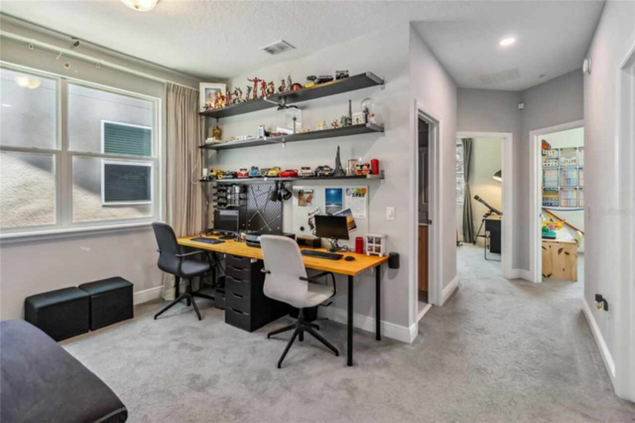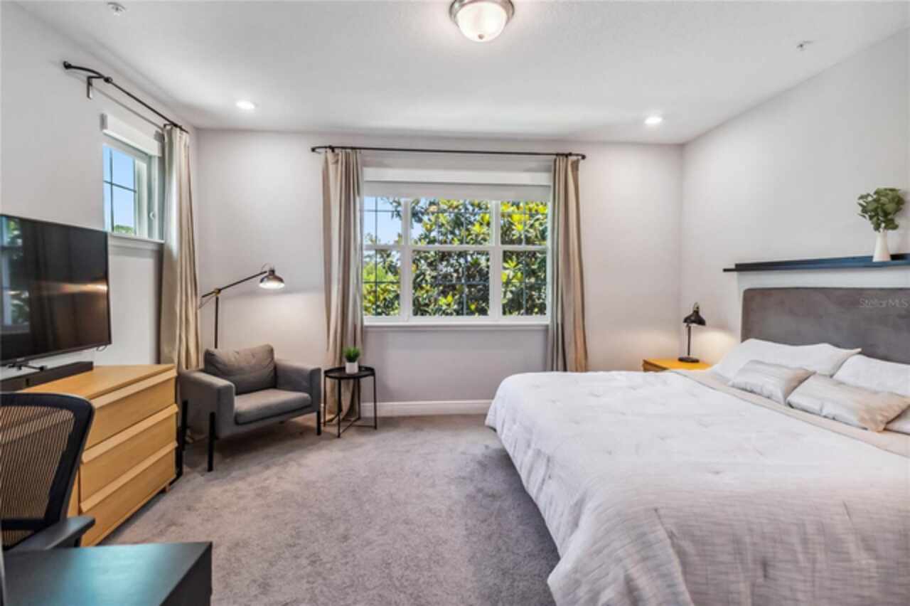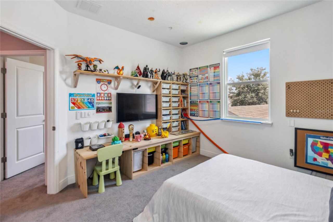 Nestled in the highly desirable Windermere Trails community, this beautiful home offers an unparalleled blend of modern design, high end finishes and everyday functionality. The 3 bedrooms, 2 1/2 baths home's open-concept design seamlessly integrates the living and dining areas with the spacious kitchen and family room, creating an inviting space for everyday living and entertaining. Enjoy abundant natural light throughout the home, thanks to numerous windows and the absence of front neighbors. The modern kitchen is the heart of the home and features beautiful quartz countertops, a spacious island and stainless steel appliances and is right at the center between dinning, living and family rooms. Enjoy Florida weather and relax in your own private fenced backyard, where a beautiful deck has been installed between the house and the garage, creating a great outdoor space for an outdoor kitchen & grill. The second floor features a split floor plan, with a loft area connecting the spacious primary suite to two additional bedrooms and a full bath. The spacious primary suite is flooded with natural light and has room for a sitting area and writing desk.Primary bathroom with dual sink, toilet closet and natural light. The conveniently located upstairs laundry room features a sink and a window and adds to the home's appeal. The home comes with fully paid solar panels installed by the builder which allows for lower energy bills and with smart home automation system. Situated within minutes to Bay Lake Elementary School and Horizon West Middle School, this home offers unparalleled convenience. The Lakeside Village Shopping Center, featuring a Publix grocery store, is just 0.3 miles away, providing easy access to daily necessities. Residents of Windermere Trails enjoy a wealth of amenities, including a community pool with a splash pad, playground, dog park with a wash station, walking trails, and open green spaces with picnic areas. Enjoy proximity to Walt Disney World Resort, just 6 miles away, as well as nearby parks such as Tibet-Butler Nature Preserve and Dr. P. Phillips Community Park. As a bonus you can even watch the Disney Fireworks from your window! This beautiful residence presents an opportunity to live in a community that balances peaceful living with easy access to local amenities. Whether you're seeking a primary residence or a secondary home, this property offers a welcoming environment for all. Schedule your showing today!