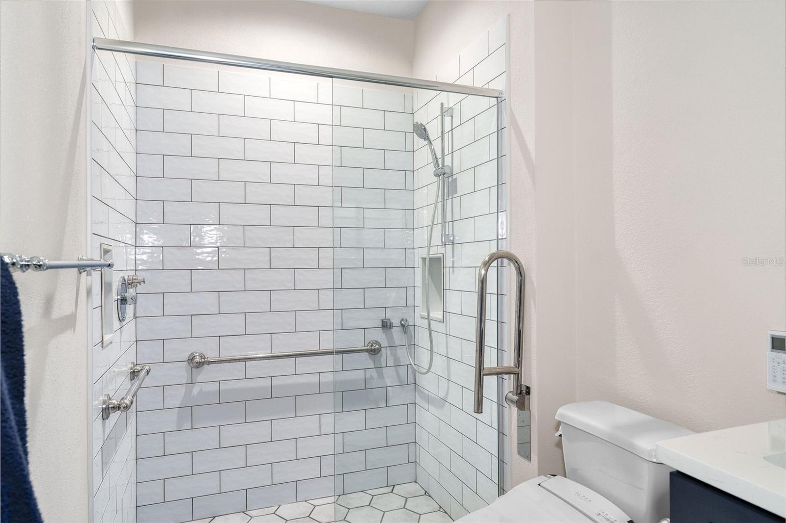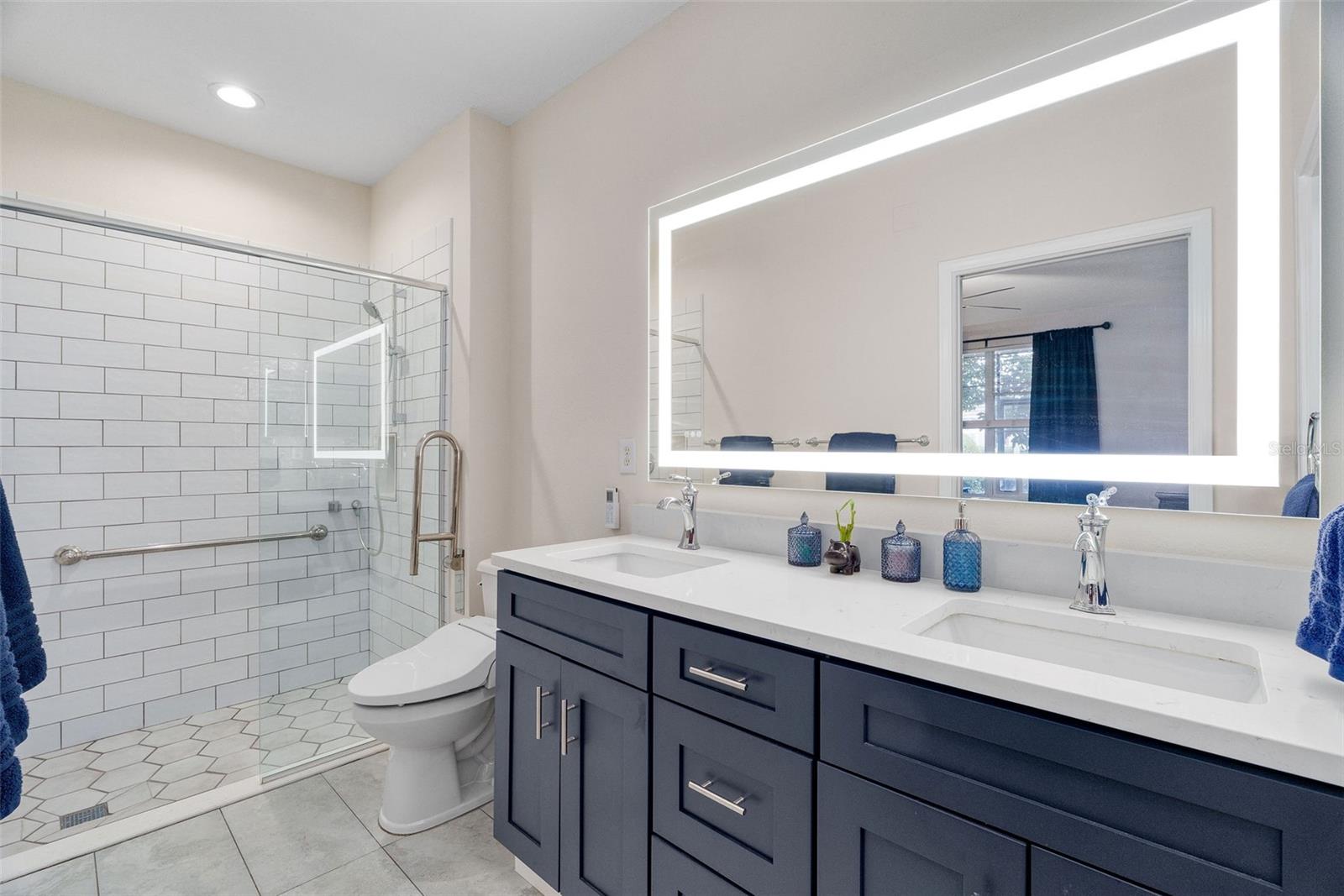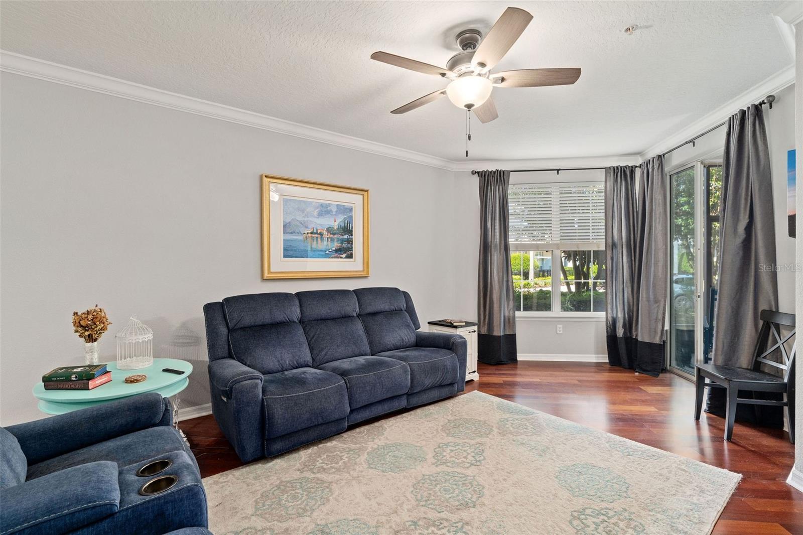 Resort style living year-round in this lovely first-floor 3 bed, 2 bath condo in Lakeside at Lakes of Windermere. Luxury features are the hallmark of this community and this particular abode featuring NEW stunning primary bath remodel (2025) with rare walk-in subway tiled shower, NEW double-sink quartz topped vanity, and backlit fog-free mirror. Stepping into the foyer, enjoy open concept living at its best - offering a split bedroom layout, gleaming wood flooring, crown molding, charming dining room, and spacious living room with glass sliders to the screened porch. The big kitchen will delight your home chef with stainless steel appliances, solid wood cabinets, Silestone countertops, breakfast bar, and HUGE custom pantry big enough for your Costco runs. With room for your king-size bed, the primary suite, along with the NEW luxury bathroom, offers a walk-in closet with custom cabinetry, drawers, and space for all your shoes. Two good sized bedrooms share the updated full hall bathroom just off the kitchen and interior laundry closet (washer/dryer stay too). Monthly HOA fee includes daily valet trash service, water/sewer, and maintaining the building exterior and lovely landscaping. Parking is a breeze with 1 reserved, assigned spot (#55), and 1 open parking spot. Steps from your front door is the state-of-the-art fitness center, located in the clubhouse with on-site management, resort-style pool, and BBQ area with sand volleyball and tennis courts. Stroll the community walking paths around the tranquil pond with mature trees and beautifully maintained elegant landscaping. Zoned for top-rated schools and surrounded by million-dollar neighborhoods, Lakes of Windermere is near it all. Lakeside Village is just across the street and includes Publix, Starbucks, and plenty of restaurants and shopping; plus, you’re only 5 minutes away from Disney and quick access to highways 429, I-4, the Orlando International Airport, and ALL the major Orlando destinations and attractions.