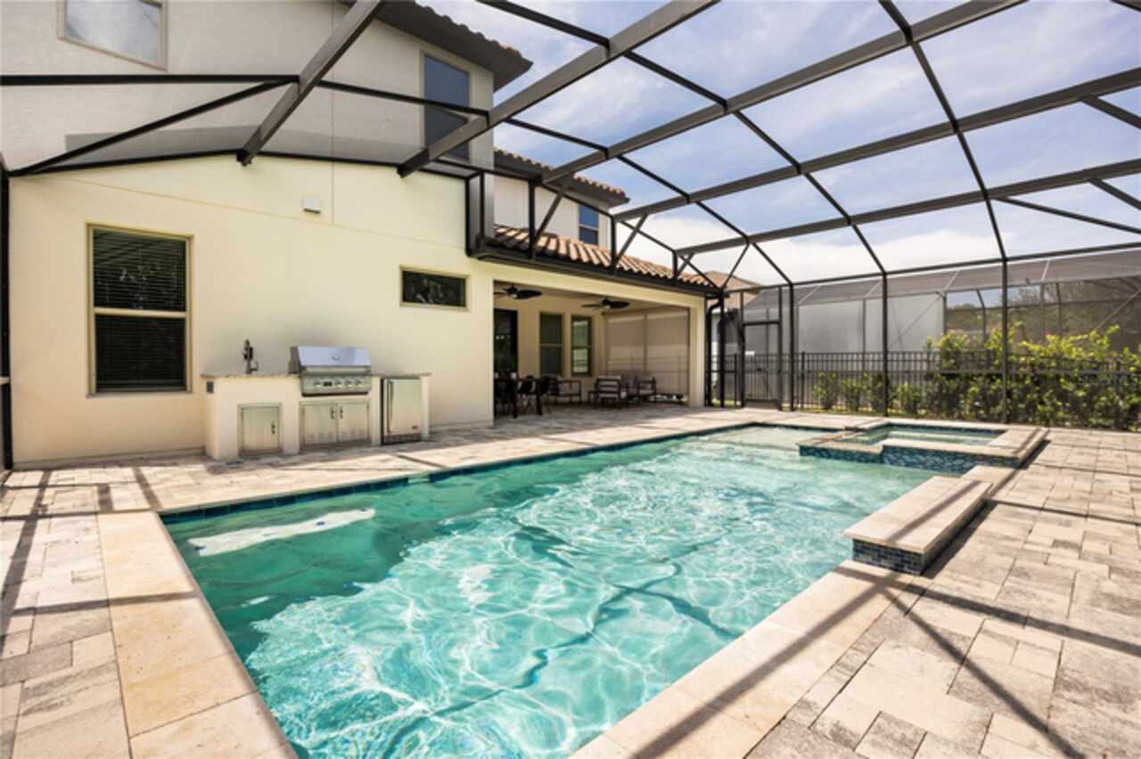 Welcome to 8349 Vivaro Isle Way, a stunning 6 bed, 4 bath home located in the resort style Windermere Isle community. Step into the stunning foyer and soak in the beauty of this 4, 200 sq ft home, from the luxury finishes to the elegant wainscoting, there is something to see in every corner. The kitchen itself is a showstopper, featuring level 5 granite, a marble backsplash, two islands and top of the line appliances in the 42” Dacor refrigerator and 36” Viking gas stove. Your coffee station is a sight to behold, designed with an antique mirror backsplash that continues into the walk in pantry (complete with an additional fridge). This house is made for entertaining and has built-in Klipsch speakers throughout the house.The office/flex room on the first floor features a coffered ceiling and tasteful fixtures and is sure to impress. Head upstairs to the loft, and 4 bedrooms, including the primary bedroom. The breathtaking primary bathroom includes his and her vanities, a spacious walk-in shower and a soaking tub all tied together with refined fixtures and seamless tile design. With no neighbors to the rear of this property, you can enjoy the privacy and comfort of the pool and backyard space, complete with a water view and Disney fireworks at night. Windermere Isle is a resort-style community where the HOA dues take care of lawn service, maintenance of common areas and internet/cable. Ideally situated just 10 minutes from Disney, this home offers convenient access to Hamlin Town Center, premier golf courses, upscale shopping, fine dining, and major thoroughfares. Zoned for highly acclaimed schools, including Castleview Elementary and Horizon West Middle. Don’t miss your chance—schedule a private showing today.