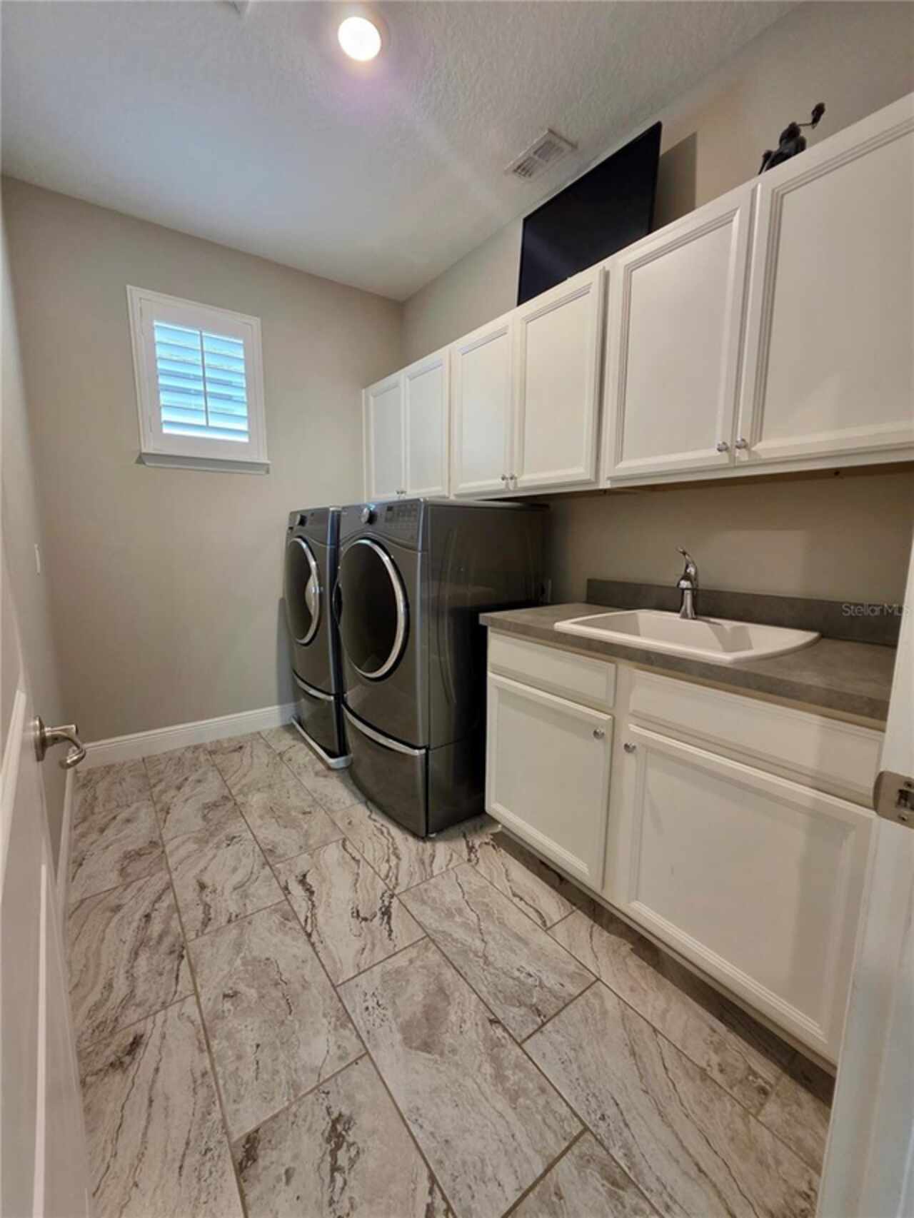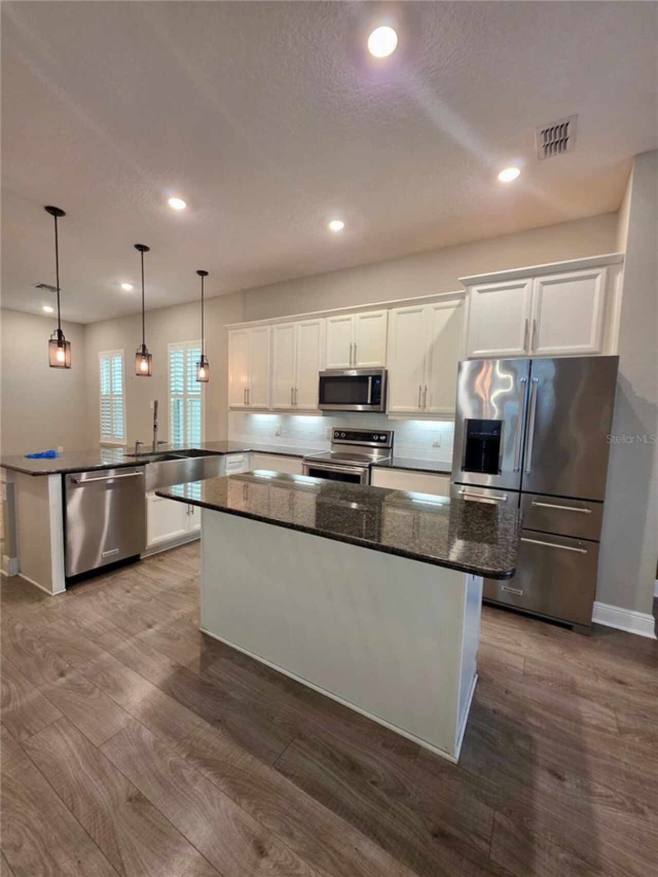 AN IRRESISTIBLE INVESTMENT OPPORTUNITY — OR YOUR FIRST HOME! Welcome to this stunning Kipling model offering serene lake views and a host of exceptional upgrades. This home features fully paid-off solar panels, electric vehicle charging outlets, and a whole-house water filtration system for maximum efficiency and comfort. Step inside and enjoy the spacious loft above the garage, new carpeting, and custom window blinds throughout. The gourmet kitchen is equipped with stainless steel KitchenAid appliances, granite countertops, and a stylish backsplash. Laminate floors and LED-lit cabinetry enhance the home’s modern elegance. Outside, enjoy a fully renovated fence, a paved terrace, and stone walkways, creating the perfect outdoor living space. Located just minutes from Disney parks, restaurants, and major shopping centers, this home is a prime opportunity for savvy investors or first-time buyers ready to make this their dream home. Don’t miss out on the chance to combine financial stability with the unmatched appeal of Disney-area living!