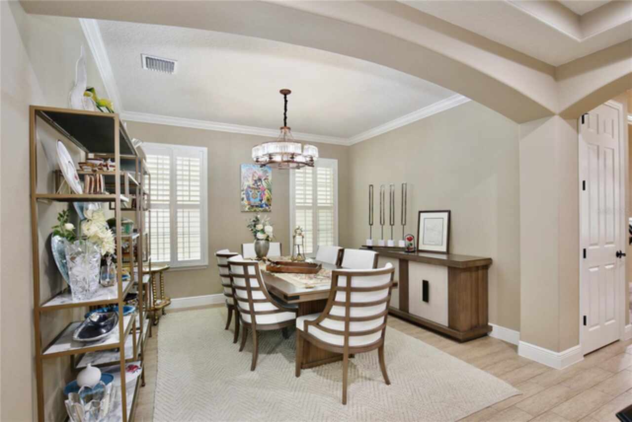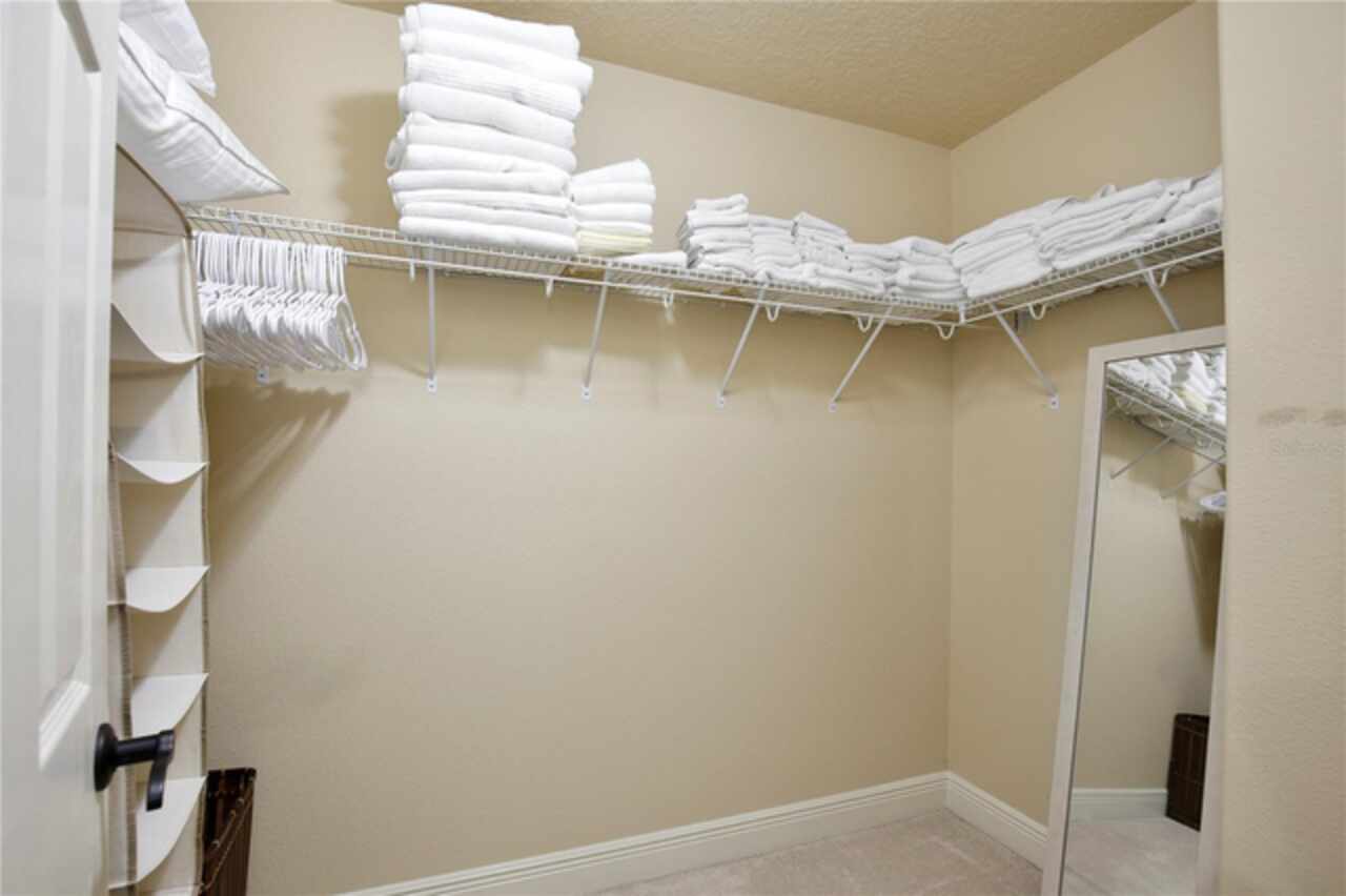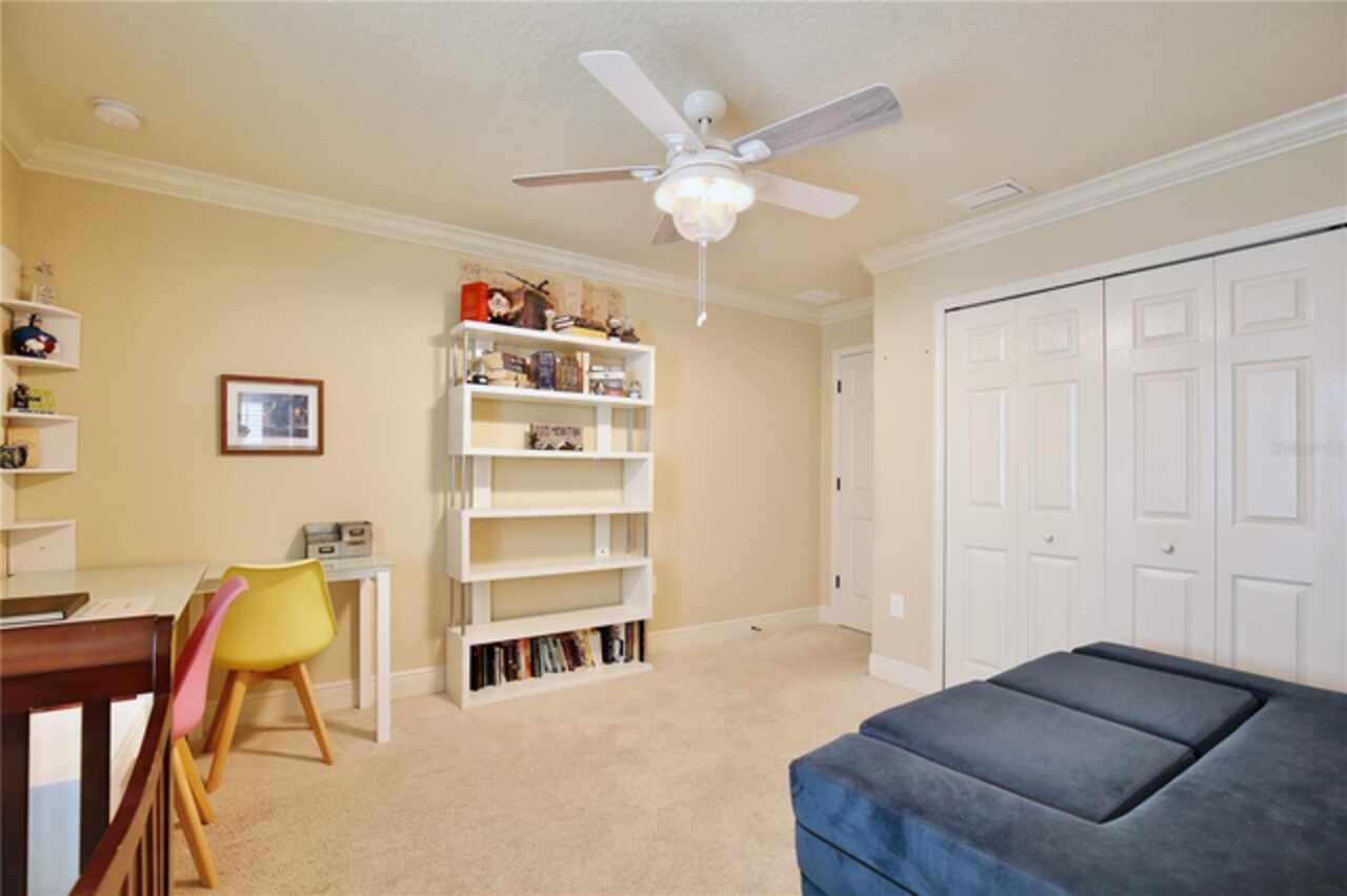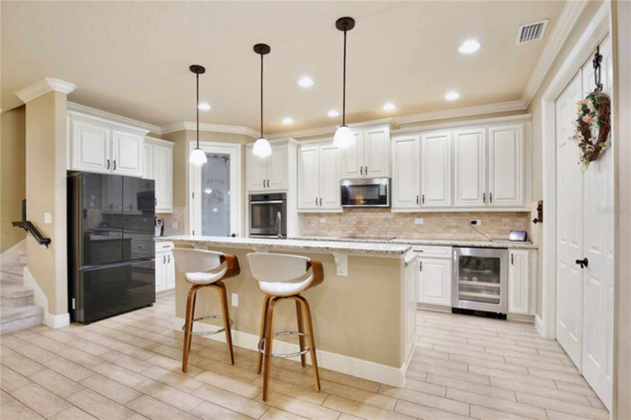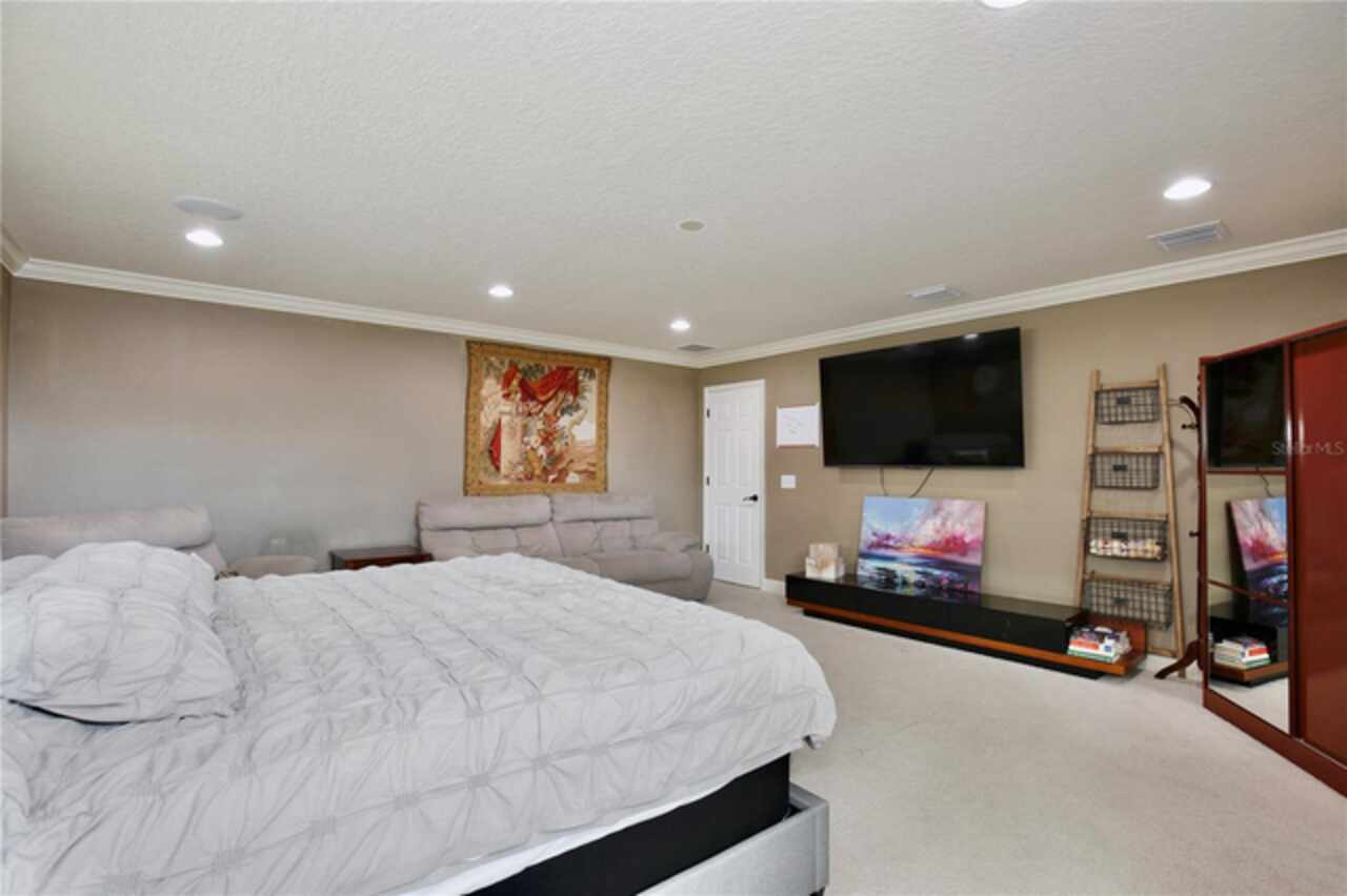 Experience the enchantment of a luxurious lifestyle with a home that offers elegance, comfort, and a touch of magic. Welcome to a stunning residence where every day feels like a vacation, with Disney World's fireworks dazzling over the water view right in your backyard. This beautifully appointed Spanish style home boasts impressive curb appeal with its barrel tile roof, paver driveway, and a two car garage. As you approach, the covered front porch and landscaping adorned with palm trees invite you home. Inside, the home unfolds with a beautiful foyer featuring elegant tray ceilings, arched walkways, and neutral colors that set a serene tone. Entertain guests in the dining room, crowned by a chandelier and accented with plantation shutters over frosted privacy windows, and conduct business in the front office with its double door entry and crown molding. The living room and breakfast nook has tranquil water vistas, creating a relaxing atmosphere along with wood-style flooring and glass doors leading out to the lanai, featuring stone flooring and an opulent fountain. The lanai also has access to the living room’s half bath. The gourmet kitchen is a chef's delight featuring shaker cabinets, stainless steel appliances, granite counters, a pantry closet, and bar top seating at the center island. Enjoy the convenience of a wine fridge and built in double ovens, while the bonus room with a double door entry provides additional space for your needs (currently utilized as a cake decorating room). Upstairs, awake to water views in the spacious primary suite with tray ceilings and two walk in closets. The sumptuous bath with dual sinks and a glass door shower provide a relaxing retreat. The giant bonus room (currently utilized as a bedroom) is ideal for a home theatre or game room. Two guest bedrooms share a Jack and Jill bath with dual vanities and a private tub/shower combo. The final bedroom conveniently sits alongside a well appointed bath with a glass door shower. The laundry room offers cabinet storage, a sink, and counter space for easy folding. Host unforgettable gatherings and barbecues on the outdoor patio, set against a backdrop of the stunning stone waterfall, water views, and the mesmerizing Disney fireworks. With a running track behind the home leading to the amenities, residents can enjoy access to a community pool with a splash pad and playground. Perfectly nestled between the Tibet-Butler Nature Preserve and Disney World, this location offers a blend of nature and wonder. Hit the putting green at nearby golf courses, enjoy quick convenience to nearby shopping and dining, and catch some thrills with close proximity to all the major theme parks. You’ll also be right near Bay Lake Elementary, Star Child Academy, hiking trails and butterfly gardens, making this a wonderfully serene location to settle down. View the 3D tour and schedule a showing to witness this dream home in person!