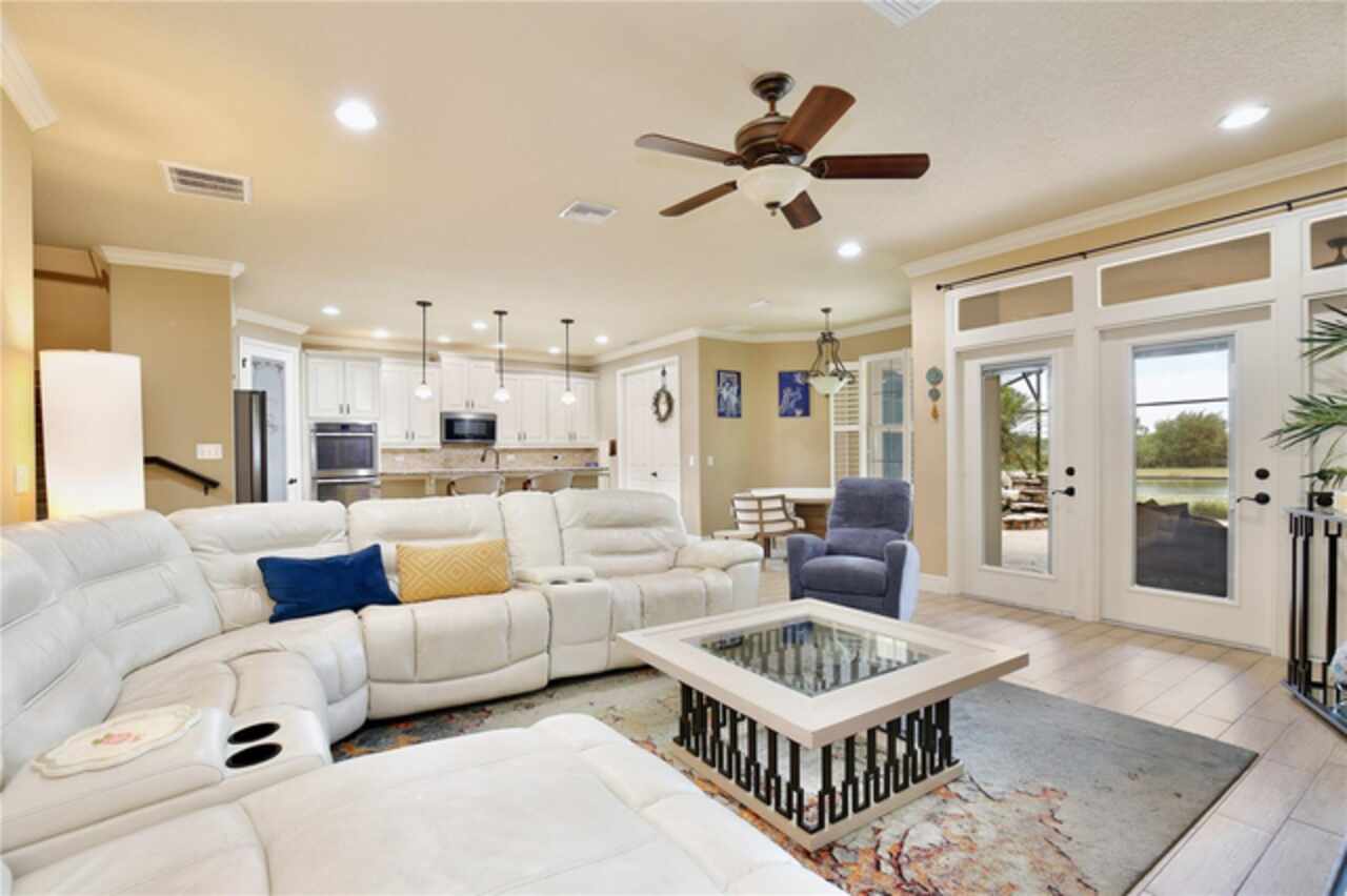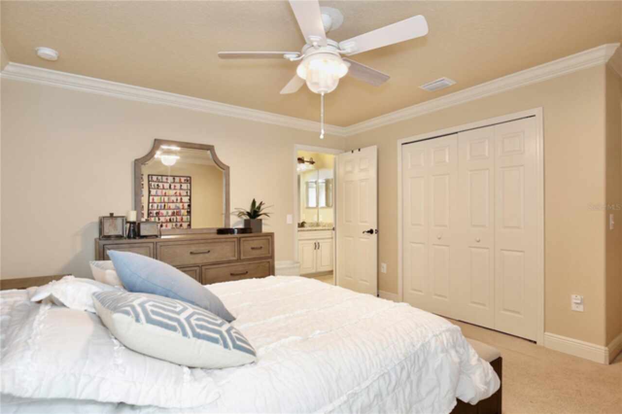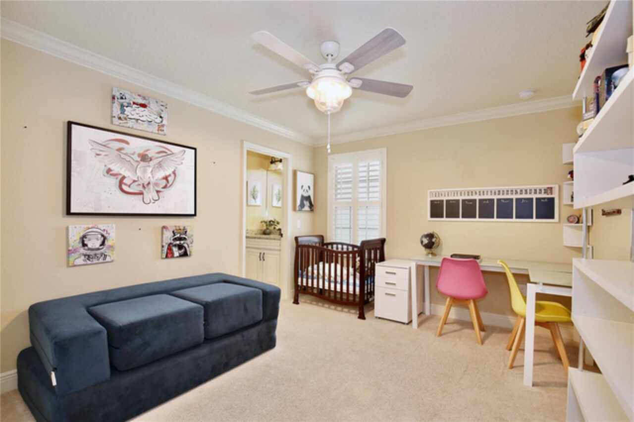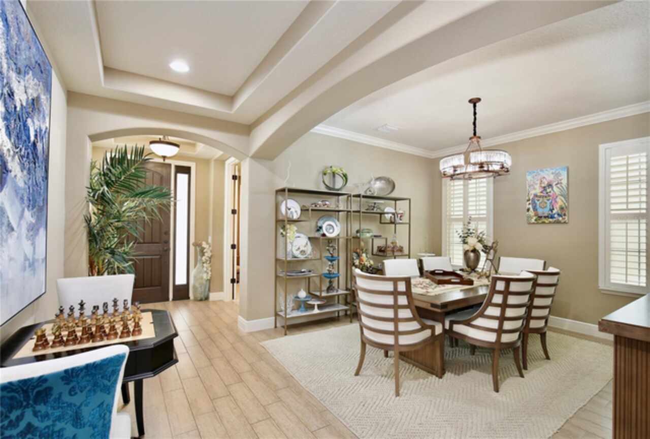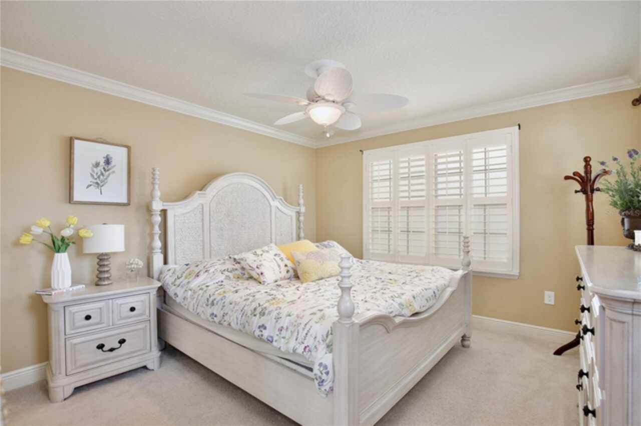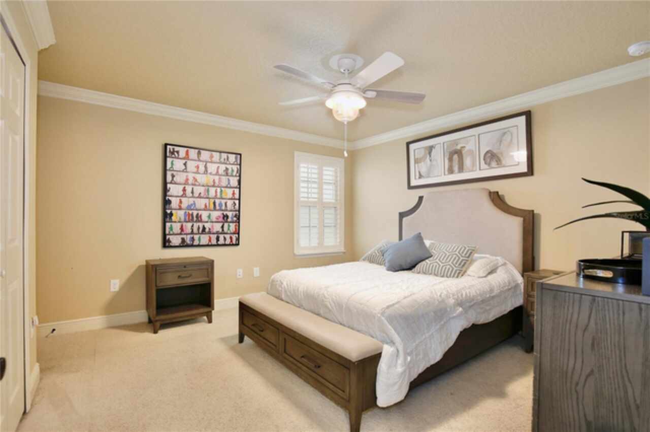 Experience the enchantment of a luxurious lifestyle with a home that offers elegance, comfort, and a touch of magic. Welcome to a stunning residence where every day feels like a vacation, with Disney World's fireworks dazzling over the water view right in your backyard. This beautifully appointed Spanish style home boasts impressive curb appeal with its barrel tile roof, paver driveway, and a two car garage. As you approach, the covered front porch and landscaping adorned with palm trees invite you home. Inside, the home unfolds with a beautiful foyer featuring elegant tray ceilings, arched walkways, and neutral colors that set a serene tone. Entertain guests in the dining room, crowned by a chandelier and accented with plantation shutters over frosted privacy windows, and conduct business in the front office with its double door entry and crown molding. The living room and breakfast nook has tranquil water vistas, creating a relaxing atmosphere along with wood-style flooring and glass doors leading out to the lanai, featuring stone flooring and an opulent fountain. The lanai also has access to the living room’s half bath. The gourmet kitchen is a chef's delight featuring shaker cabinets, stainless steel appliances, granite counters, a pantry closet, and bar top seating at the center island. Enjoy the convenience of a wine fridge and built in double ovens, while the bonus room with a double door entry provides additional space for your needs (currently utilized as a cake decorating room). Upstairs, awake to water views in the spacious primary suite with tray ceilings and two walk in closets. The sumptuous bath with dual sinks and a glass door shower provide a relaxing retreat. The giant bonus room (currently utilized as a bedroom) is ideal for a home theatre or game room. Two guest bedrooms share a Jack and Jill bath with dual vanities and a private tub/shower combo. The final bedroom conveniently sits alongside a well appointed bath with a glass door shower. The laundry room offers cabinet storage, a sink, and counter space for easy folding. Host unforgettable gatherings and barbecues on the outdoor patio, set against a backdrop of the stunning stone waterfall, water views, and the mesmerizing Disney fireworks. With a running track behind the home leading to the amenities, residents can enjoy access to a community pool with a splash pad and playground. Perfectly nestled between the Tibet-Butler Nature Preserve and Disney World, this location offers a blend of nature and wonder. Hit the putting green at nearby golf courses, enjoy quick convenience to nearby shopping and dining, and catch some thrills with close proximity to all the major theme parks. You’ll also be right near Bay Lake Elementary, Star Child Academy, hiking trails and butterfly gardens, making this a wonderfully serene location to settle down. View the 3D tour and schedule a showing to witness this dream home in person!