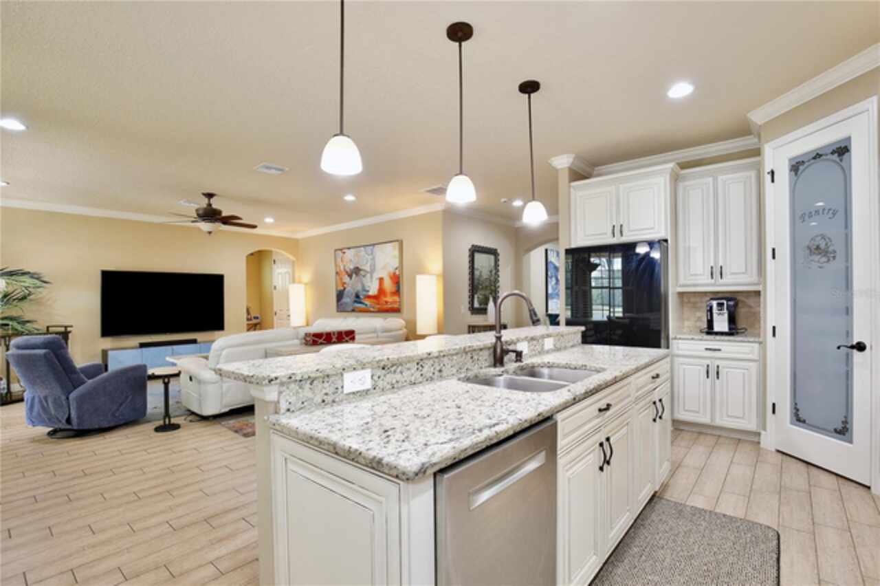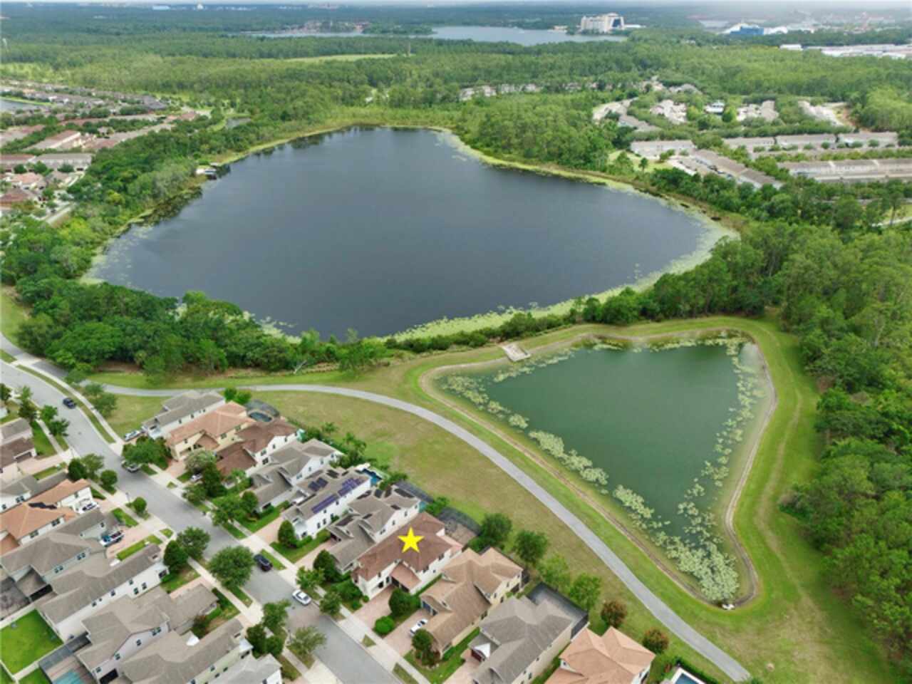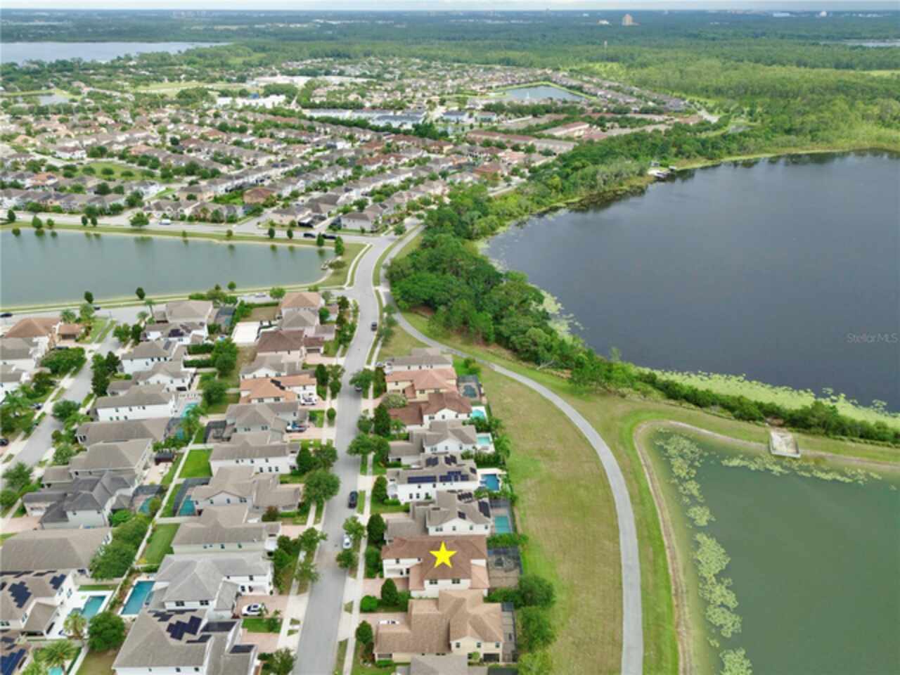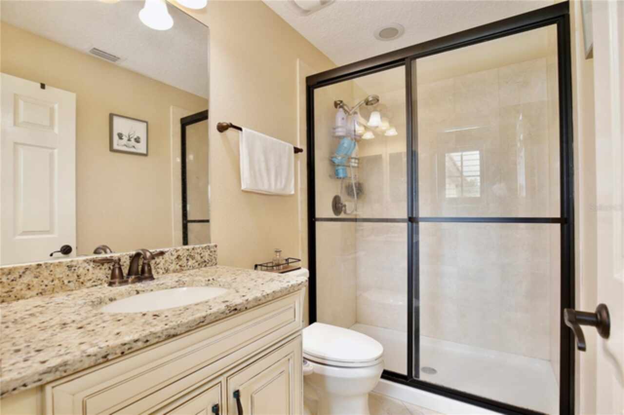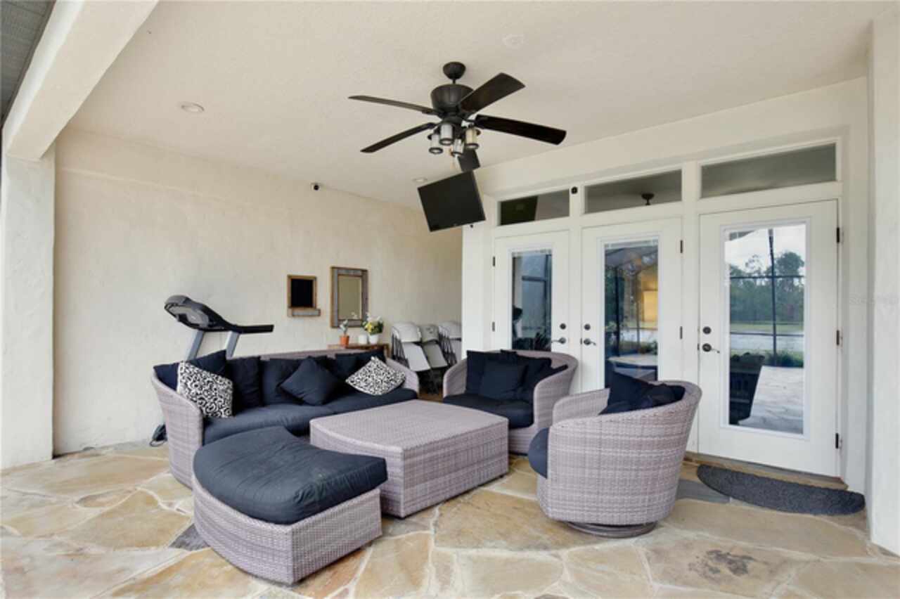 Experience the enchantment of a luxurious lifestyle with a home that offers elegance, comfort, and a touch of magic. Welcome to a stunning residence where every day feels like a vacation, with Disney World's fireworks dazzling over the water view right in your backyard. This beautifully appointed Spanish style home boasts impressive curb appeal with its barrel tile roof, paver driveway, and a two car garage. As you approach, the covered front porch and landscaping adorned with palm trees invite you home. Inside, the home unfolds with a beautiful foyer featuring elegant tray ceilings, arched walkways, and neutral colors that set a serene tone. Entertain guests in the dining room, crowned by a chandelier and accented with plantation shutters over frosted privacy windows, and conduct business in the front office with its double door entry and crown molding. The living room and breakfast nook has tranquil water vistas, creating a relaxing atmosphere along with wood-style flooring and glass doors leading out to the lanai, featuring stone flooring and an opulent fountain. The lanai also has access to the living room’s half bath. The gourmet kitchen is a chef's delight featuring shaker cabinets, stainless steel appliances, granite counters, a pantry closet, and bar top seating at the center island. Enjoy the convenience of a wine fridge and built in double ovens, while the bonus room with a double door entry provides additional space for your needs (currently utilized as a cake decorating room). Upstairs, awake to water views in the spacious primary suite with tray ceilings and two walk in closets. The sumptuous bath with dual sinks and a glass door shower provide a relaxing retreat. The giant bonus room (currently utilized as a bedroom) is ideal for a home theatre or game room. Two guest bedrooms share a Jack and Jill bath with dual vanities and a private tub/shower combo. The final bedroom conveniently sits alongside a well appointed bath with a glass door shower. The laundry room offers cabinet storage, a sink, and counter space for easy folding. Host unforgettable gatherings and barbecues on the outdoor patio, set against a backdrop of the stunning stone waterfall, water views, and the mesmerizing Disney fireworks. With a running track behind the home leading to the amenities, residents can enjoy access to a community pool with a splash pad and playground. Perfectly nestled between the Tibet-Butler Nature Preserve and Disney World, this location offers a blend of nature and wonder. Hit the putting green at nearby golf courses, enjoy quick convenience to nearby shopping and dining, and catch some thrills with close proximity to all the major theme parks. You’ll also be right near Bay Lake Elementary, Star Child Academy, hiking trails and butterfly gardens, making this a wonderfully serene location to settle down. View the 3D tour and schedule a showing to witness this dream home in person!