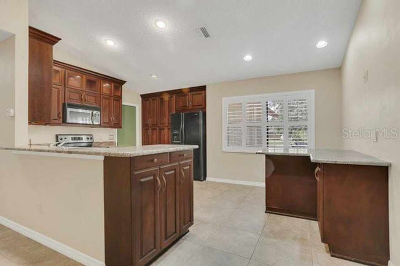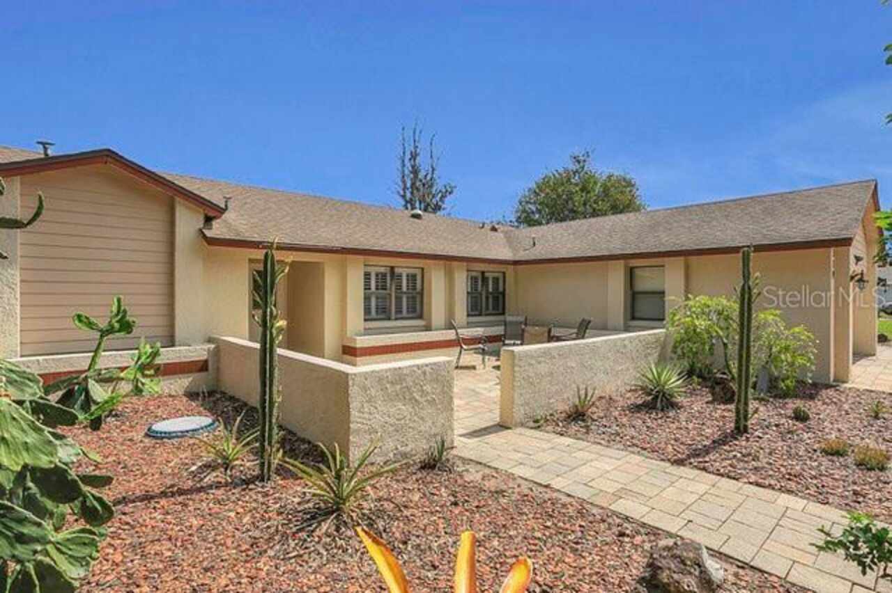 WONDERFUL WINDERMERE 4 BED/ 2 BATH HOME LOCATED IN THE CHARMING COMMUNITY OF SILVER WOODS. The moment you drive up to this home you are greeted by low maintence landscaping, paver driveway and a unique courtyard entry which makes this home standout. The courtyard is a perfect space to spend the evenings or start your mornings. Sliders from the kitchen lead onto the courtyard. Upon entering you will notice the details: beveled glass front door, split floorplan, large dining and living (open concept) and well appointed kitchen. The kitchen overlooks the Livingroom and dining room and boost upgrades you are sure to love. Cherrywood cabinets with pullout shelves, glass doors, pantry, under cabinet lighting, decorative lighting in cabinets, stainless steel appliances and upgraded granite counters. Additional cabinets were added to create workspace or an eat in kitchen space. Just off the kitchen if the laundry area with matching cabinets. The spacious living room is positioned with views of the kitchen and dining space with sliders leading to the massive patio space. Two additional bedrooms are located just off the living room with the hall bath set up for a pool bath if you decided to add one. Just off the dining room you will find the primary bedroom with French doors leading to a private patio space. The primary bath includes a walk in closet space, cherrywood cabinets and a walk in shower. The rear patio has just as many endless options as the front courtyard does...dining spaces or entertaining or both! All this in a home and still just minutes to restaurants, entertainment, shopping, the parks and so much more.