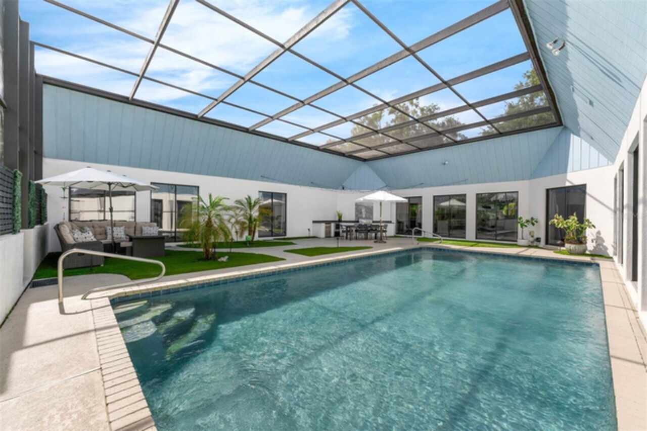 Rare Opportunity…1+ Acre…Courtyard Design… Fully Updated Pool Home. This distinctive U-shaped pool home features a 2000 sq/ft enclosed Atrium for exceptional outdoor living. Inside, every space is very large with Sliding Glass Doors creating a wall of glass for you to overlook the star of the show which is your sparkling 18x36 inground pool, private courtyard and a new outdoor kitchen. Almost everything has been upgraded and updated to make your move-in easy. The Expansive kitchen has been completely remodeled since 2020 with Smart Appliances, 36" Induction Cooktop with Cattura Downdraft, Samsung Refrigerator with family hub and a hidden smoothie station built-in over freezer drawers to make healthy snacks at a moment’s notice. The Primary Suite is located in the west wing with an outstanding primary bath boasting an insta-hot shower system with dual programming, 2 shower heads and 1 handheld water wand… Bedroom two has an ensuite bath and is currently being used as an office… Bedrooms three and four are in the east wing of the home, all with remodeled baths. This home can easily become a multigenerational home or in-law, Plus the one acre is fantastic with plenty of parking, space for chickens, a dog run and outstanding privacy. The Roof was replaced in 2022, all hot water heaters and 2 AC units have all been replaced. Windermere-Gotha has a rural feel, well established with long term residents, yet just a few miles from popular shopping, dining, hospital and access to major roadways such as 408, 429, and the Turnpike. A 20-30 minute drive to Orlando International Airport, Disney, Universal Studios and only 15 minutes to downtown Orlando. If you have been searching for a ONE-OF-KIND pool home… The search is over.