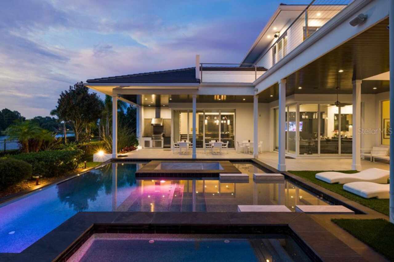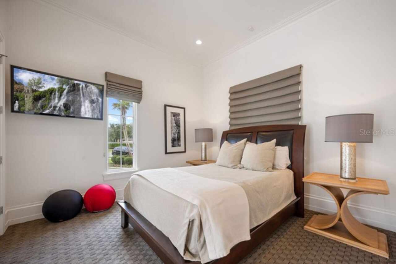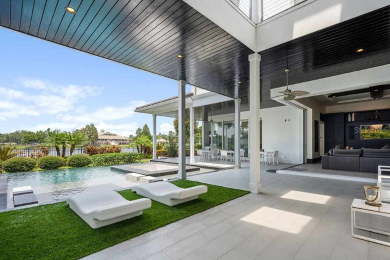 Welcome to 9721 Carillon Park Dr, Windermere, FL 34786 - a stunning FULLY FURNISHED (furniture included-with exception of a few items) , professionally designed estate inside the guard-gated community of Keene’s Pointe. This extraordinary residence offers 8, 305 square feet of luxury living space with refined architectural details, elegant wood beams, and designer finishes throughout. MAIN FEATURES: • Five bedrooms plus detached guest house and office — providing exceptional space and privacy. • Expansive master suite with private sitting room, balcony overlooking the pond, dual closets, fireplace, and breakfast area. • Chef’s kitchen with a large island, seating area, top-of-the-line appliances, and a hidden walk-in pantry. • Bar and game room featuring real wood finishes and picturesque pond views. • Private GYM with SAUNA for health and relaxation. • Nine-seat home theater with plush carpet flooring for an immersive movie experience. • Four-car split garage (2/2), ELEVATOR, and downstairs laundry room. * Additional laundry closet inside the upstairs primary bedroom closet. OUTDOOR & LIFESTYLE: Seamlessly blending indoor and outdoor living, the open floor plan connects to a heated pool and spa area, surrounded by tranquil pond views and lush landscaping. The fully retractable sliding doors make it ideal for entertaining year-round. RECENT UPGRADES INCLUDE: • Five new AC units (2023) • Hurricane-impact windows and ADT smart security system • New pool equipment (2022) • Exterior repaint (2023) • Full surround-sound system throughout the home COMMUNITY & LOCATION: Located within the prestigious Keene’s Pointe community, residents can enjoy The Golden Bear Club, featuring a Jack Nicklaus Signature golf course, clubhouse, fitness center, and dining. Windermere is renowned for its lakes, top-rated schools, and luxury lifestyle just minutes from downtown Orlando and Disney attractions. This home represents the pinnacle of luxury living in Windermere, offering elegance, privacy, and resort-style amenities. Schedule your private tour today and experience the sophistication of this remarkable estate.