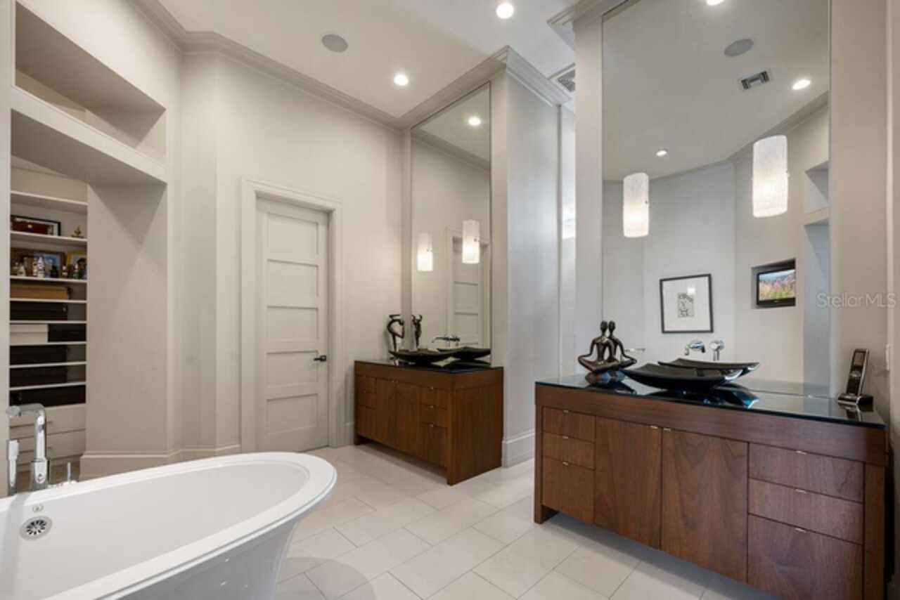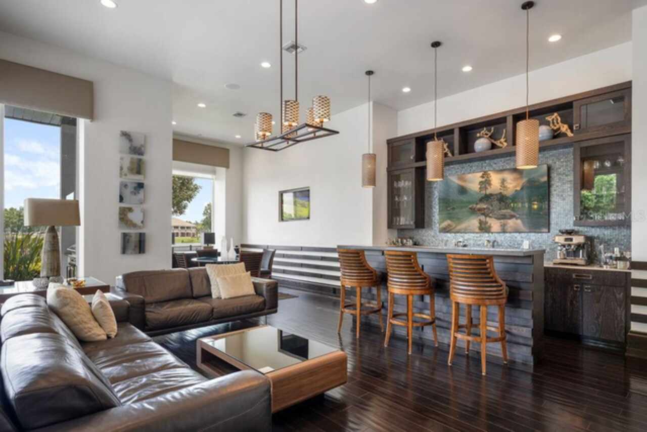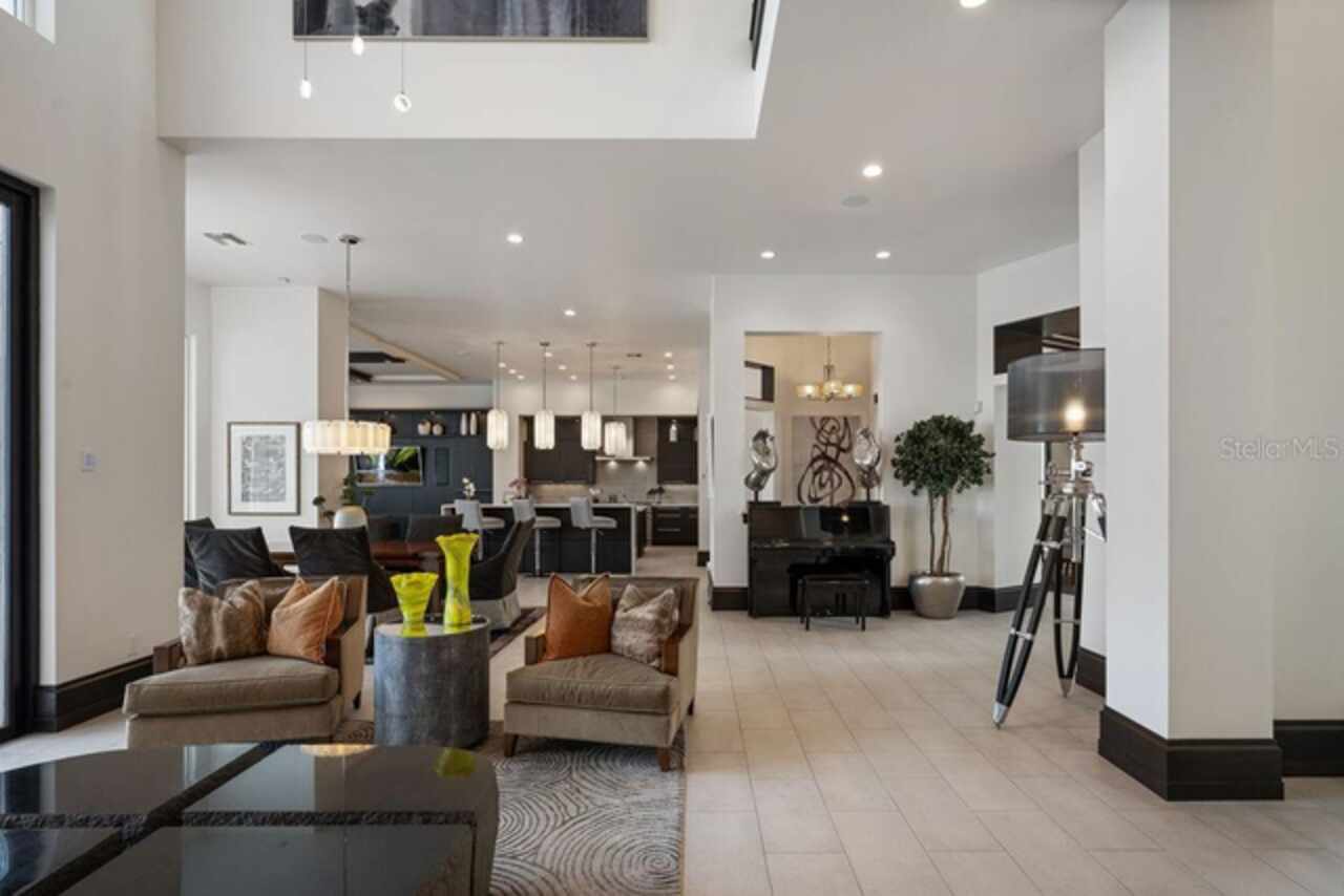 Welcome to 9721 Carillon Park Dr, Windermere, FL 34786 - a stunning FULLY FURNISHED (furniture included-with exception of a few items) , professionally designed estate inside the guard-gated community of Keene’s Pointe. This extraordinary residence offers 8, 305 square feet of luxury living space with refined architectural details, elegant wood beams, and designer finishes throughout. MAIN FEATURES: • Five bedrooms plus detached guest house and office — providing exceptional space and privacy. • Expansive master suite with private sitting room, balcony overlooking the pond, dual closets, fireplace, and breakfast area. • Chef’s kitchen with a large island, seating area, top-of-the-line appliances, and a hidden walk-in pantry. • Bar and game room featuring real wood finishes and picturesque pond views. • Private GYM with SAUNA for health and relaxation. • Nine-seat home theater with plush carpet flooring for an immersive movie experience. • Four-car split garage (2/2), ELEVATOR, and downstairs laundry room. * Additional laundry closet inside the upstairs primary bedroom closet. OUTDOOR & LIFESTYLE: Seamlessly blending indoor and outdoor living, the open floor plan connects to a heated pool and spa area, surrounded by tranquil pond views and lush landscaping. The fully retractable sliding doors make it ideal for entertaining year-round. RECENT UPGRADES INCLUDE: • Five new AC units (2023) • Hurricane-impact windows and ADT smart security system • New pool equipment (2022) • Exterior repaint (2023) • Full surround-sound system throughout the home COMMUNITY & LOCATION: Located within the prestigious Keene’s Pointe community, residents can enjoy The Golden Bear Club, featuring a Jack Nicklaus Signature golf course, clubhouse, fitness center, and dining. Windermere is renowned for its lakes, top-rated schools, and luxury lifestyle just minutes from downtown Orlando and Disney attractions. This home represents the pinnacle of luxury living in Windermere, offering elegance, privacy, and resort-style amenities. Schedule your private tour today and experience the sophistication of this remarkable estate.