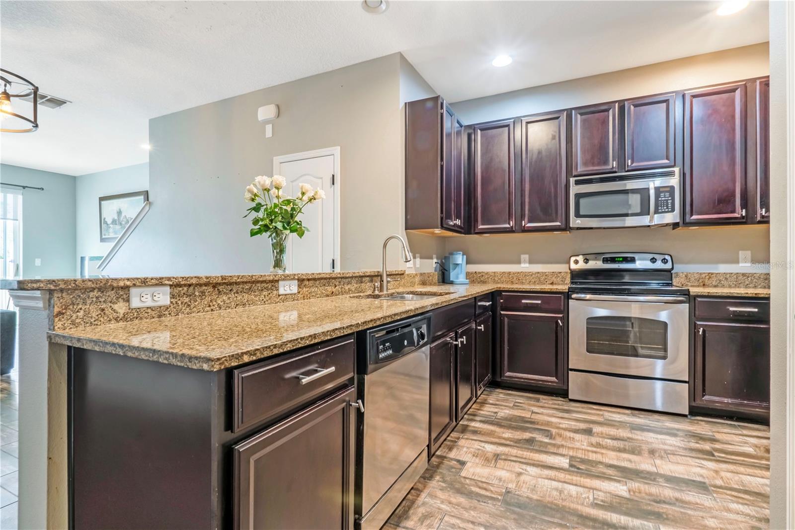 Welcome to this light and bright 3-bed, 2.5-bath townhome located just 1 mile from Disney! Enjoy nightly Disney fireworks right from your back porch with beautiful paver seating. The open layout features a modern kitchen with stainless steel appliances, granite countertops, and ample storage. Upstairs, the spacious bedrooms offers comfort and privacy, including a well-appointed primary suite. A washer and dryer are conveniently included in the unit. This beautifully maintained home sits in a very safe, nice neighborhood with a state-of-the-art community center, fitness amenities, and a resort-style pool. Whether you're seeking a primary residence, vacation home, or investment opportunity, this property delivers exceptional value near world-class dining, shopping, and entertainment. Don't miss this chance to live where magic happens every night!